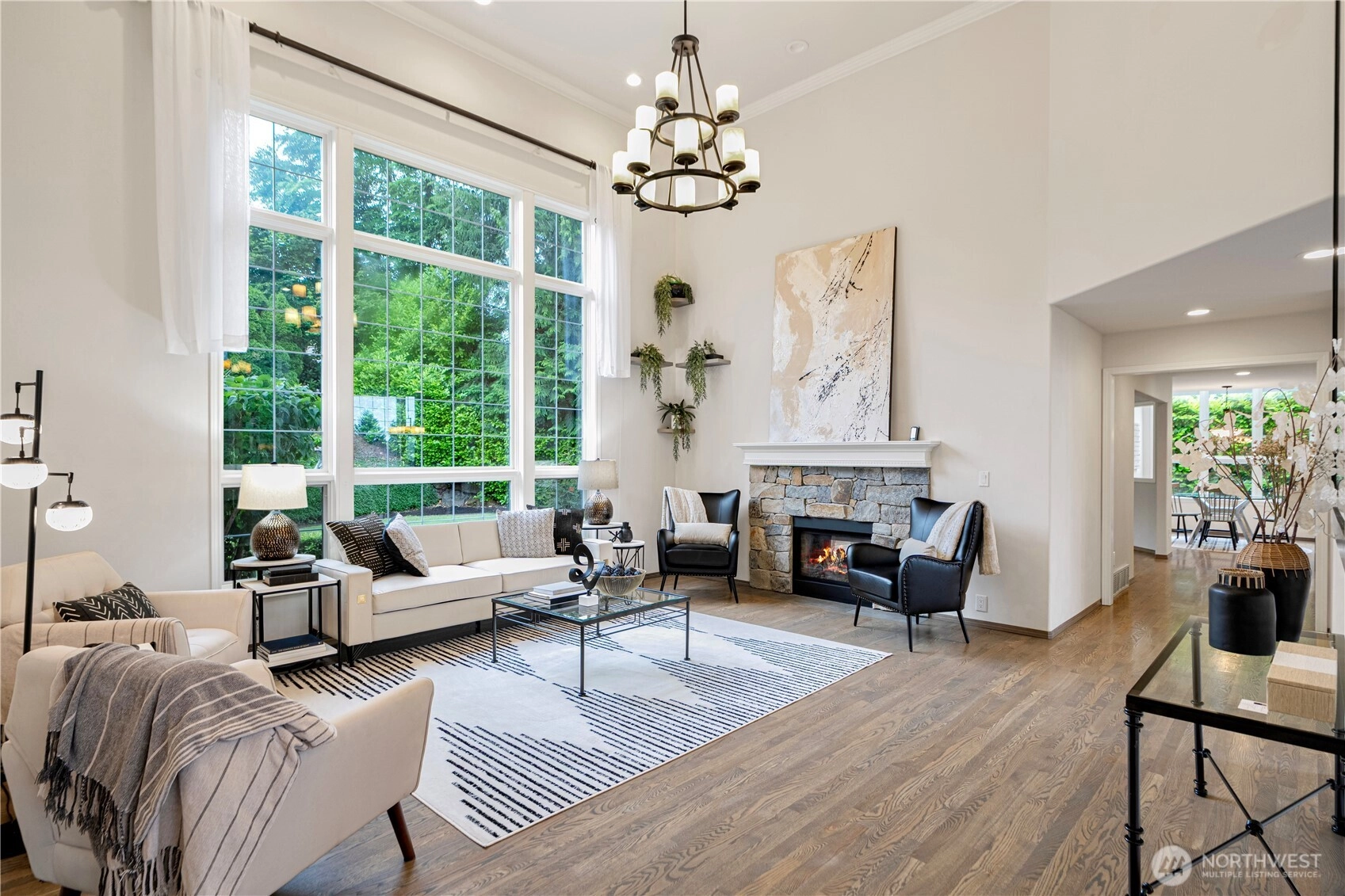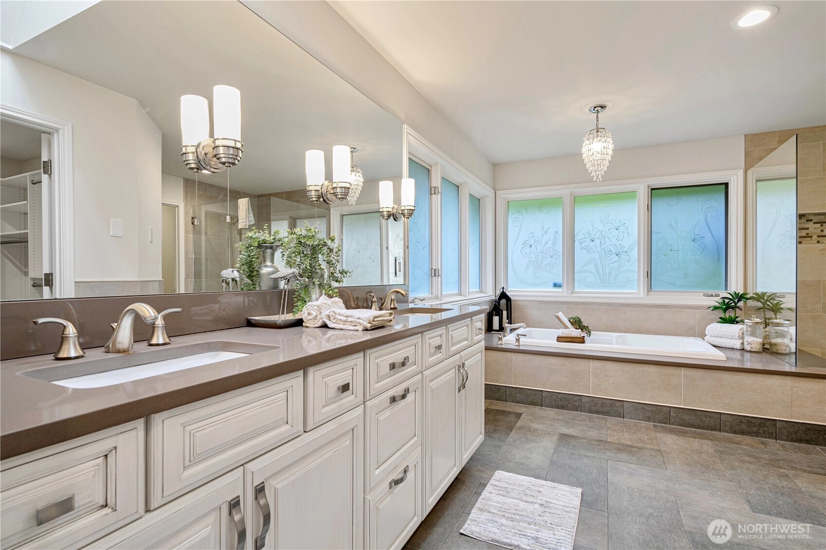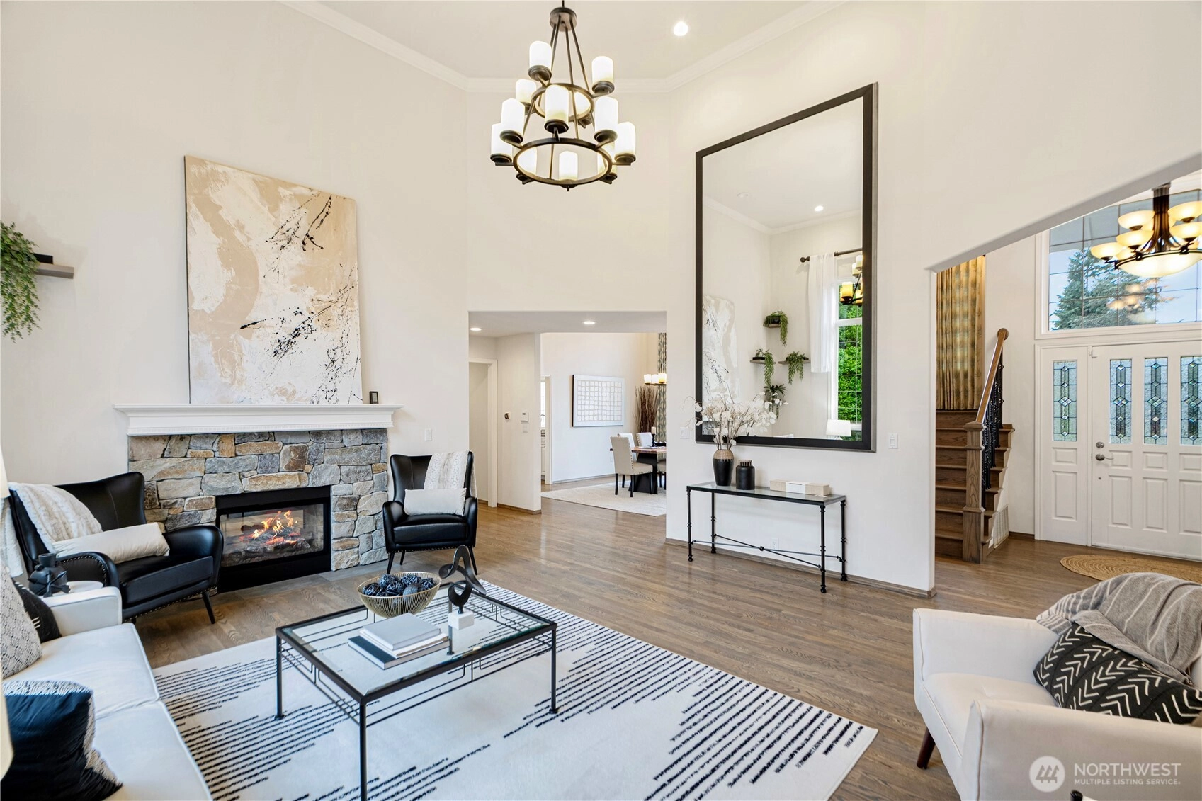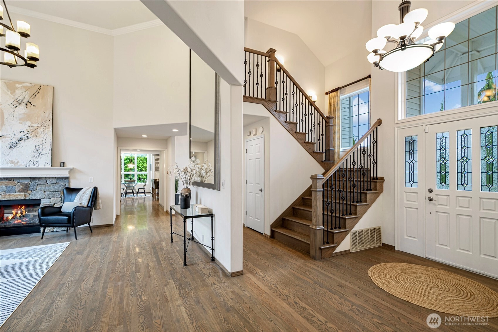 Nestled on a corner lot in Mill Creek’s coveted EVERGREEN community, this updated 4,000 sq ft luxury home impresses w/a circular driveway & stunning curb appeal. 4 bed & 3.5 bth home offers exceptional layout filled w/ natural light; 18-foot vaulted ceilings & Dual staircases create a grand sense of flow; 2 primary suites on separate levels offer unmatched flexibility; 2 living spaces w/ formal dining on main, upstairs massive entertaining room; Professional-grade chef’s kitchen; Hardwood floors throughout; 3 gas fireplaces provide warmth & efficiency during the winter; 3-car garage w/extra height; Sun-soaked yard & patio complete the package. Minutes to top-rated schools, trails & parks, golf, dining, and more. This home truly has it all!