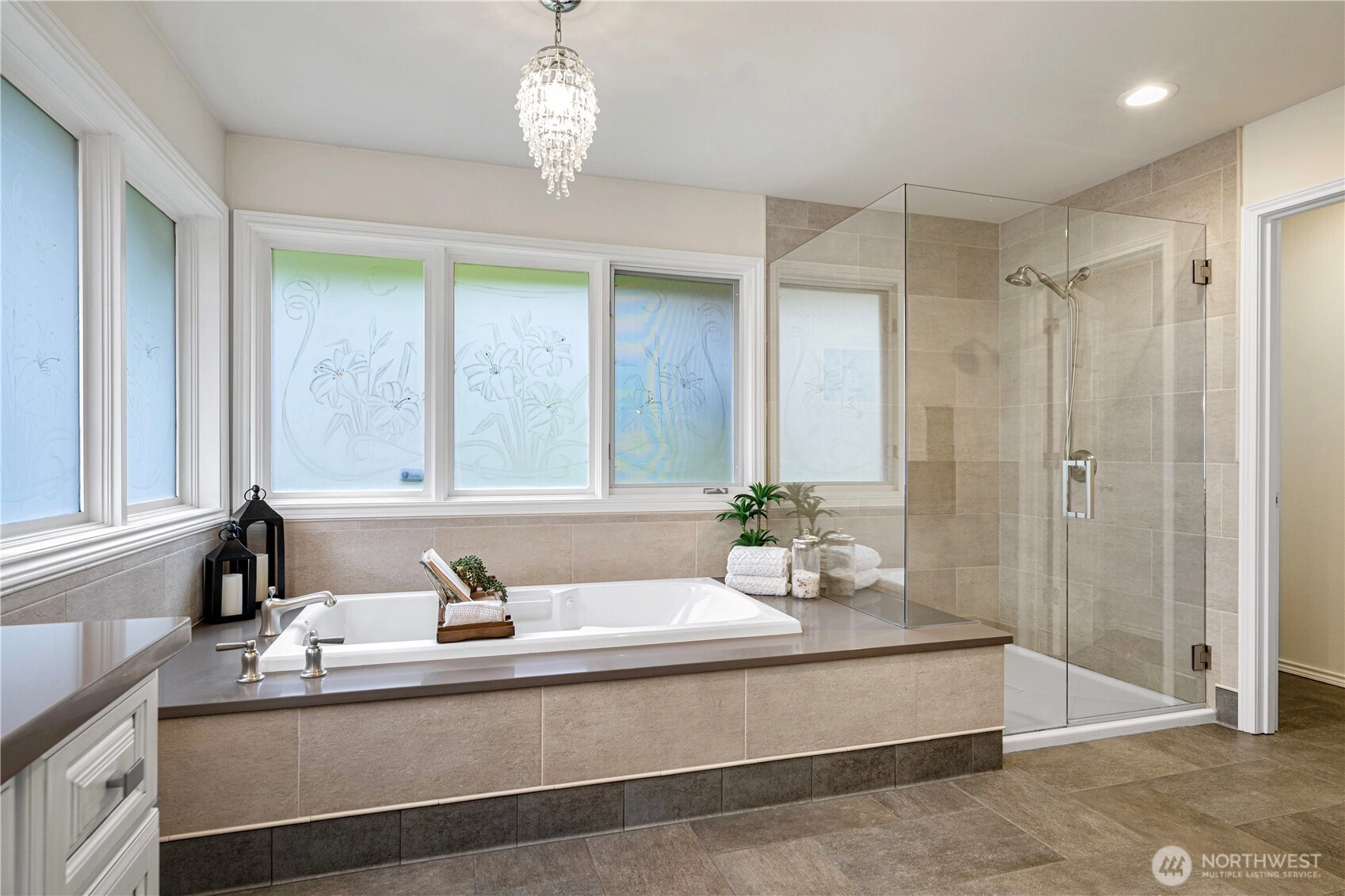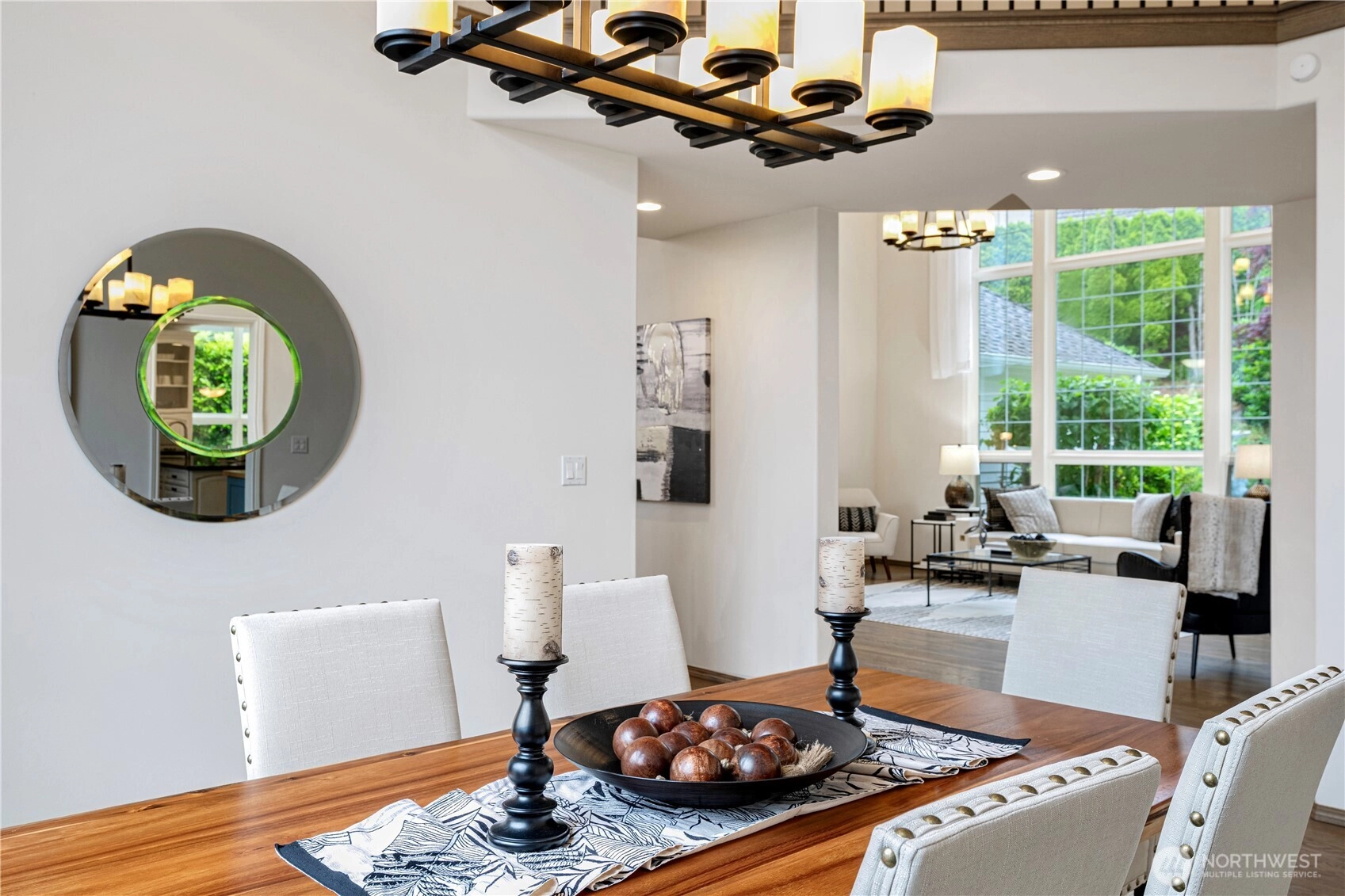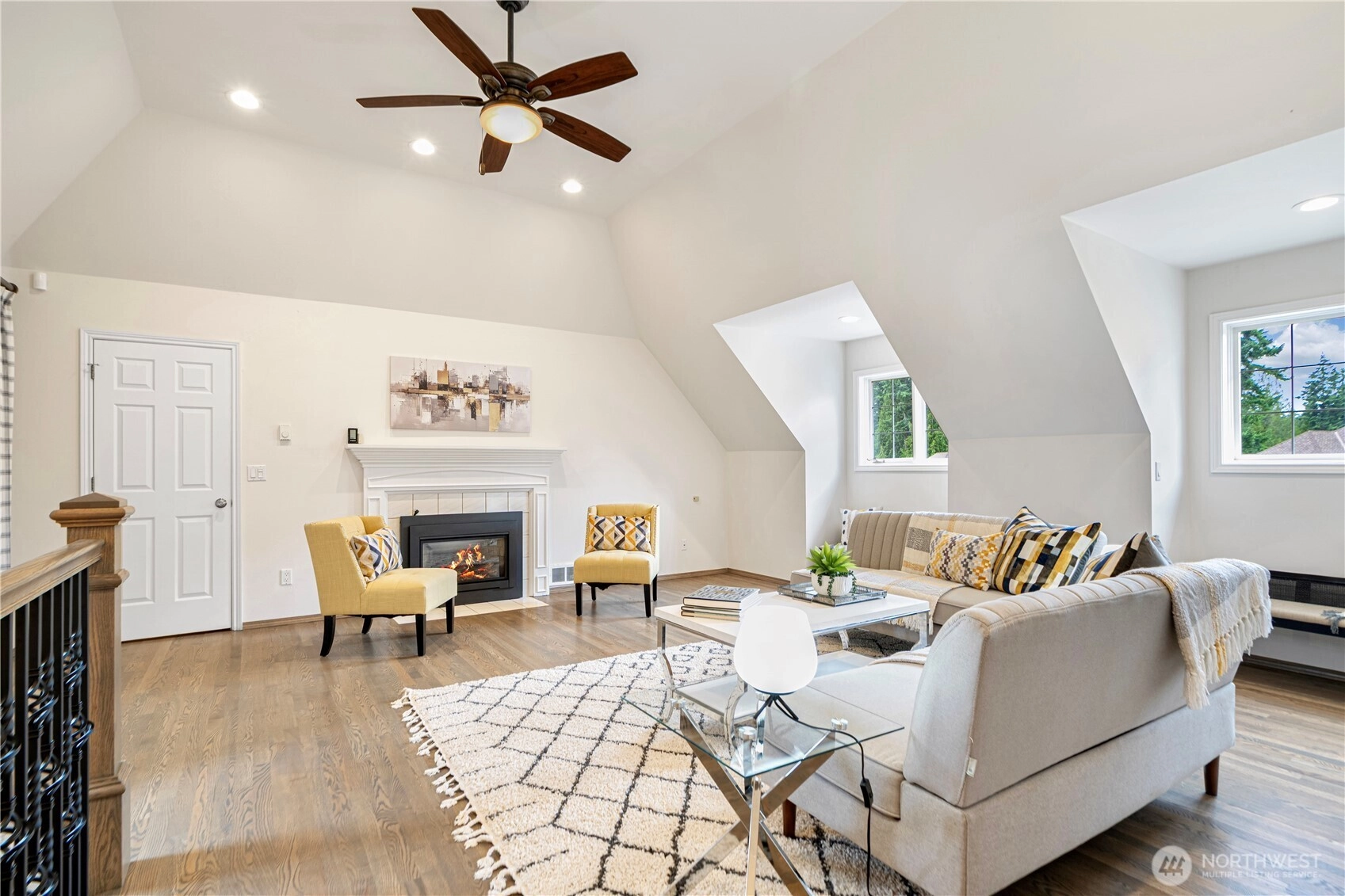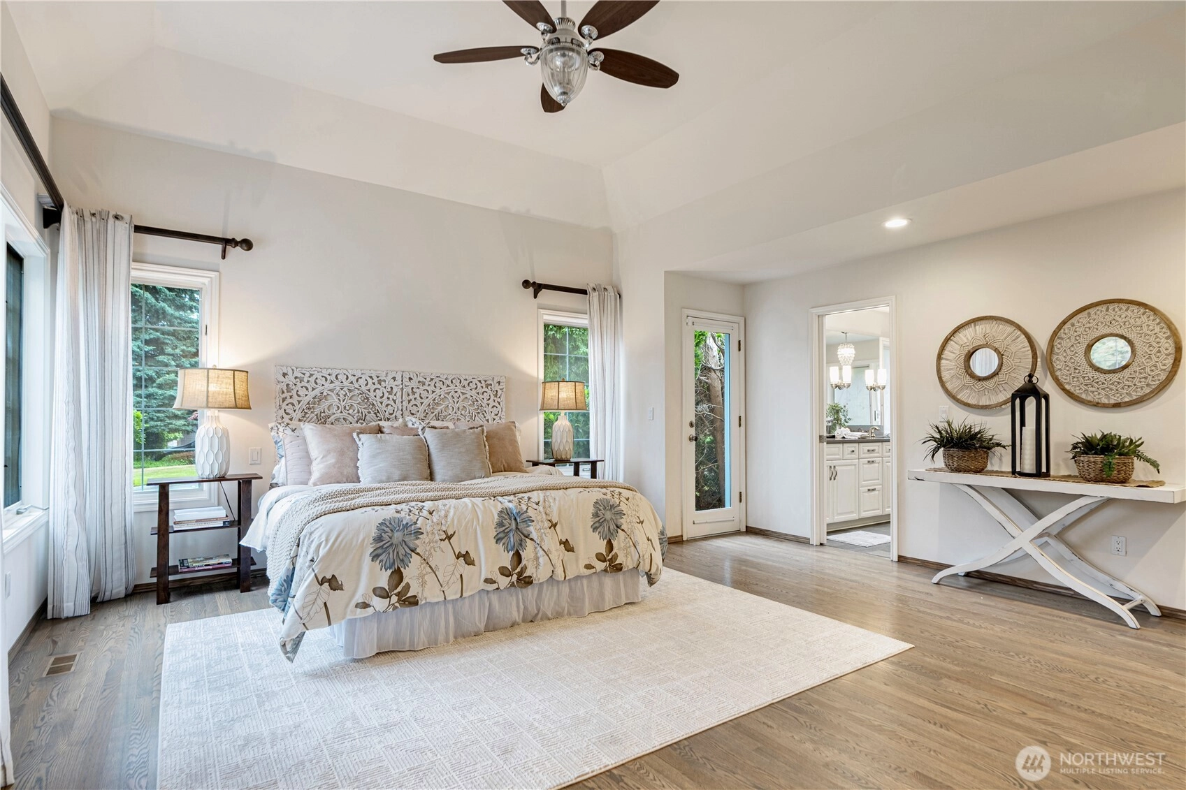 Nestled on a corner lot in Mill Creek’s coveted EVERGREEN community, this updated 4,000 sq ft luxury home impresses w/a circular driveway & stunning curb appeal. 4 bed & 3.5 bth home offers exceptional layout filled w/ natural light; 18-foot vaulted ceilings & Dual staircases create a grand sense of flow; 2 primary suites on separate levels offer unmatched flexibility; 2 living spaces w/ formal dining on main, upstairs massive entertaining room; Professional-grade chef’s kitchen; Hardwood floors throughout; 3 gas fireplaces provide warmth & efficiency during the winter; 3-car garage w/extra height; Sun-soaked yard & patio complete the package. Minutes to top-rated schools, trails & parks, golf, dining, and more. This home truly has it all!