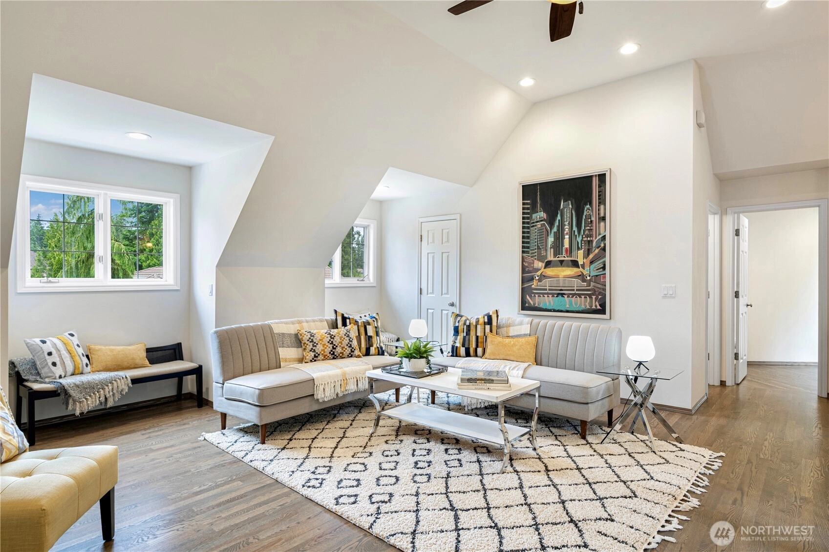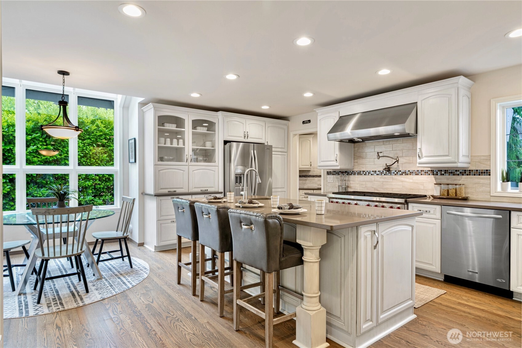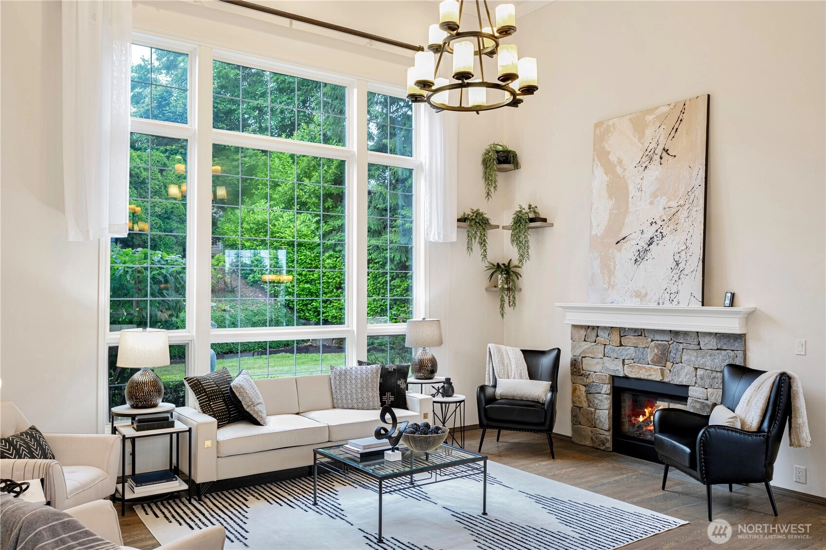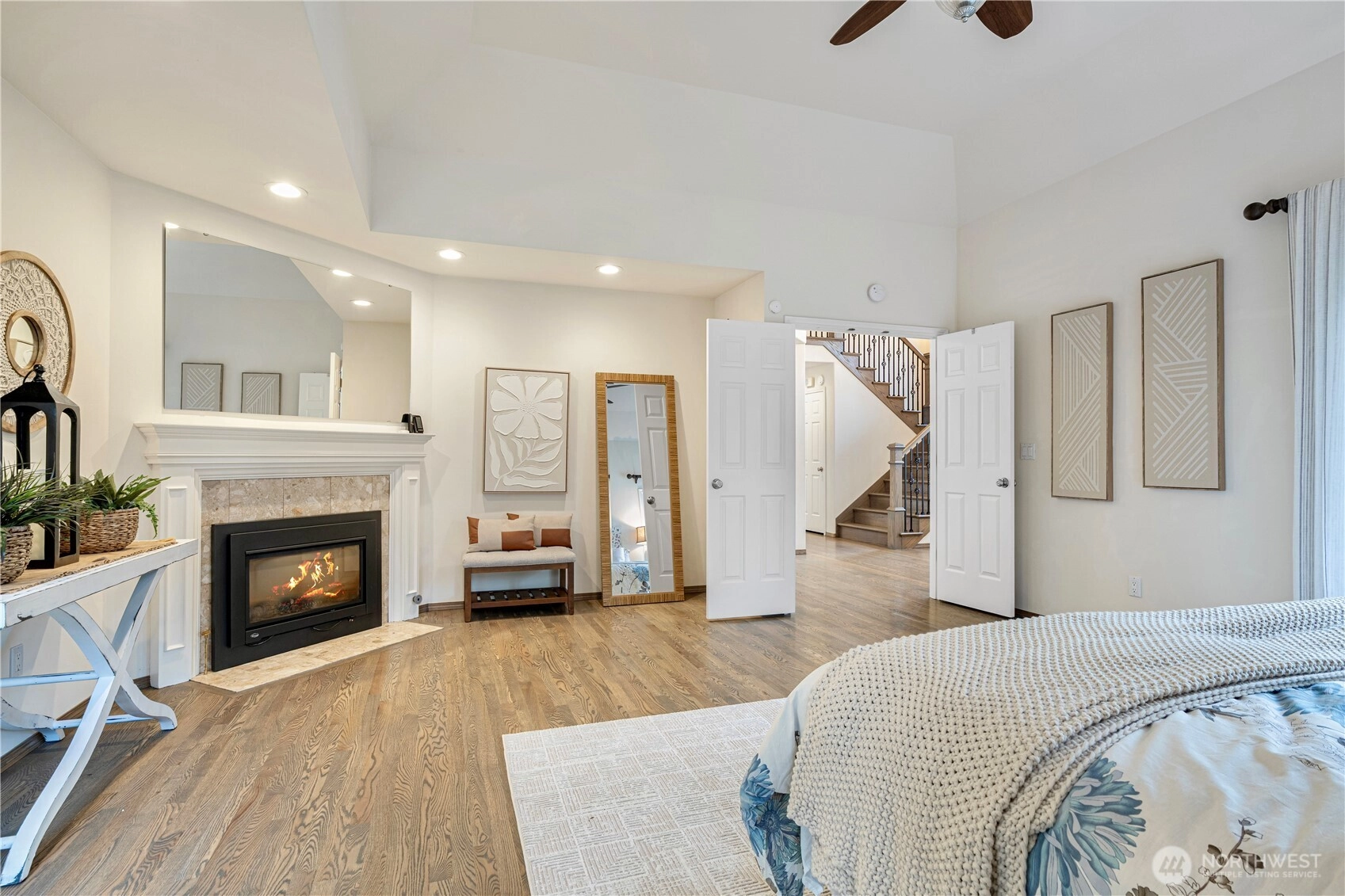 Nestled on a corner lot in Mill Creek’s coveted EVERGREEN community, this updated 4,000 sq ft luxury home impresses w/a circular driveway & stunning curb appeal. 4 bed & 3.5 bth home offers exceptional layout filled w/ natural light; 18-foot vaulted ceilings & Dual staircases create a grand sense of flow; 2 primary suites on separate levels offer unmatched flexibility; 2 living spaces w/ formal dining on main, upstairs massive entertaining room; Professional-grade chef’s kitchen; Hardwood floors throughout; 3 gas fireplaces provide warmth & efficiency during the winter; 3-car garage w/extra height; Sun-soaked yard & patio complete the package. Minutes to top-rated schools, trails & parks, golf, dining, and more. This home truly has it all!