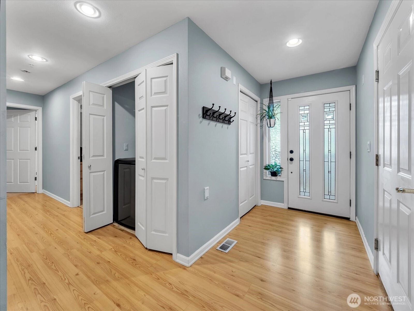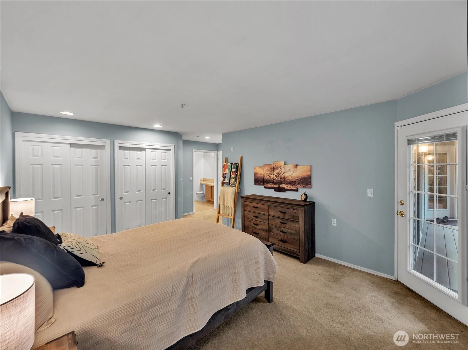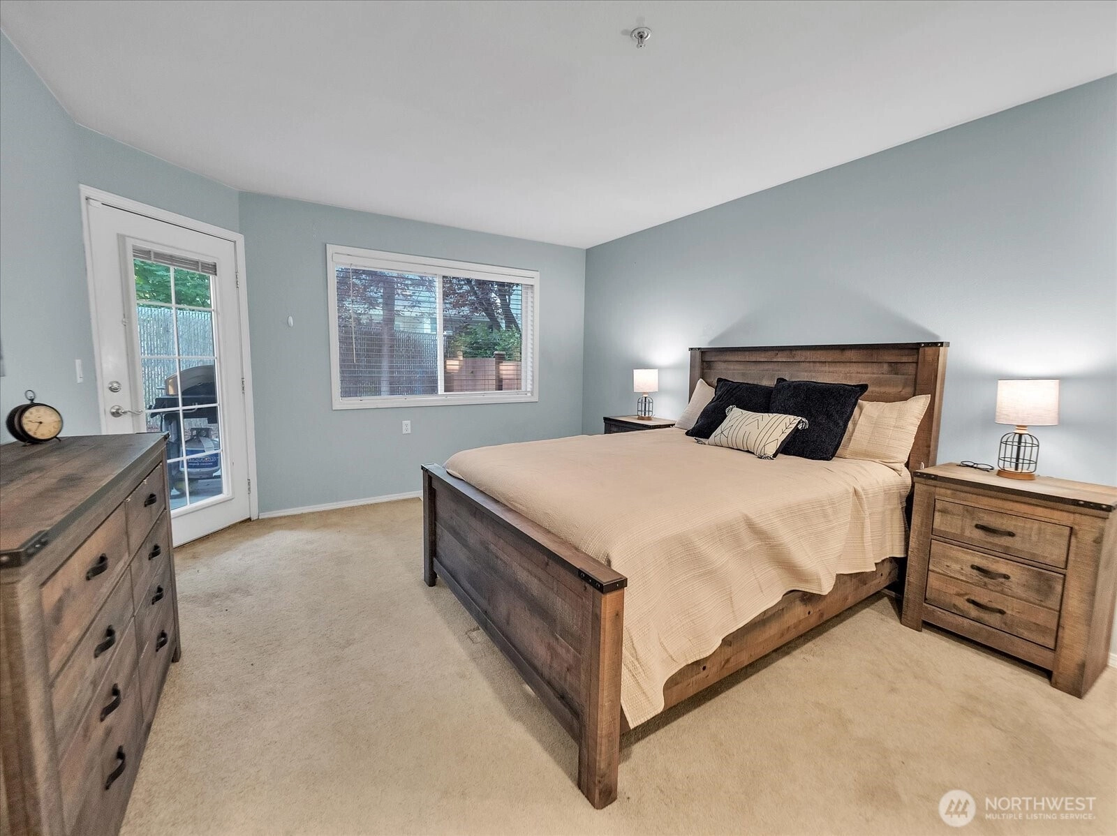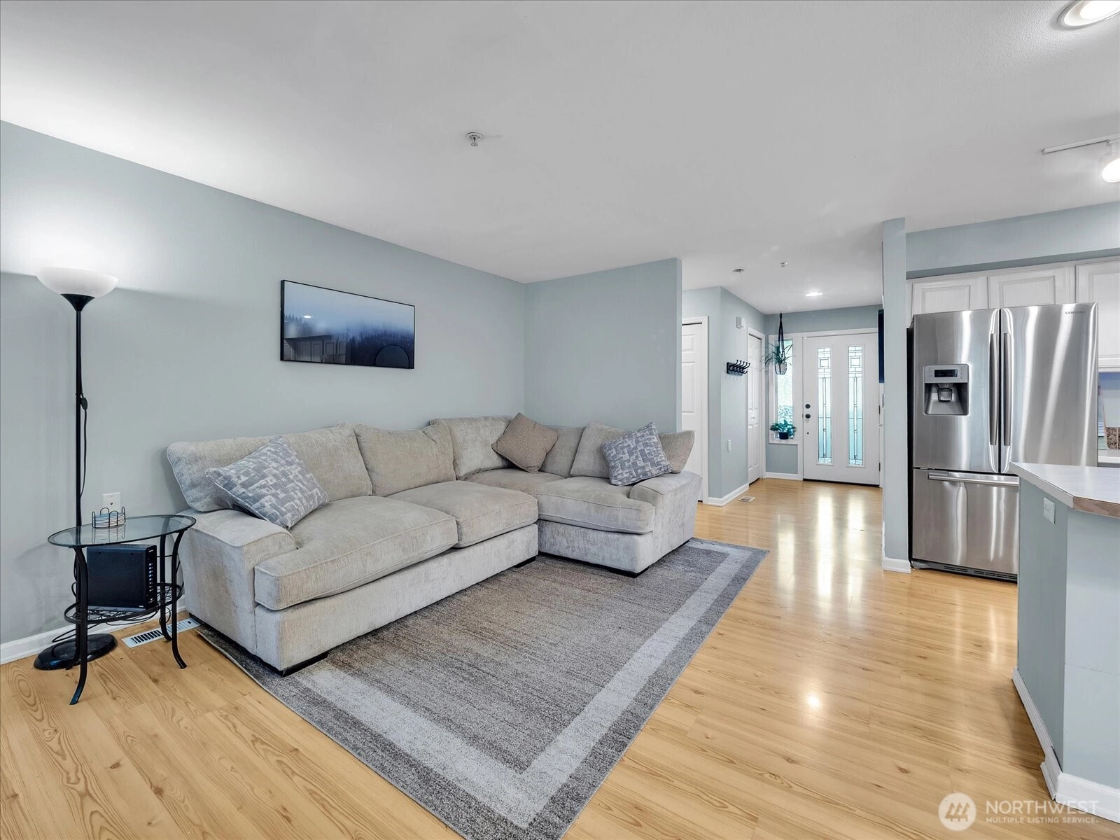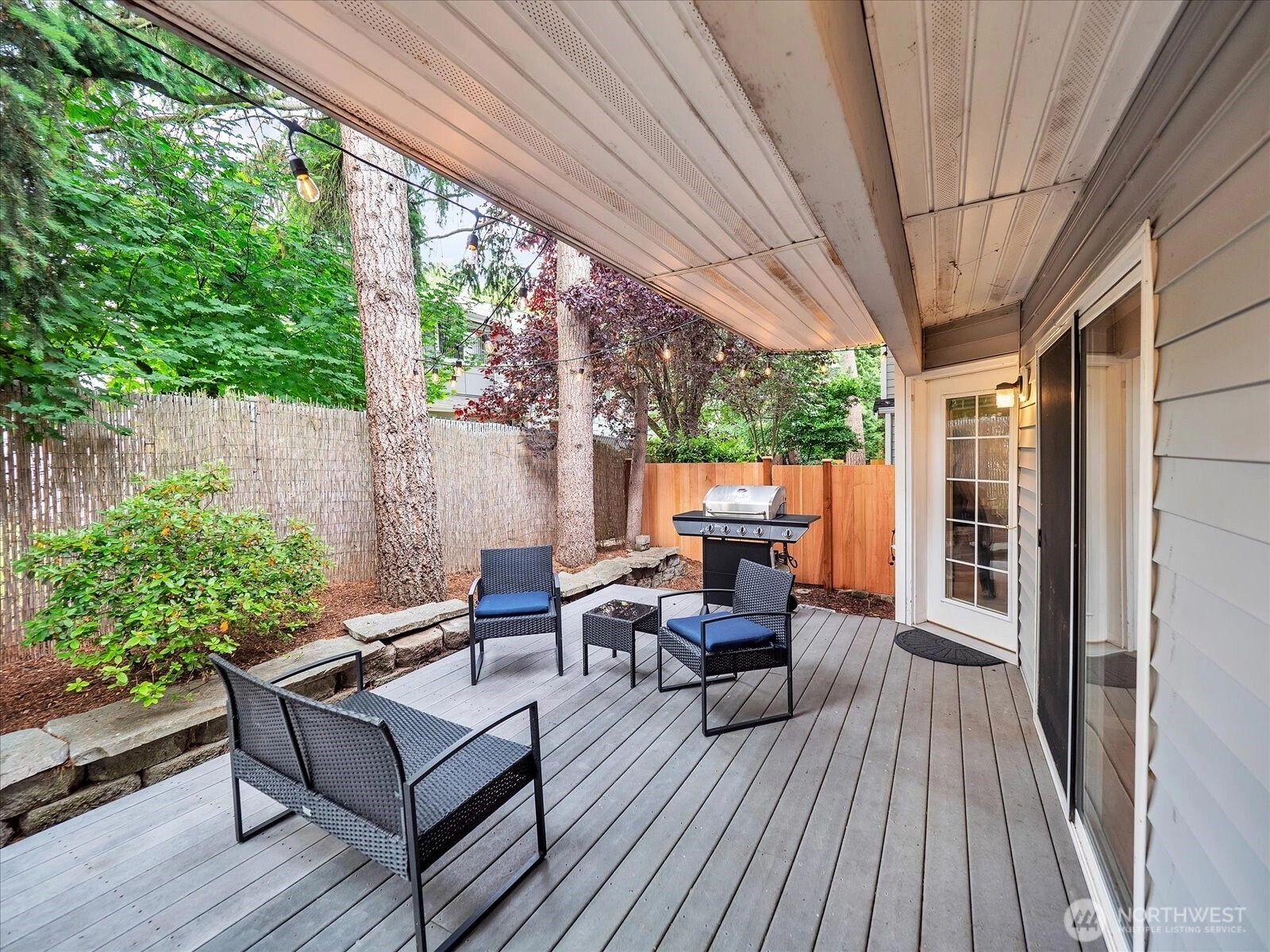 A well-designed condo with 2 beds, 1.75 baths, 1,113 sq ft, open-concept layout, and cozy gas fireplace. Enjoy access to the private Trex deck and fenced yard from both bedrooms and the living room. Designed for a variety of lifestyles, this home features step-free entry, wide doorways/hallways, roll-under kitchen counter, and an accessible secondary bath with roll-under vanity and pull-down bench. The second bedroom doubles as an office with a custom Murphy bed and pull-down desk. Low-maintenance and centrally located with easy access to I-5—comfort, style, and convenience in one package.