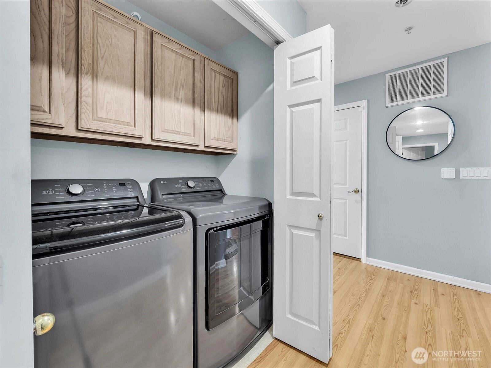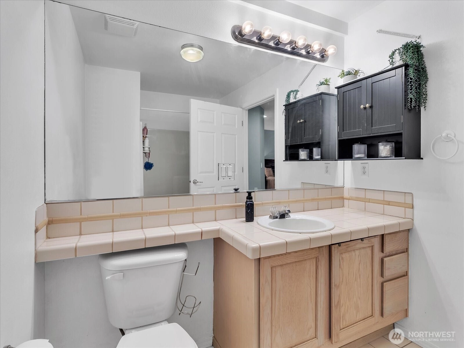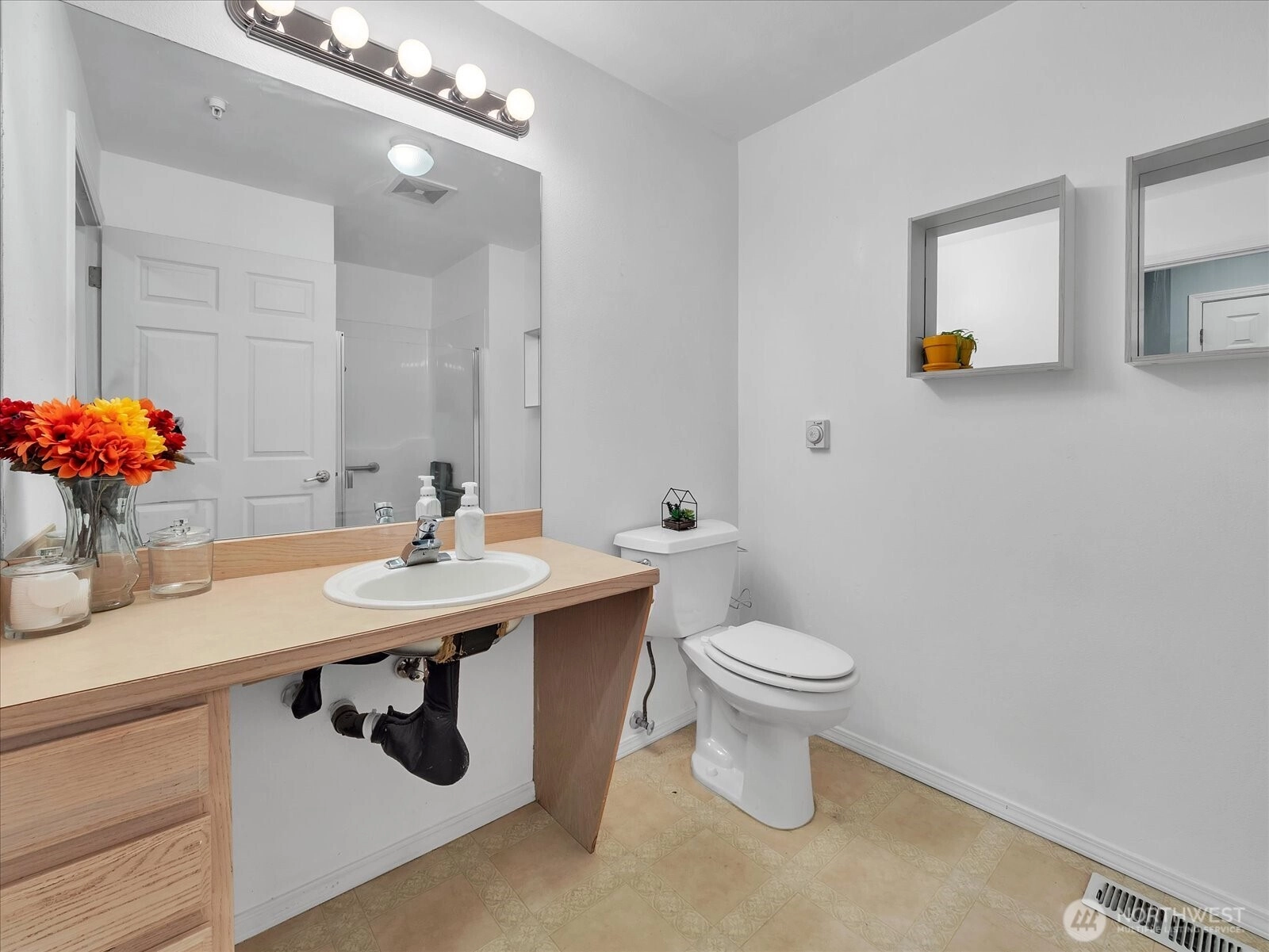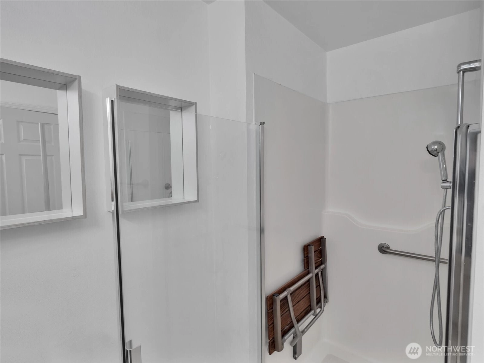A well-designed condo with 2 beds, 1.75 baths, 1,113 sq ft, open-concept layout, and cozy gas fireplace. Enjoy access to the private Trex deck and fenced yard from both bedrooms and the living room. Designed for a variety of lifestyles, this home features step-free entry, wide doorways/hallways, roll-under kitchen counter, and an accessible secondary bath with roll-under vanity and pull-down bench. The second bedroom doubles as an office with a custom Murphy bed and pull-down desk. Low-maintenance and centrally located with easy access to I-5—comfort, style, and convenience in one package.