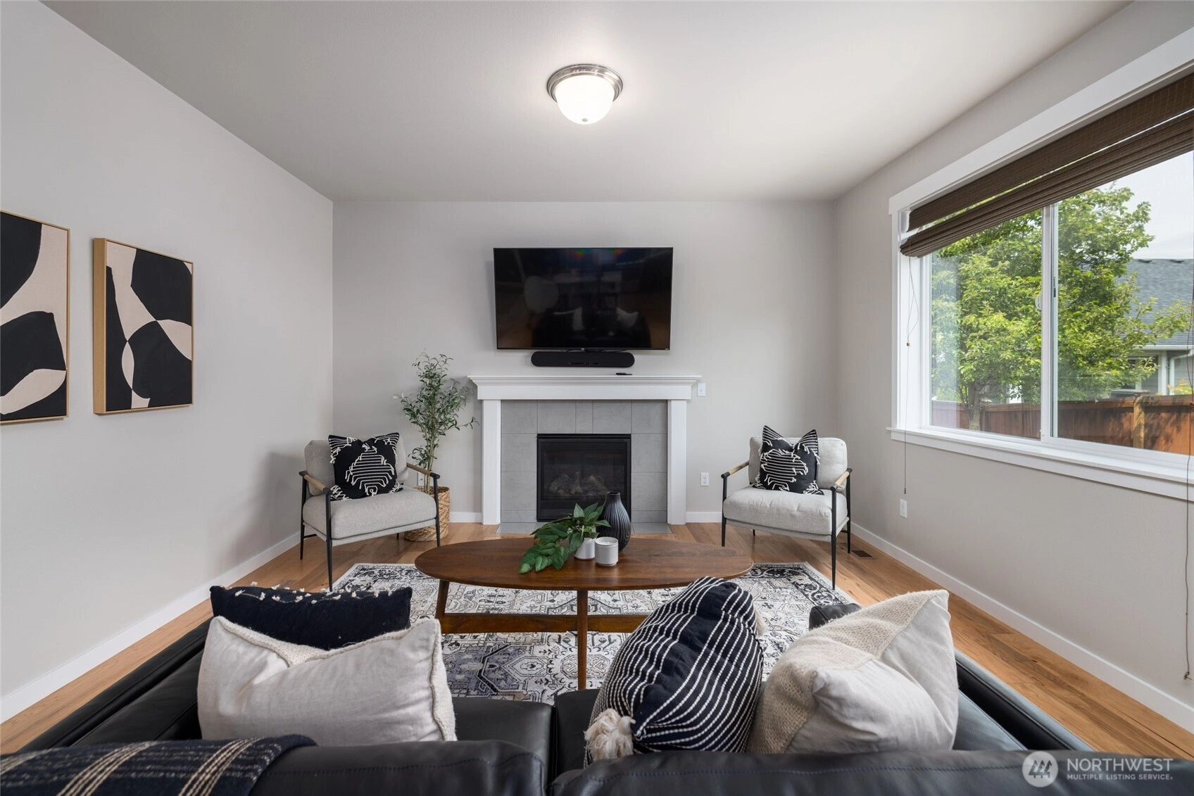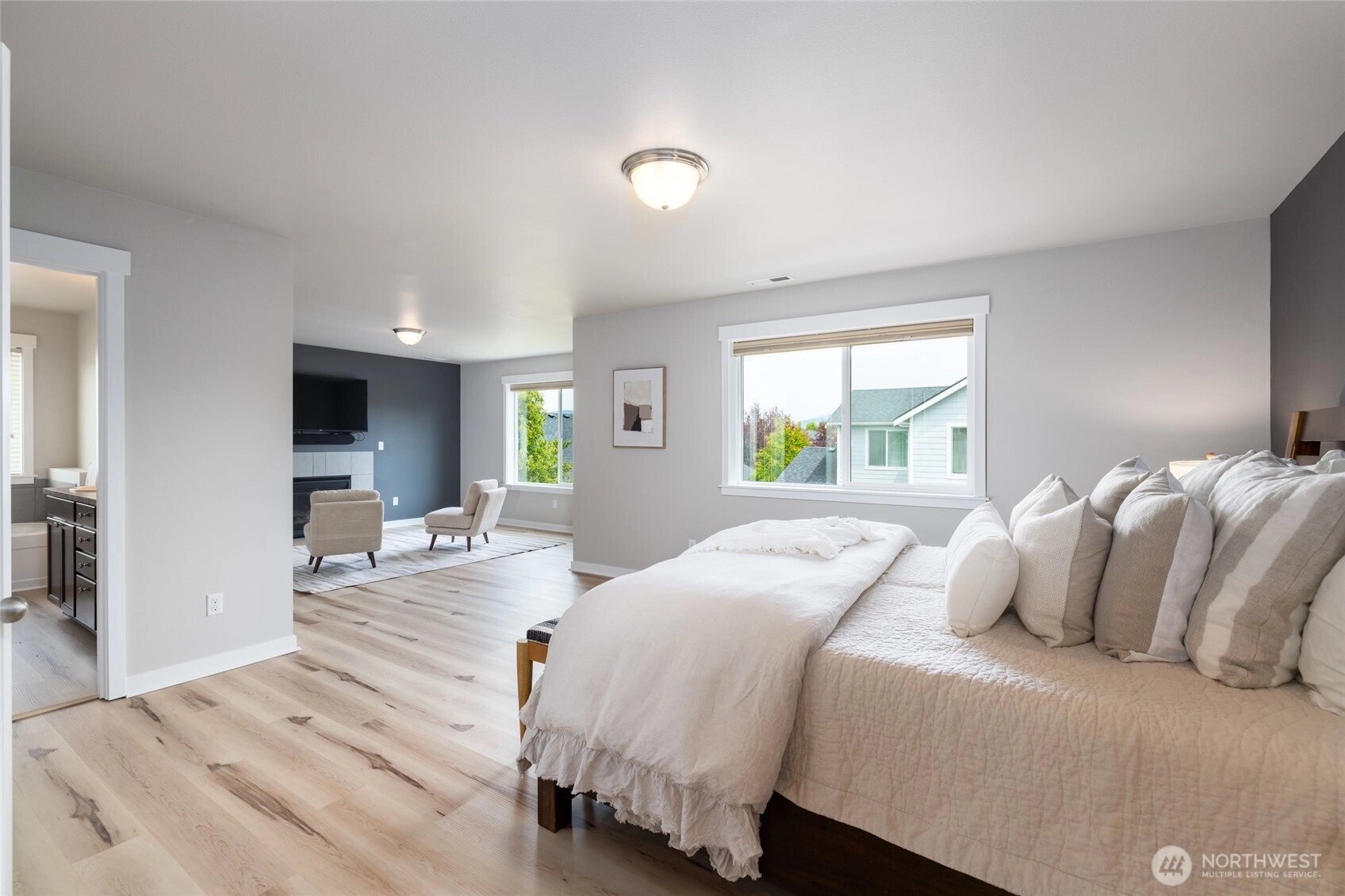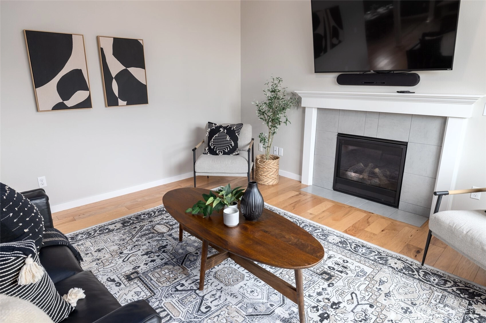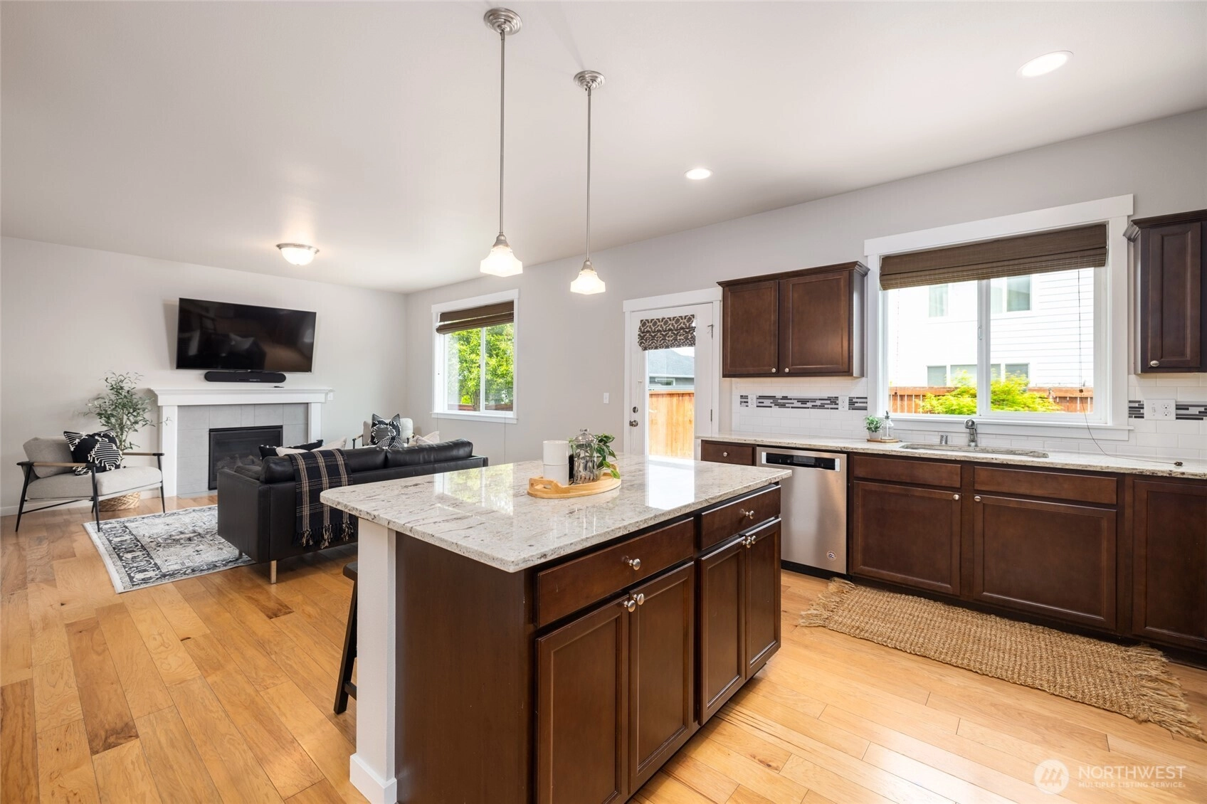 This thoughtfully designed home in Summersun Estates offers 3 bedrooms plus a den and a spacious great room that flows effortlessly into the kitchen and dining areas ideal for everyday living. Engineered hardwood floors welcome you into the entry, kitchen, and dining spaces, while a cozy gas fireplace adds warmth to the great room. The kitchen features slab granite countertops, stainless steel appliances, and stylish finishes throughout. Upstairs, a convenient laundry room, 2 bedrooms and a generous primary suite await complete with a large sitting area w/second gas fireplace for the perfect private retreat. Enjoy a fully fenced backyard 3-car garage, and close proximity to the community's paved walking trail.