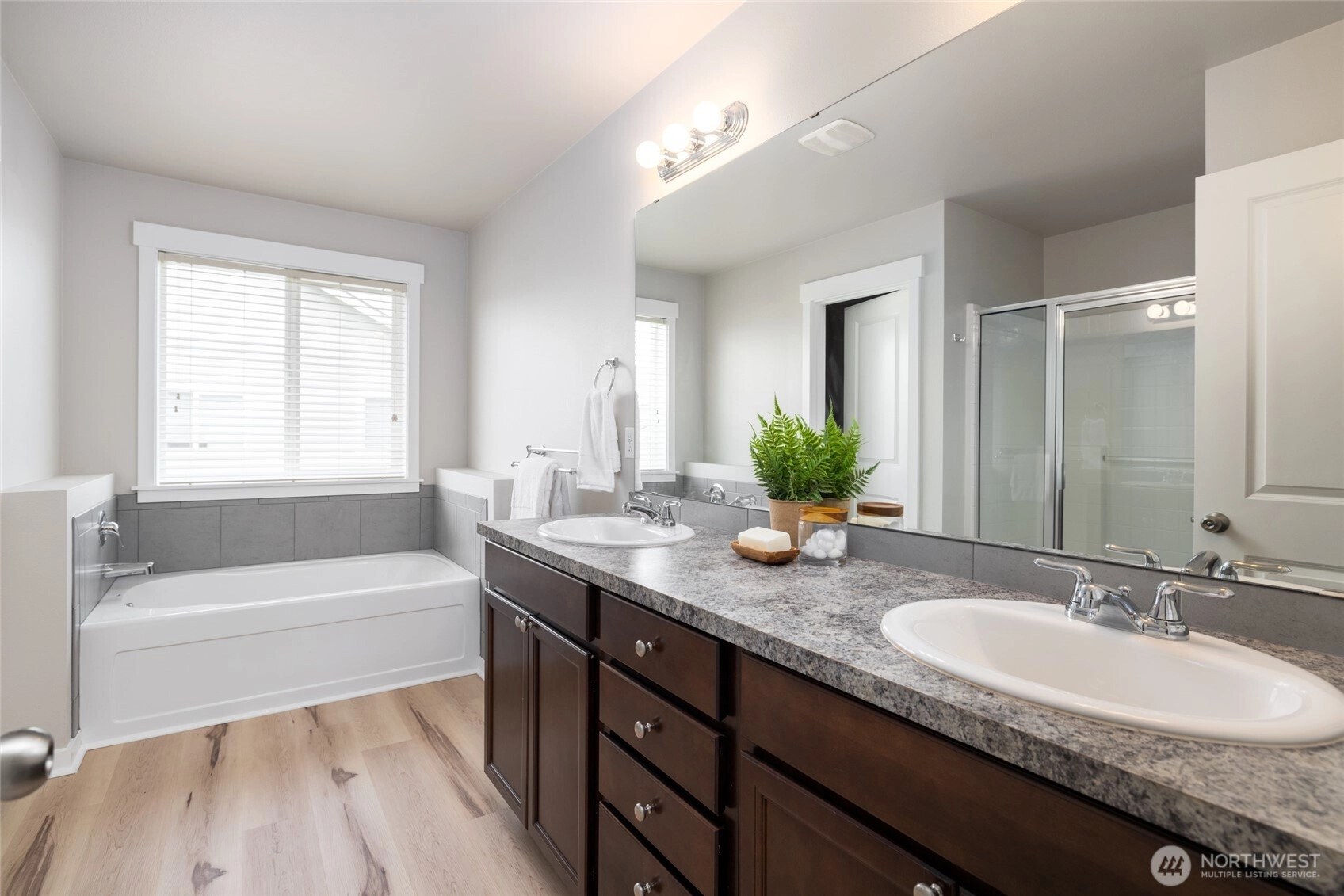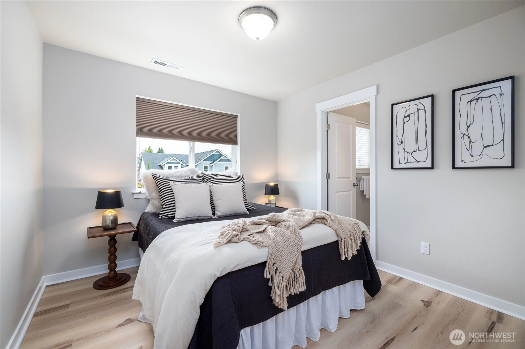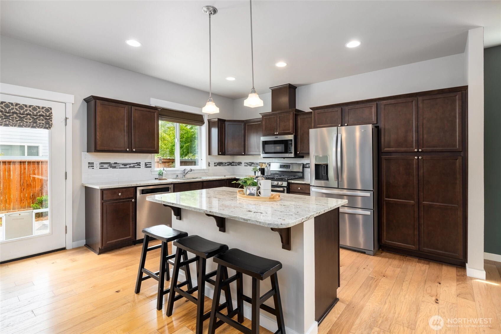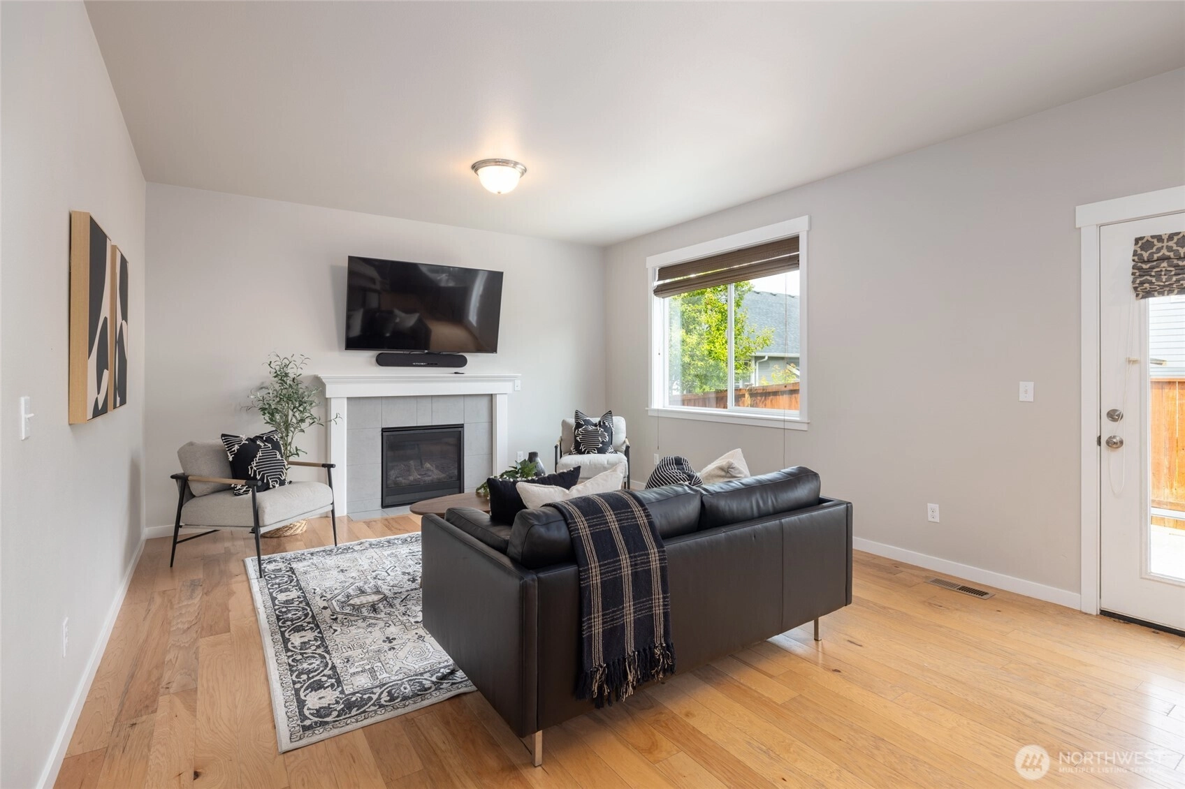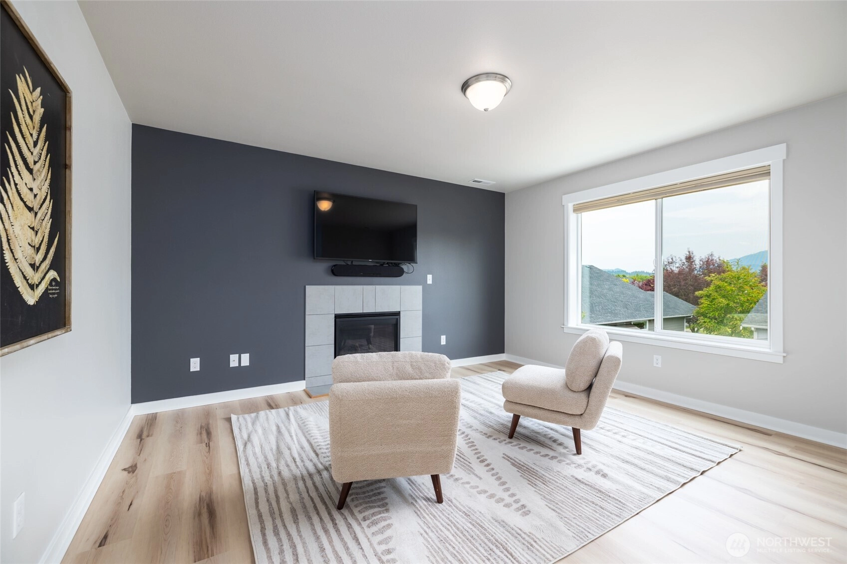 This thoughtfully designed home in Summersun Estates offers 3 bedrooms plus a den and a spacious great room that flows effortlessly into the kitchen and dining areas ideal for everyday living. Engineered hardwood floors welcome you into the entry, kitchen, and dining spaces, while a cozy gas fireplace adds warmth to the great room. The kitchen features slab granite countertops, stainless steel appliances, and stylish finishes throughout. Upstairs, a convenient laundry room, 2 bedrooms and a generous primary suite await complete with a large sitting area w/second gas fireplace for the perfect private retreat. Enjoy a fully fenced backyard 3-car garage, and close proximity to the community's paved walking trail.