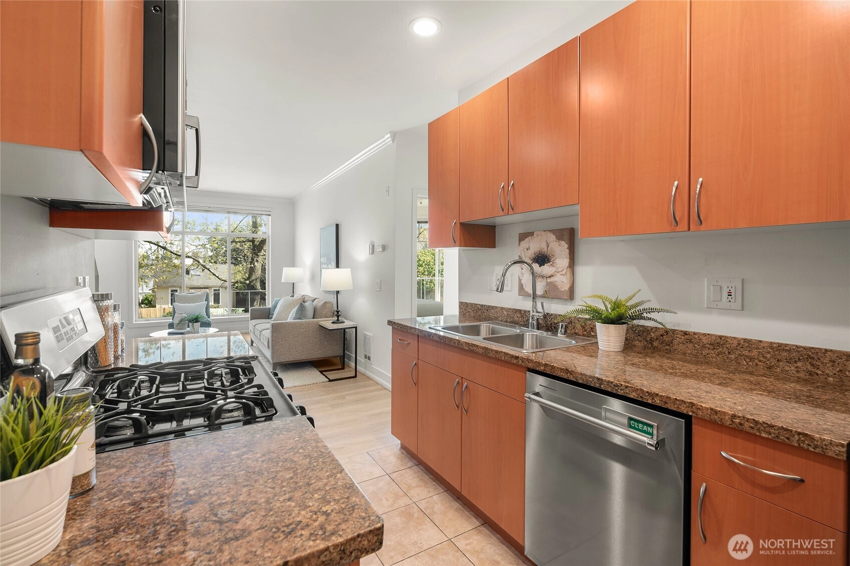 PRICED TO SELL! Experience the perfect blend of comfort, style, and convenience in this beautifully updated condo. The open layout showcases high ceilings, fireplace, and walls of windows that flood the space with natural light. The sleek kitchen boasts stainless steel appliances, granite counters, and generous cabinetry—perfect for both daily living and entertaining. Step out to your wrap-around deck or head up to the community rooftop deck to enjoy sweeping views of Lake Union and the downtown skyline. Situated in a secure, pet-friendly building with elevator access and no rental cap, this home also offers fantastic investment potential. All just minutes from downtown with unbeatable access to everything the city has to offer.