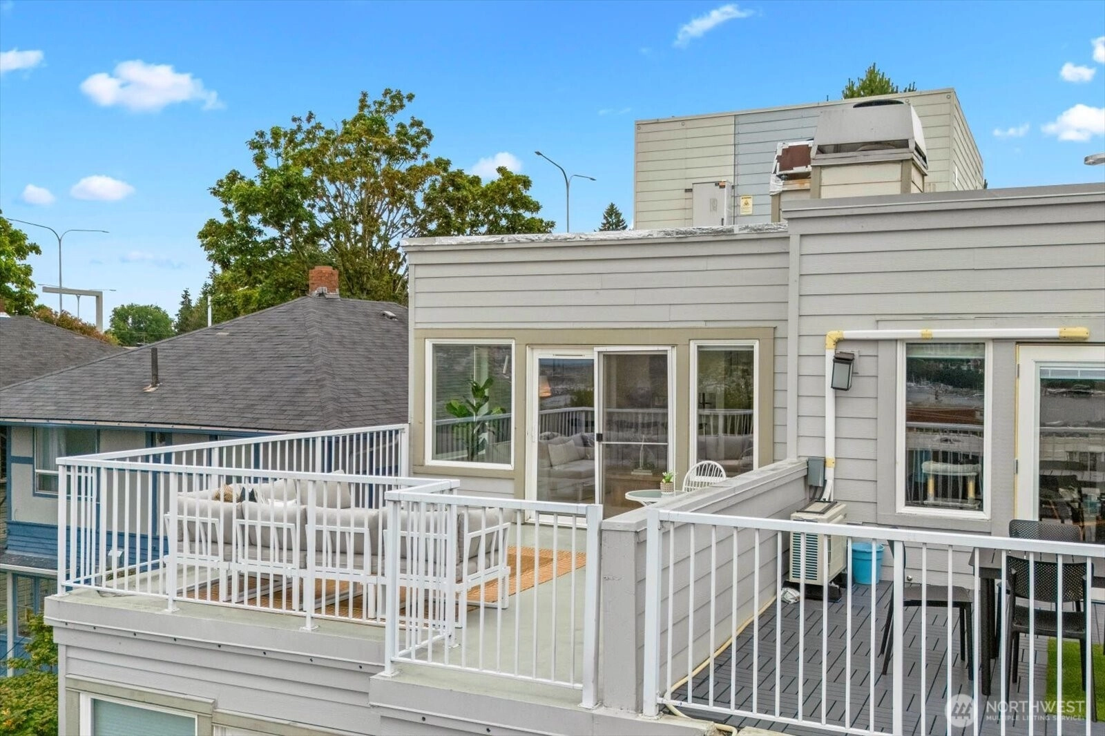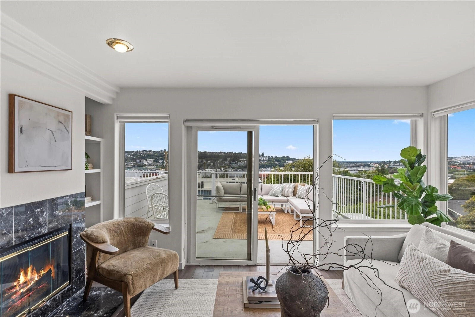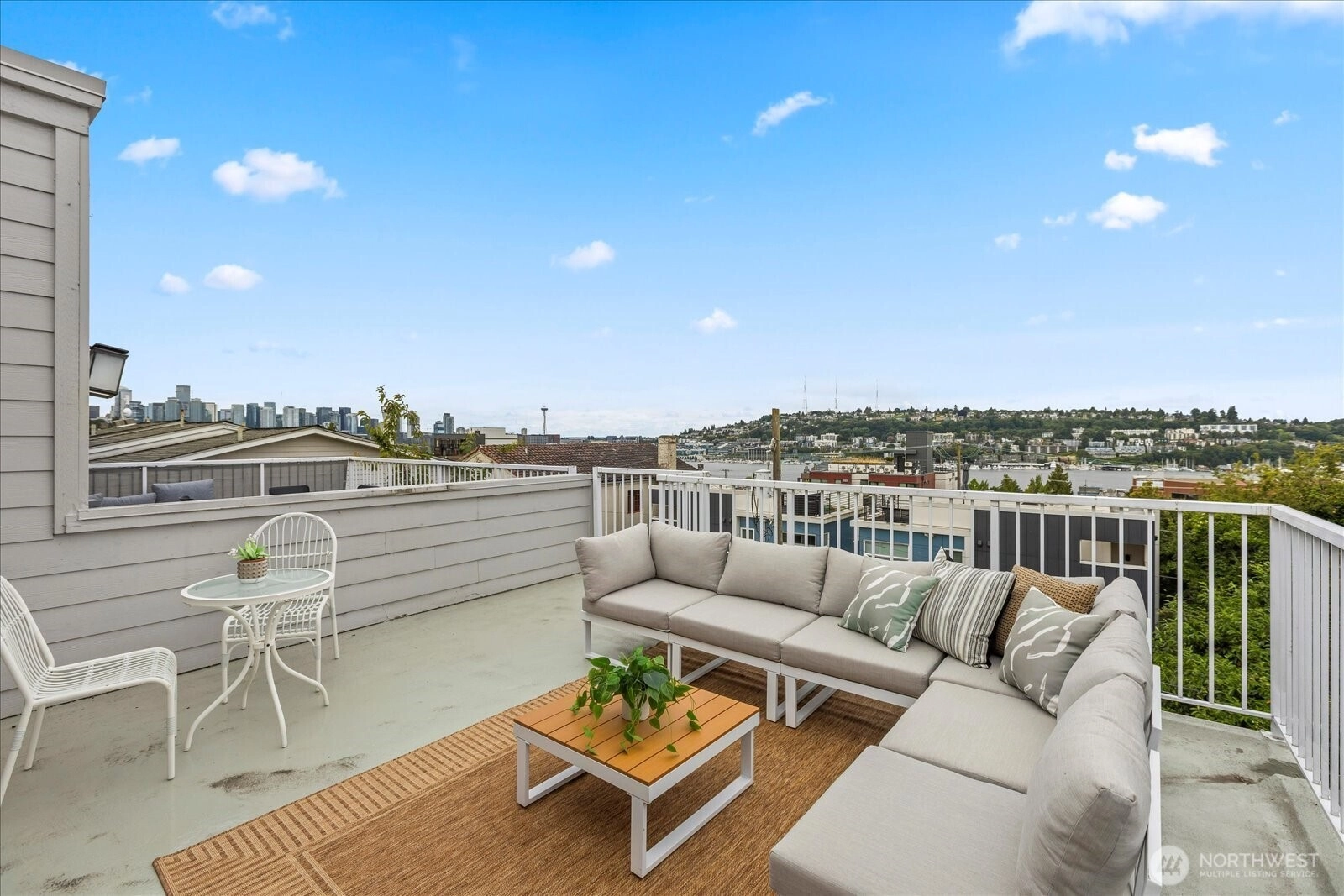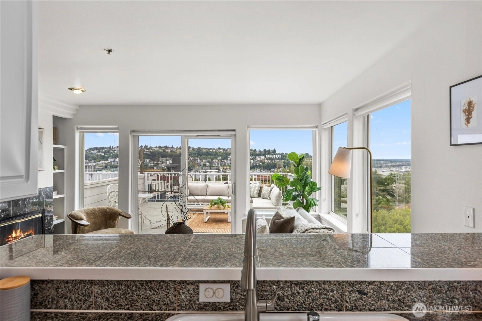 Amazing views from this top floor corner unit in the heart of Eastlake. This 1 bed/1 full bath features bright and open floor plan, updated kitchen and bath and oversized deck that measures approximately 290 sq ft. Light and bright, this open floor plan means you can see and appreciate the lake/mountain and city views from all your living spaces. Oversized, entertaining deck increases your living space in these good weather months, so you can enjoy the PNW summers fully. Stroll to all there is to love about Eastlake's bustling community. Minutes to freeway access, easy to downtown or eastside. No HOA dues make this an easy decision just in time for the summer months.