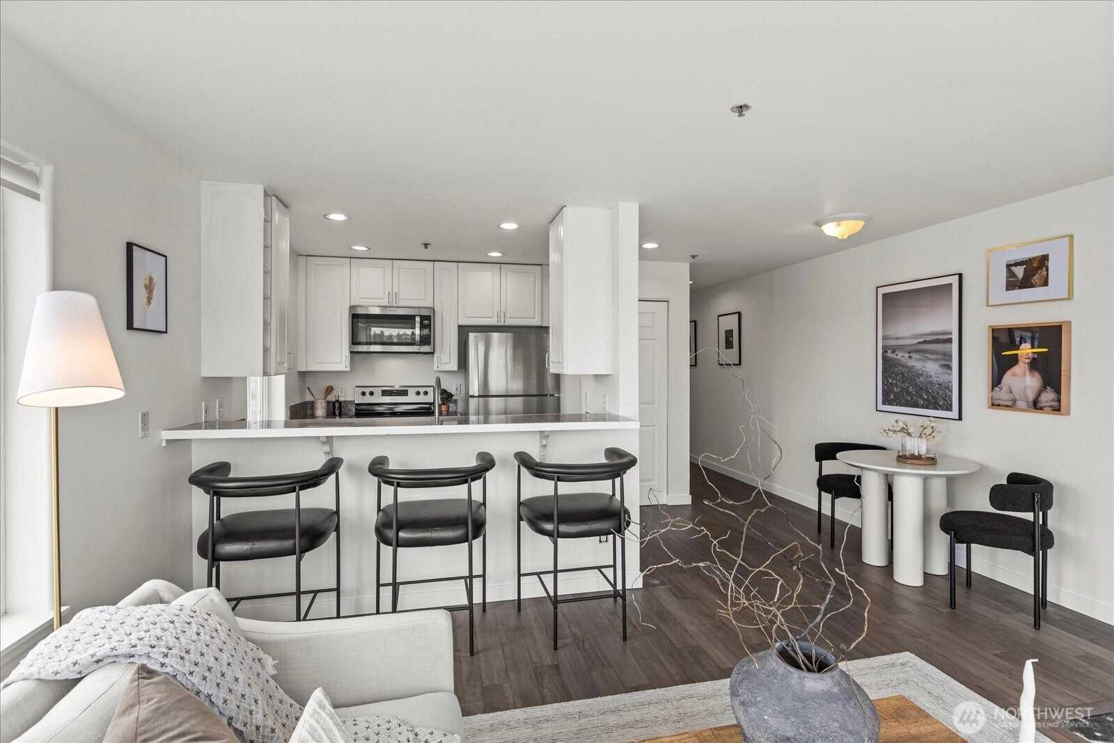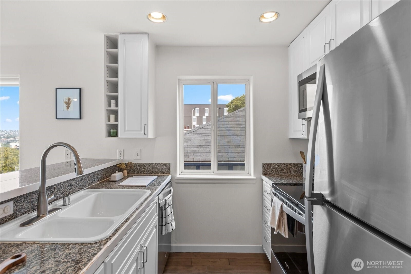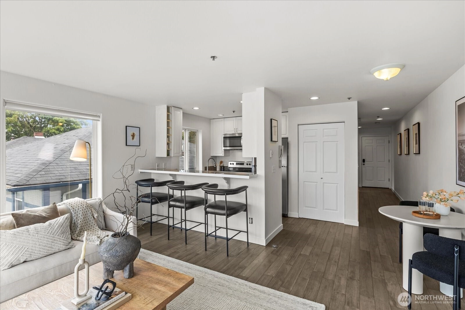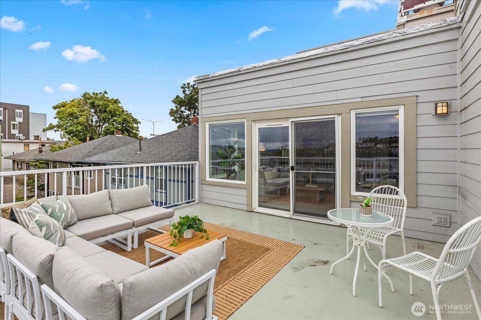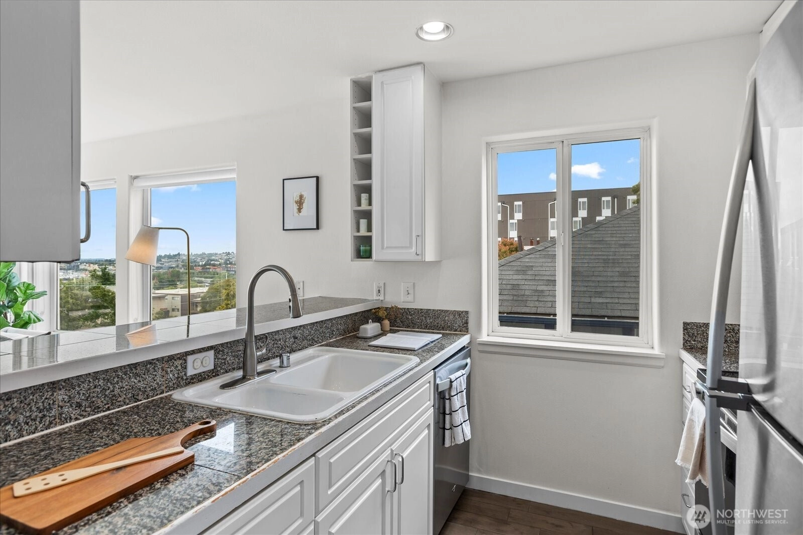 Amazing views from this top floor corner unit in the heart of Eastlake. This 1 bed/1 full bath features bright and open floor plan, updated kitchen and bath and oversized deck that measures approximately 290 sq ft. Light and bright, this open floor plan means you can see and appreciate the lake/mountain and city views from all your living spaces. Oversized, entertaining deck increases your living space in these good weather months, so you can enjoy the PNW summers fully. Stroll to all there is to love about Eastlake's bustling community. Minutes to freeway access, easy to downtown or eastside. No HOA dues make this an easy decision just in time for the summer months.