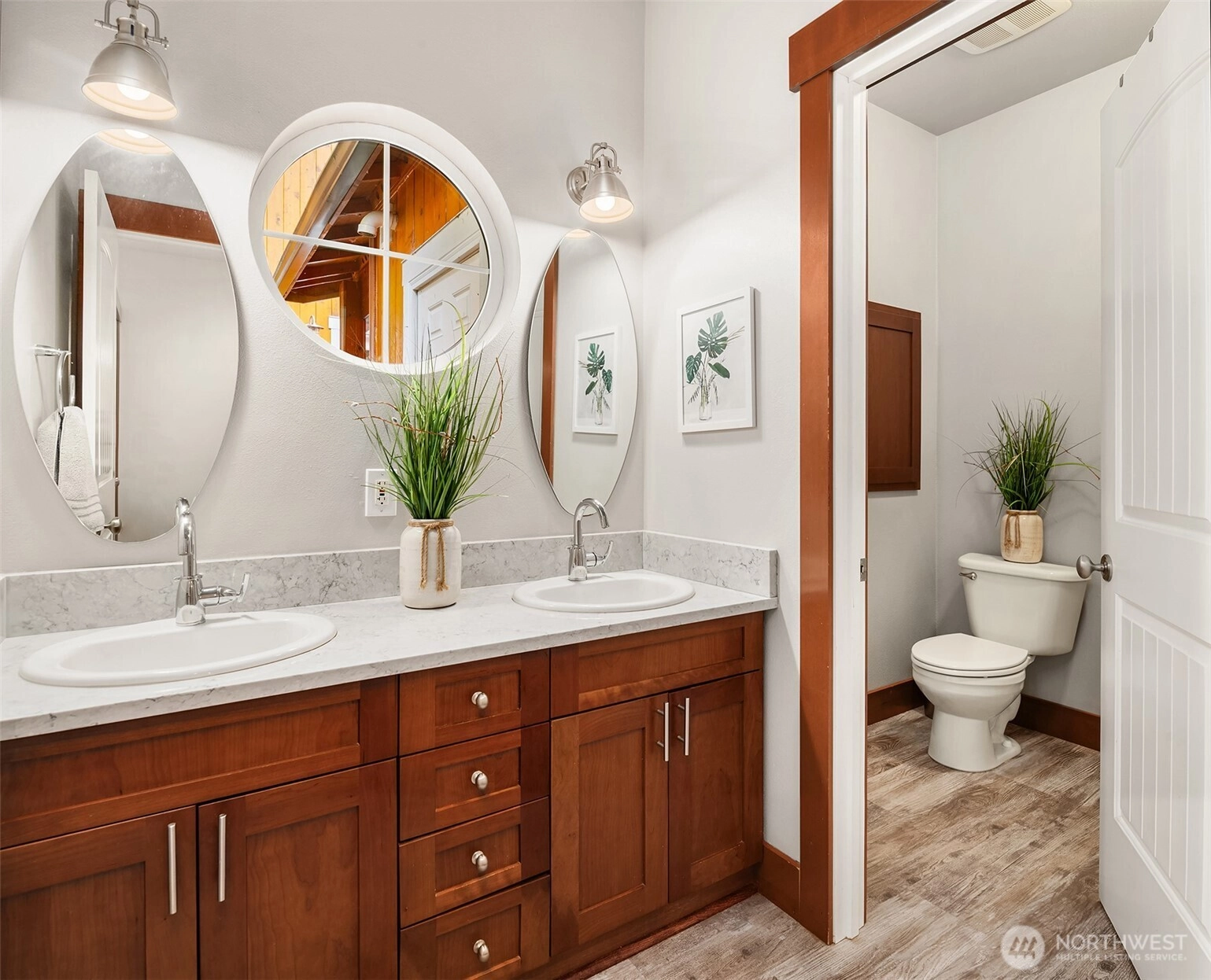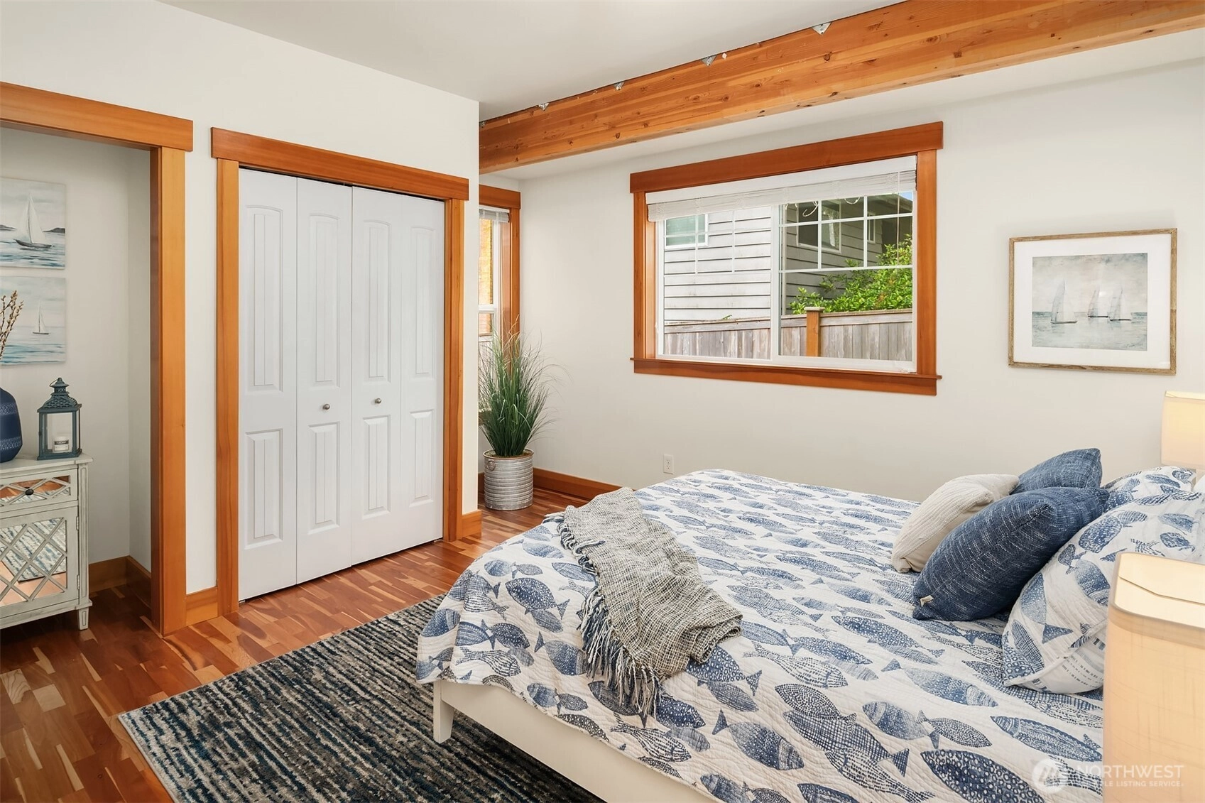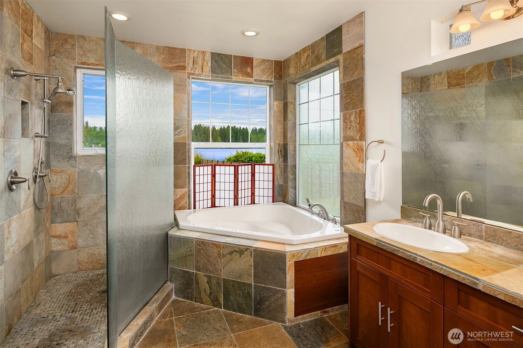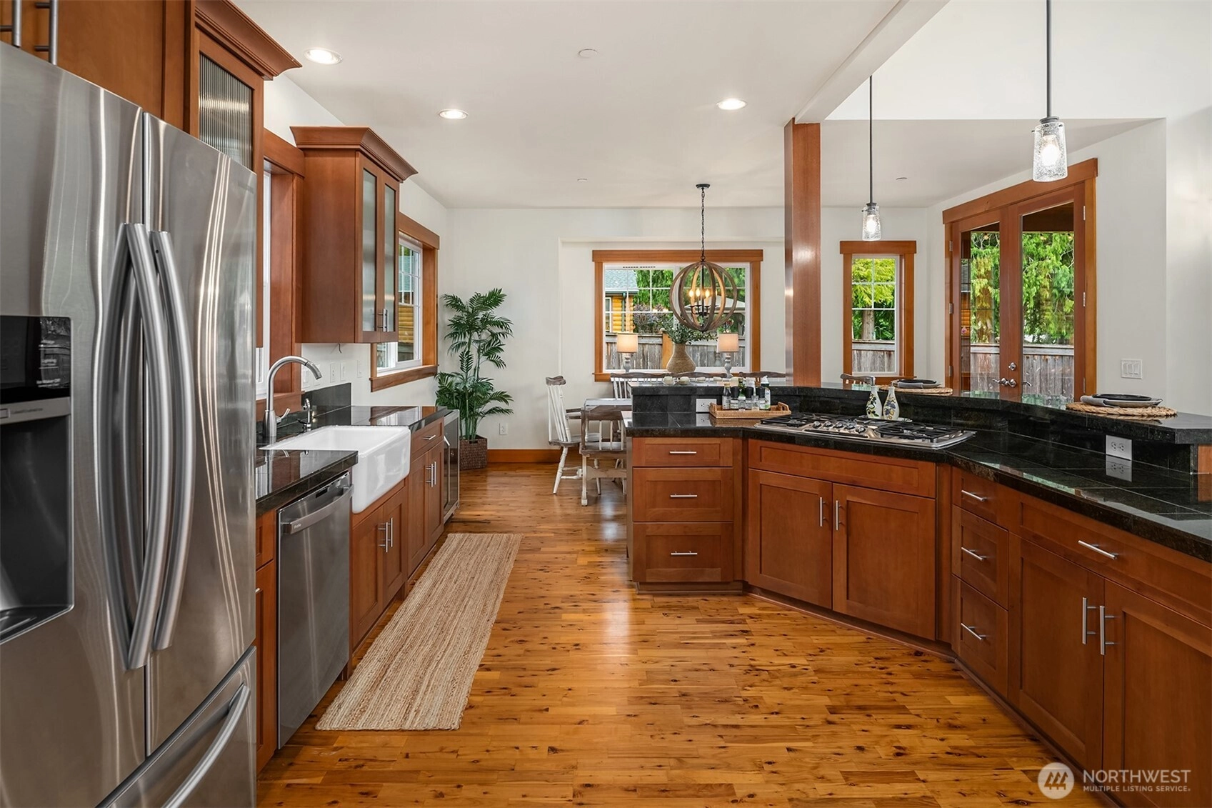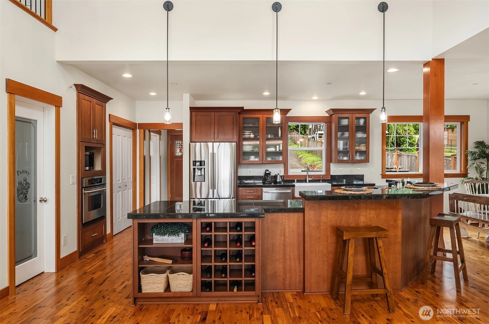 Welcome to Lake Joy and your waterfront dream home! Enjoy 75' of no-bank lakefront with dock. Exceptional Craftsman style custom Rambler boasting an expansive open-concept great room with stunning Australian Cypress floors, soaring open-beam ceilings and clerestory windows creating an atmosphere bathed in natural light. Panoramic lake and mountain views from most rooms. Living room w/double-sided river rock fireplace serving both the interior & exterior spaces. Chef's kitchen with large island, eating bar, stainless appliances & walk-in pantry. Roomy dining area with French doors to the covered deck. Large crowsnest loft to admire the view. Massive 1520 SF 4-car garage with dedicated RV stall and 1,000 SF unfinished Bonus Room above.
