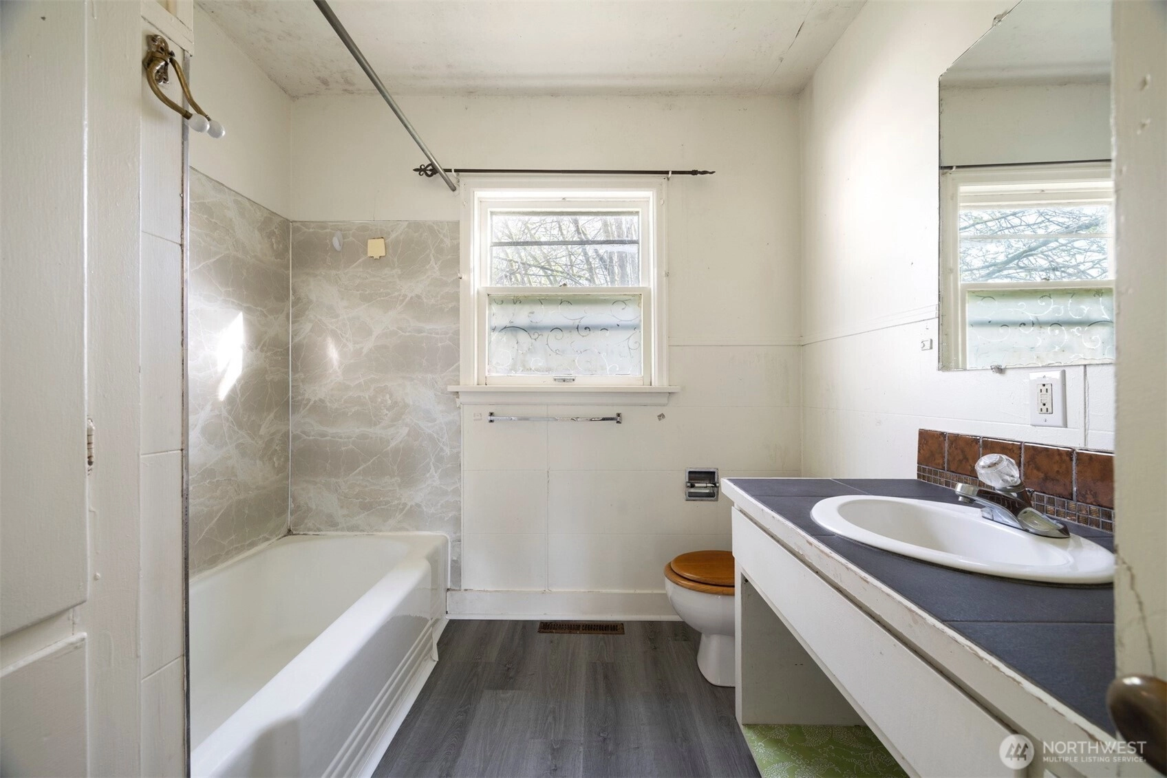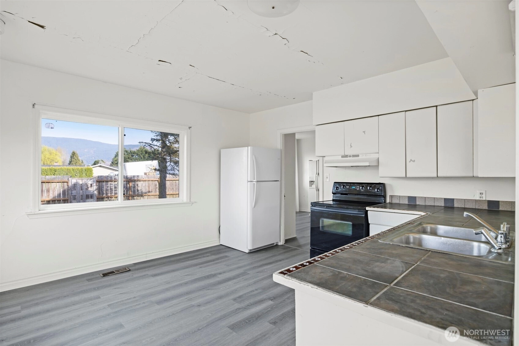 This large, Everson home built in 1950 as a manse (pastor's housing) for the adjacent church. Now on its own 13k+ sq.ft. lot, this home is in a central, edge-of-downtown location and is ready for modernizing to fit your desires and tastes. The main floor features a large kitchen & family rom, one bedroom, a den or flex room, and a spacious side-entry room to offload your things as you enter. Upstairs are three bedrooms + a half-bathroom. The detatched two-car garage, fenced back yard, and off-street parking add to its value. Gas forced air plus a woodstove for heat. With a cosmetic remodel this home will make and excellent primary residence or add to your rental fleet. Inspection report available upon request.