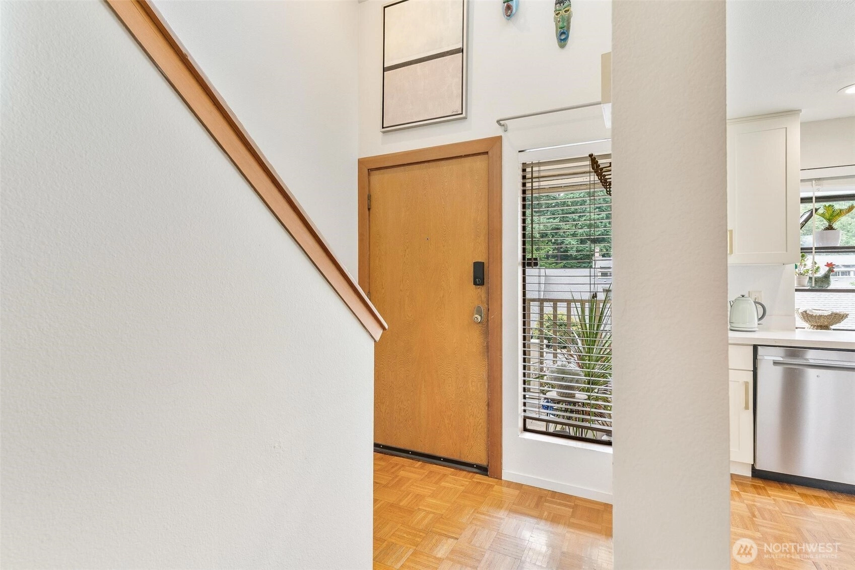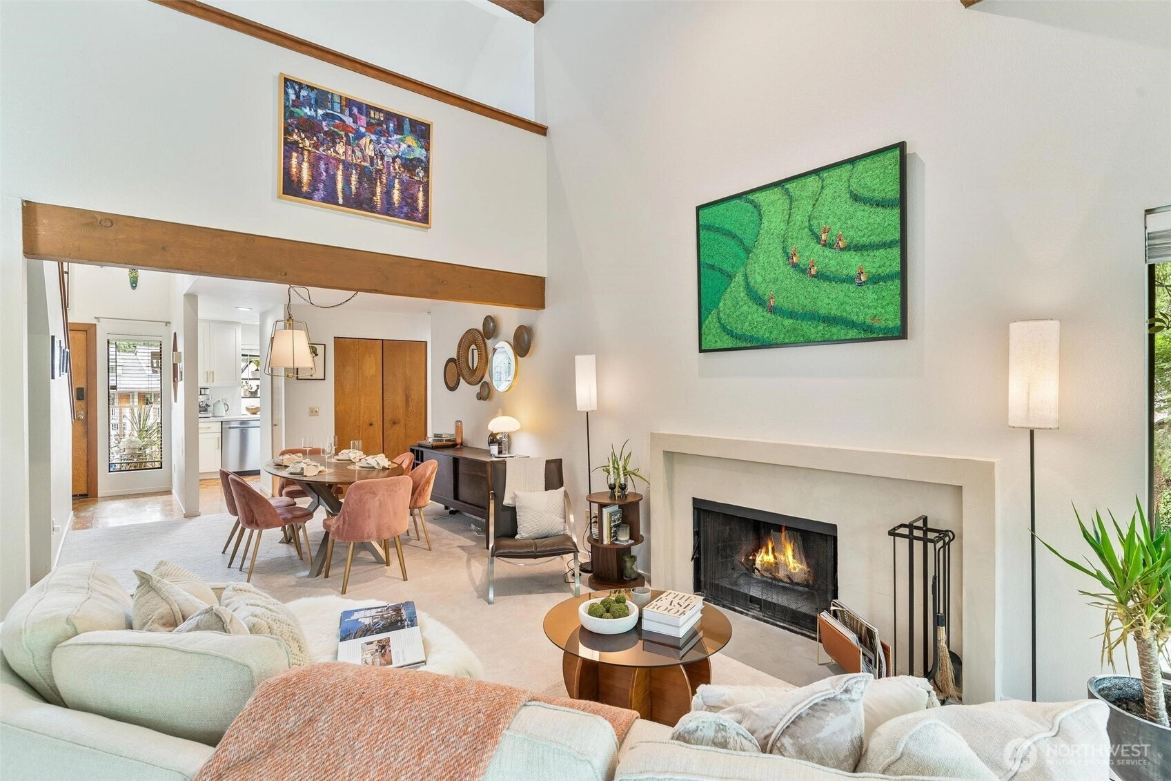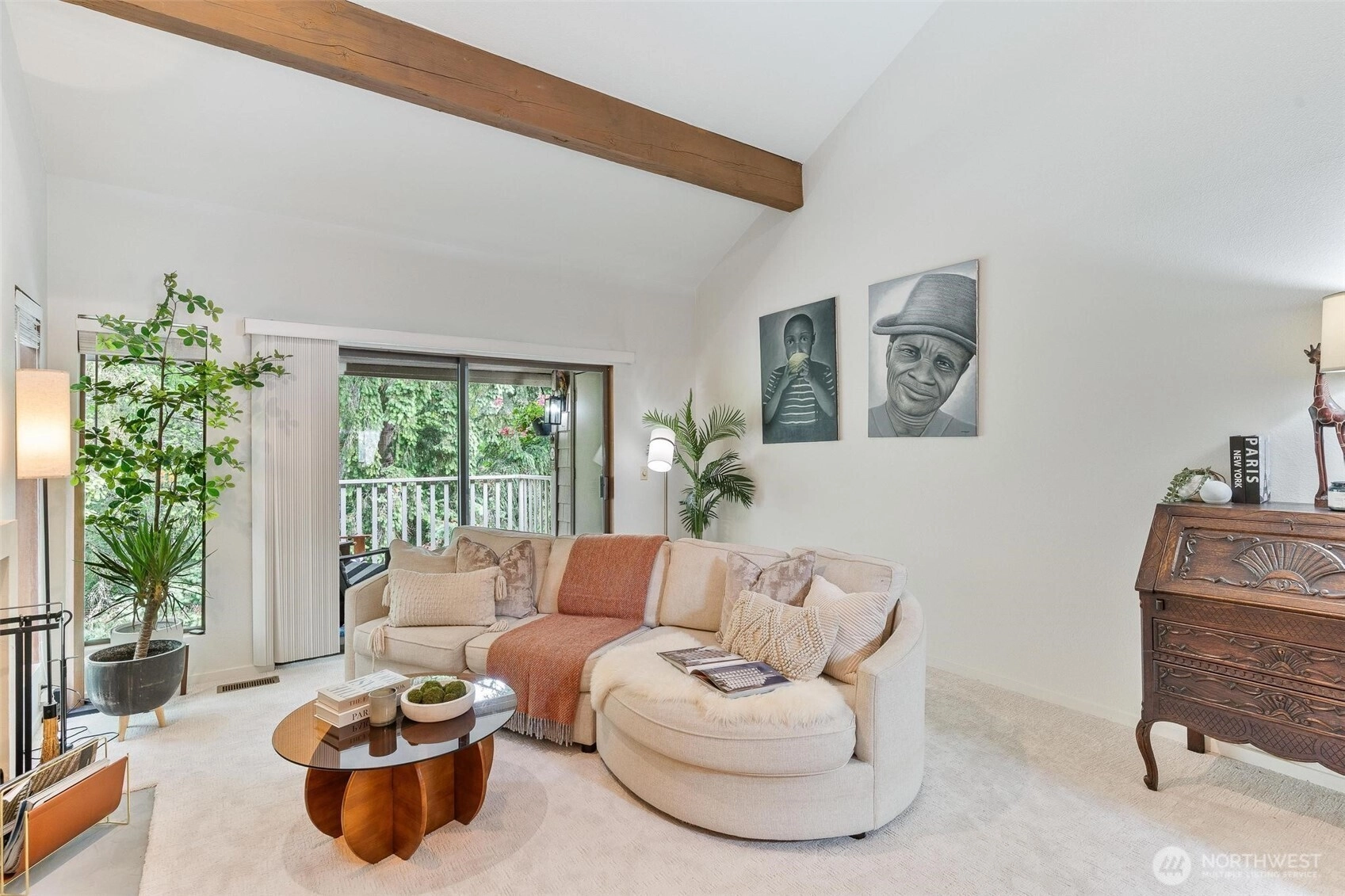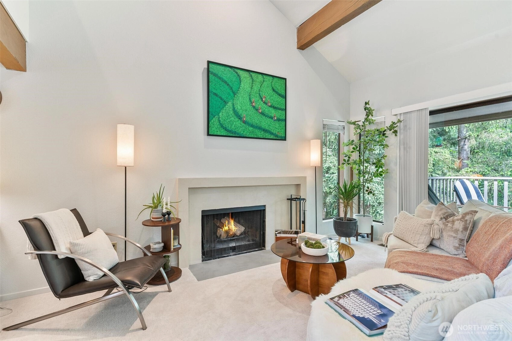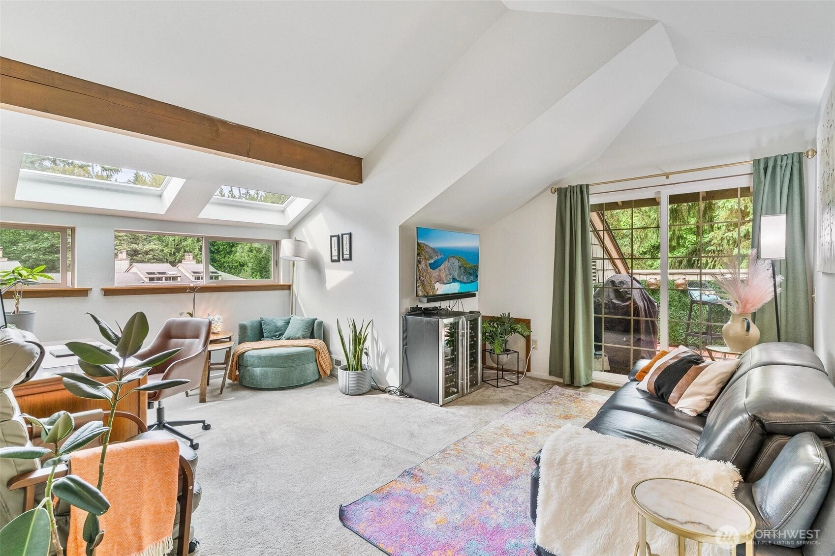 Top-floor end unit with private terrace—1 of only 3 in the complex. 2 beds, 1.5 bath on main, with a large loft upstairs. Vaulted ceilings in living room and updated with renovated kitchen, bathroom, & fireplace. New stove, microwave, and refrigerator (2023), plus new water heater (2024). Exceptional storage includes a large attic and 2 additional storage areas. 2 dedicated parking spots and abundant guest parking. HOA includes Water, Sewer, Garbage, Cable & Common Area Maintenance. No rental cap. Located minutes from 520, light rail, Google, Meta, Microsoft, and the 520 bike trail. Lake WA views, entry into the Eastside Rail Corridor Trail, Carillon Point and downtown Bellevue. A rare opportunity to live large in a prime location.