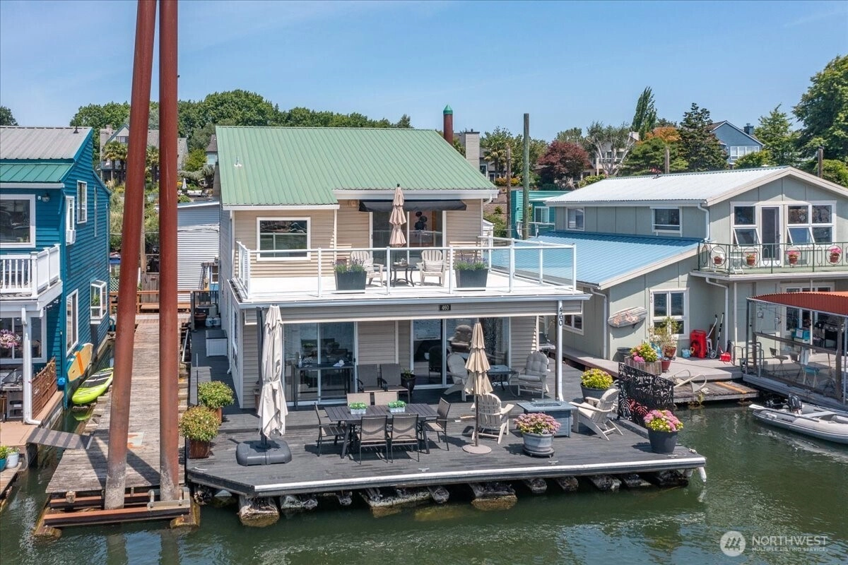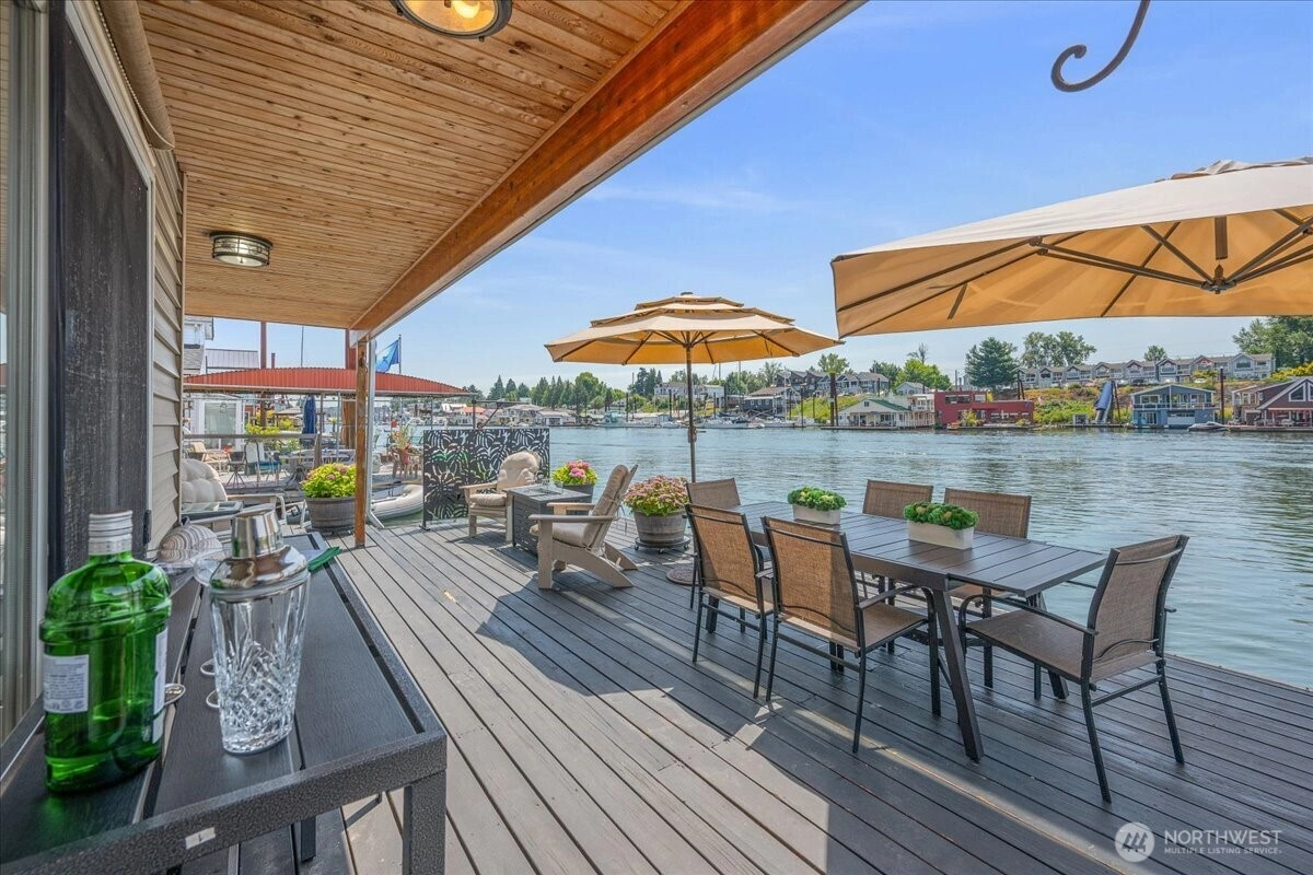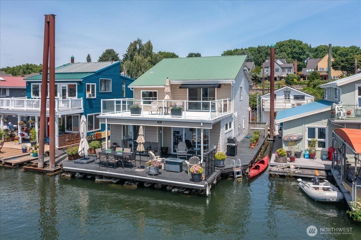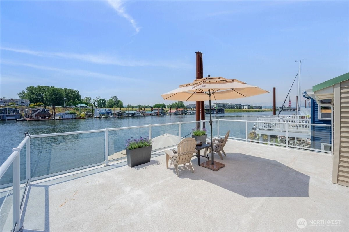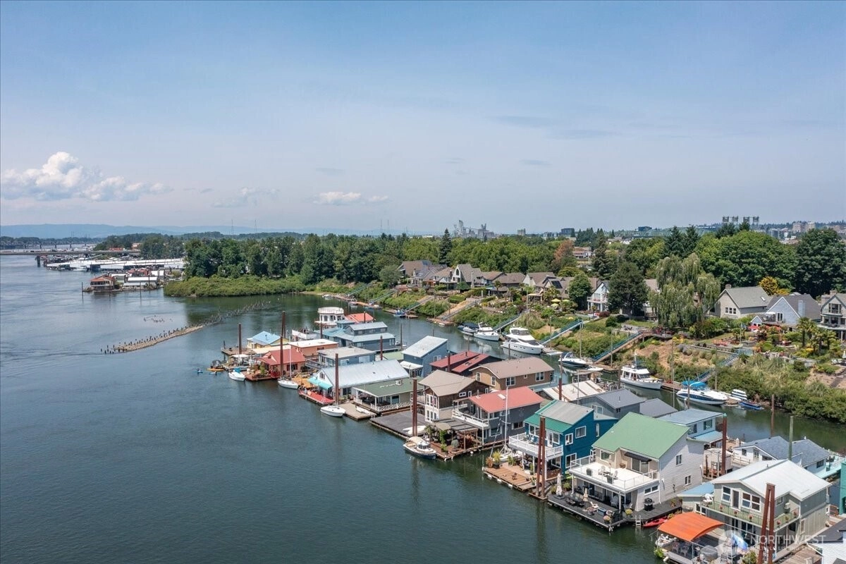 Dreamy Waterfront Living on North Portland Harbor.Beautifully updated floating home on an outside slip at Tomahawk Island Moorage featuring stunning river views&holiday magic as Christmas ships pass by.Inside: wide-plank LVP flooring,open-concept layout,bright kitchen w/ quartz countertops,stainless appliances,gas cooktop,double ovens,wine rack& ample storage.Cozy living room w/ gas fireplace opens to a spacious deck and float dock ideal for relaxing or entertaining.Expansive primary suite with river views, spa-like bath w/ walk-in closet& a second bedroom perfect for guests or a home office.The upper deck offers breathtaking 180° sunset views.Launch your kayak, moor your boat& enjoy al fresco evenings on the water.Minutes to downtown& PDX.
