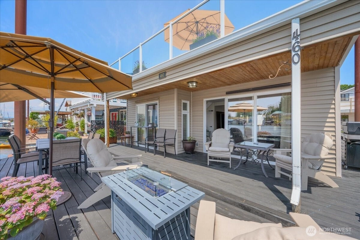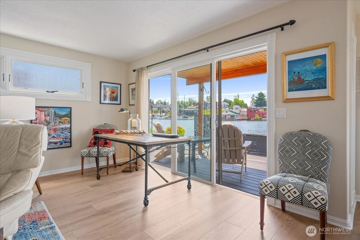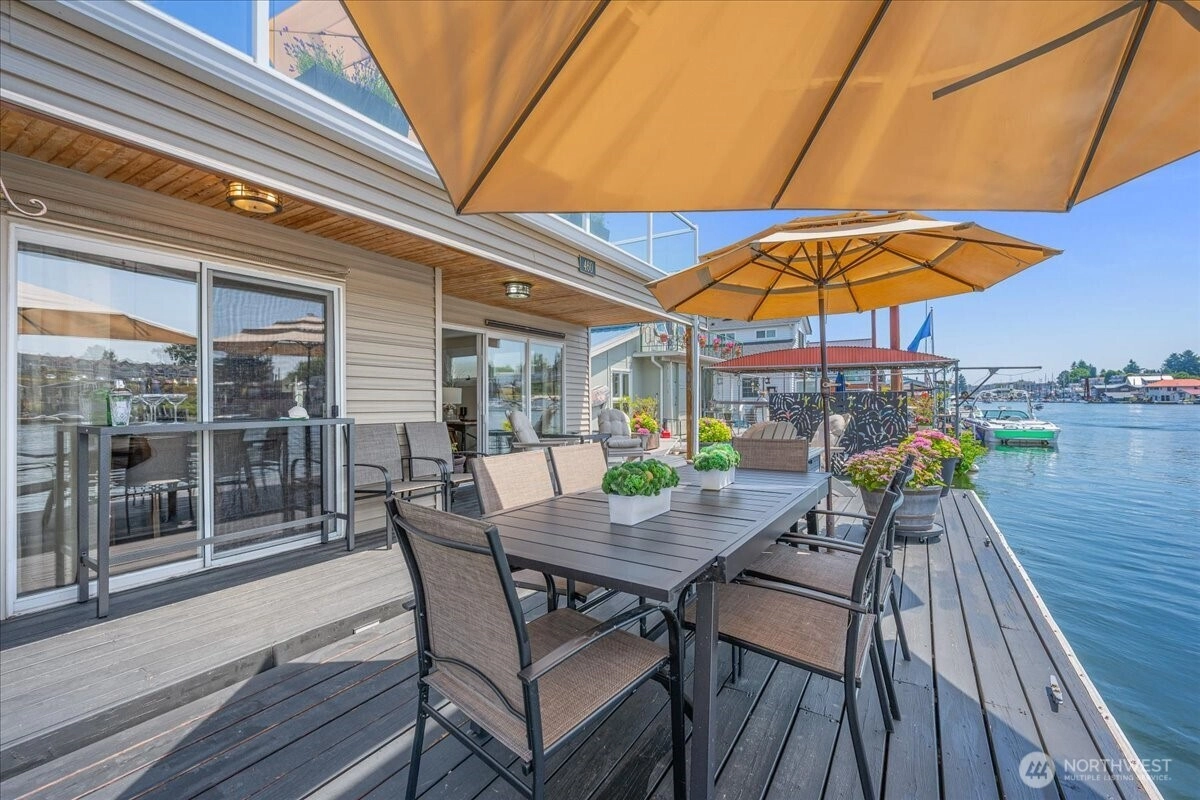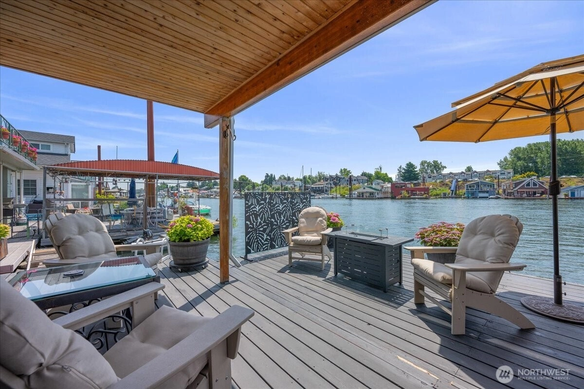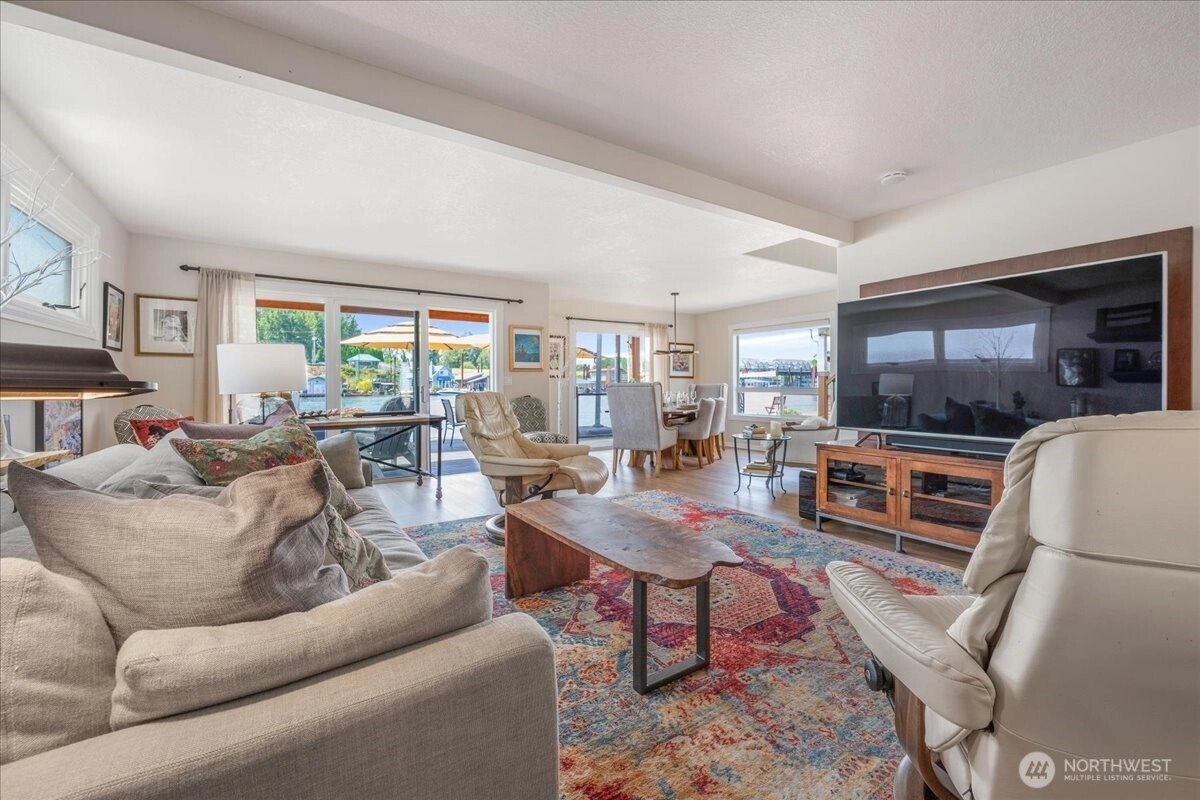 Dreamy Waterfront Living on North Portland Harbor.Beautifully updated floating home on an outside slip at Tomahawk Island Moorage featuring stunning river views&holiday magic as Christmas ships pass by.Inside: wide-plank LVP flooring,open-concept layout,bright kitchen w/ quartz countertops,stainless appliances,gas cooktop,double ovens,wine rack& ample storage.Cozy living room w/ gas fireplace opens to a spacious deck and float dock ideal for relaxing or entertaining.Expansive primary suite with river views, spa-like bath w/ walk-in closet& a second bedroom perfect for guests or a home office.The upper deck offers breathtaking 180° sunset views.Launch your kayak, moor your boat& enjoy al fresco evenings on the water.Minutes to downtown& PDX.