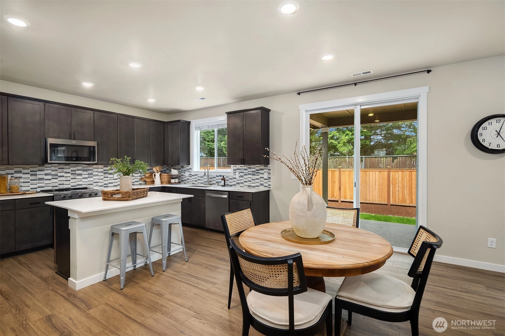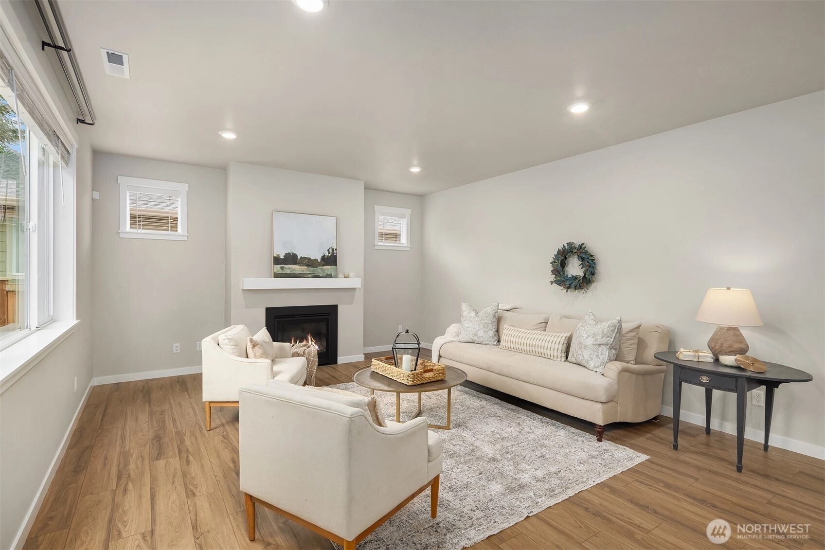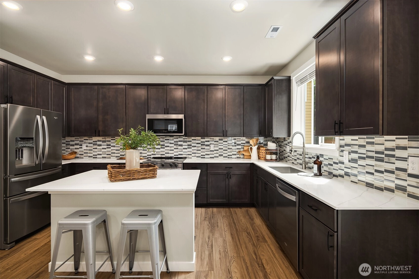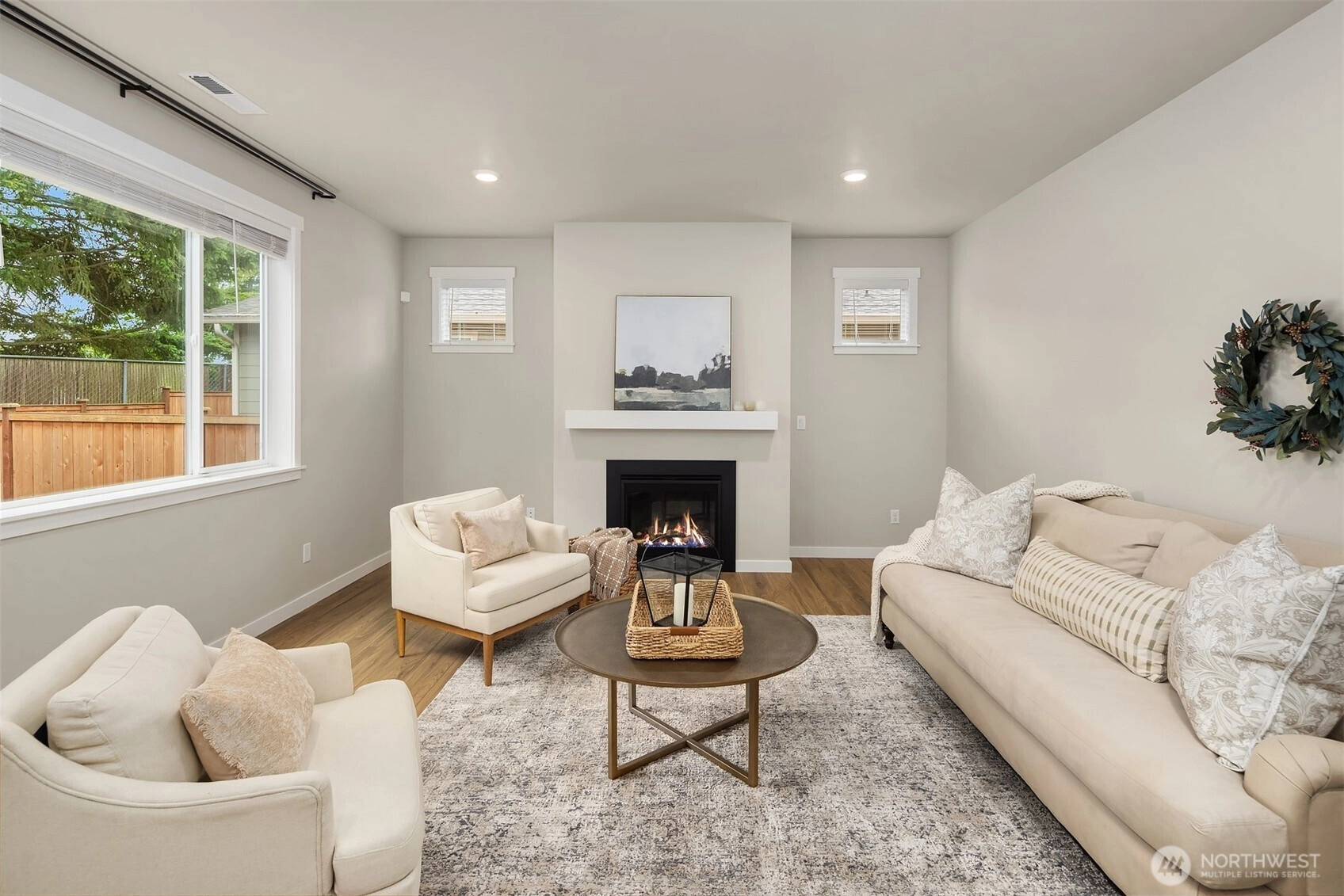 Better than new with central AC, blinds throughout & move in ready. Set back on private lot, in the desirable Montclaire neighborhood, showcasing quality upgrades throughout. The main level offers guest room and full bath. Upgraded laminate flooring & cozy gas fireplace. The gourmet kitchen features lovely wood cabinetry, quartz countertops and premium appliances. Upstairs, you'll find three additional bedrooms bonus room and 2 full bath. Spacious garage with EV charging port. Located just minutes from Kent Station, the Sounder Train, and with convenient access to Seattle and Bellevue. Pre-inspected for buyer’s peace of mind.