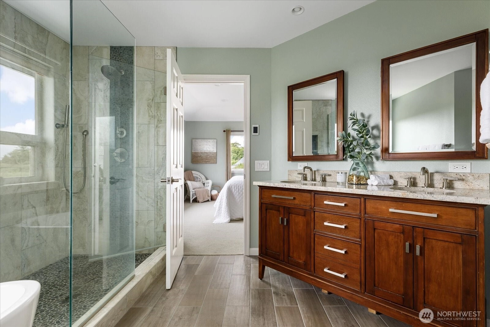 Thoughtfully laid out 3-bed, 2.5-bath home w/office & bonus room in private setting infused with nature. Gorgeous new kitchen with quartz counters and stainless steel appliances. Designed for comfort this home offers an airy open layout, sleek LVP flooring and spa-like primary suite. Living the island lifestyle in Admirals cove where you can enjoy sunny days at the pool, beachcombing along the shore & peaceful strolls on the nearby trails. It's easy to be charmed by this home with it's beautiful updates, floorpan & privacy. Enjoy breathtaking sunsets from the expansive deck overlooking sweeping water views and the Olympic mountains. Surrounded by nature, the gentle sounds of bridsong create a peaceful retreat right in your backyard.