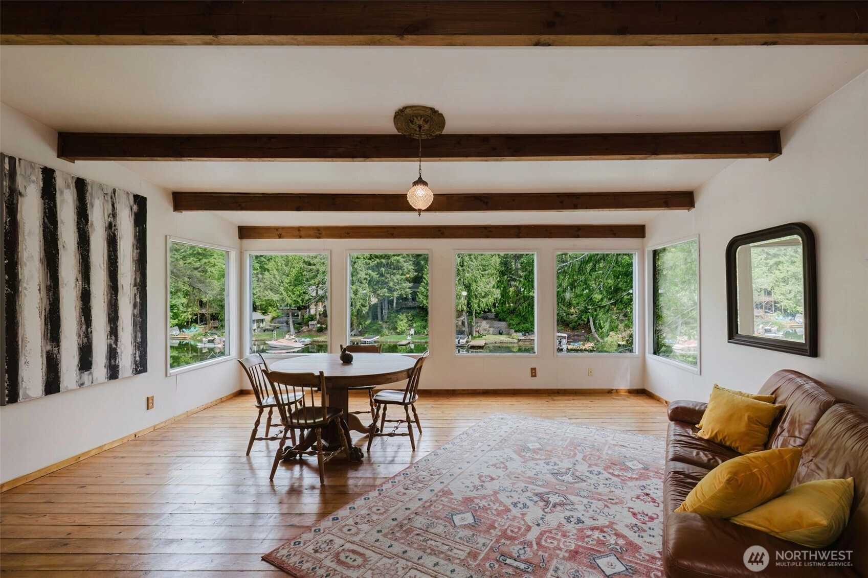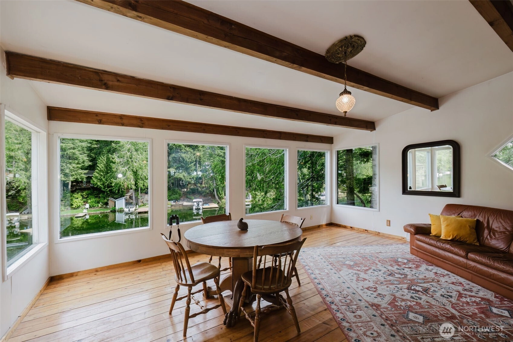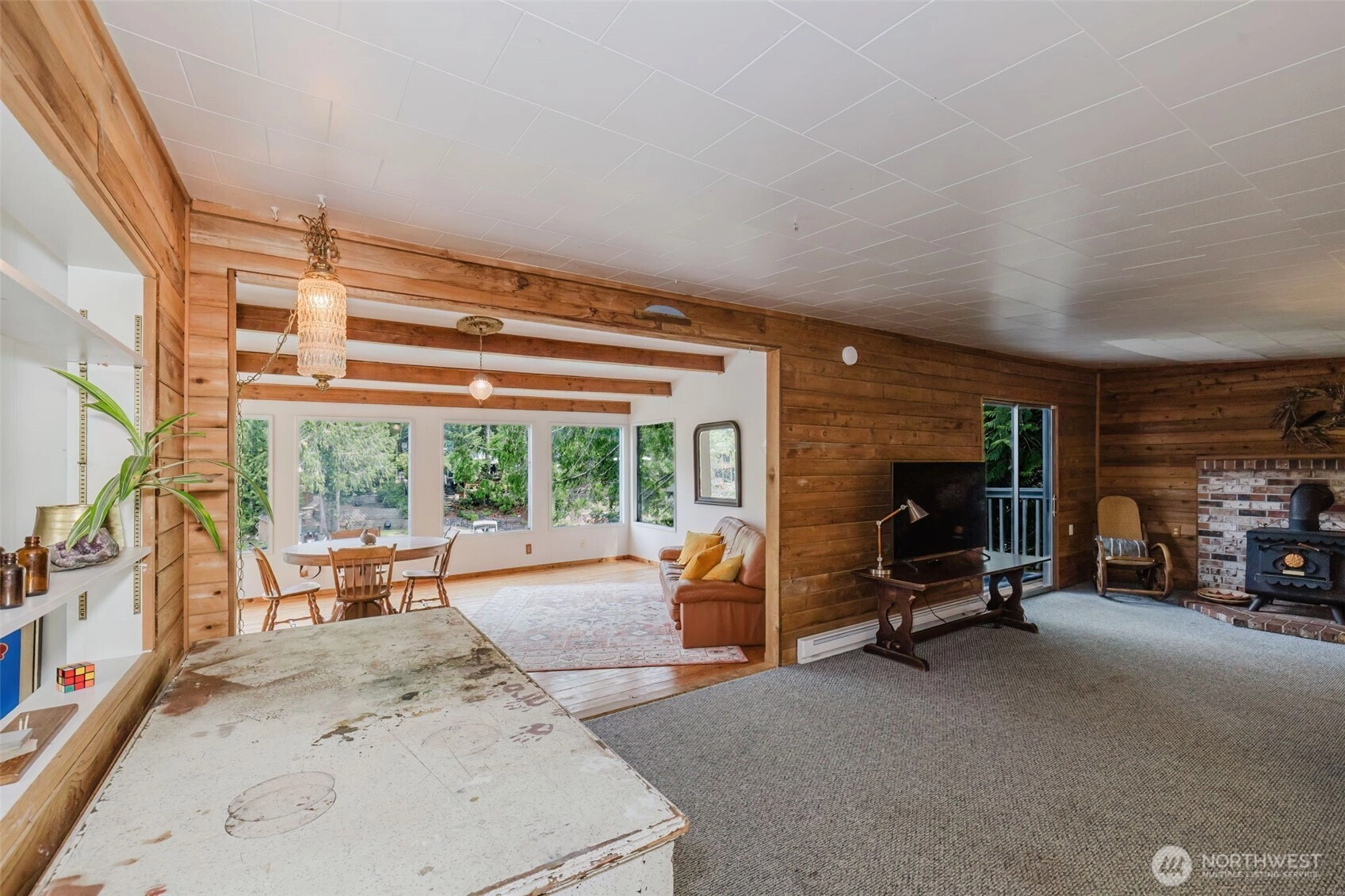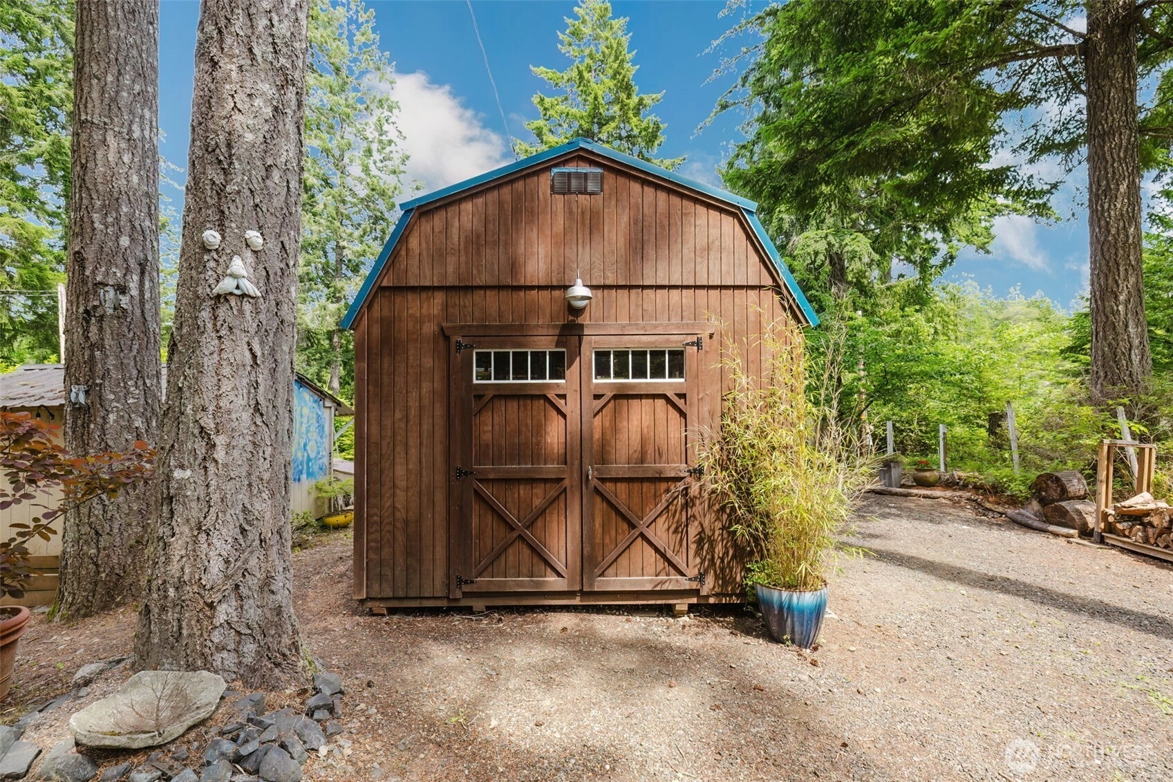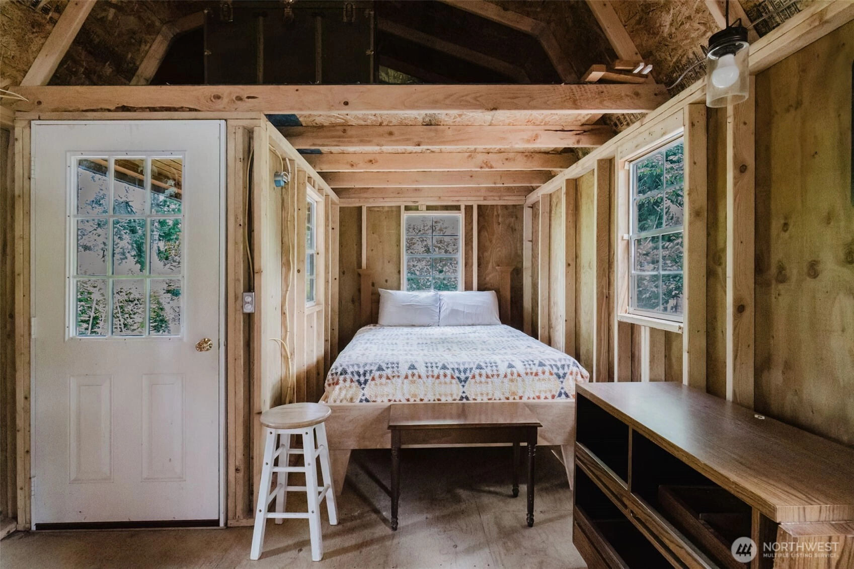Enjoy lake life on beautiful Haven Lake w/ 62' of lake front property. This sweet lake house has amazing views from large picture windows. Upstairs has a large living area w/ a wood stove & full kitchen w/ lots of storage. Large bedroom upstairs w/ full bathroom. Sliding glass doors lead to a porch, perfect for your morning coffee. Downstairs has a full bathroom. A large room w/ more beautiful lake views & built ins. You will find a washer/dryer & tons of storage. Large downstairs bedroom w/ sliding glass doors for lake access & wood stove. Property has ample outdoor space w/ a private dock. Grounds include a green house, & barn shed w/ electricity being used as a sleeping space. This property has it all! Check it out and make it your own.