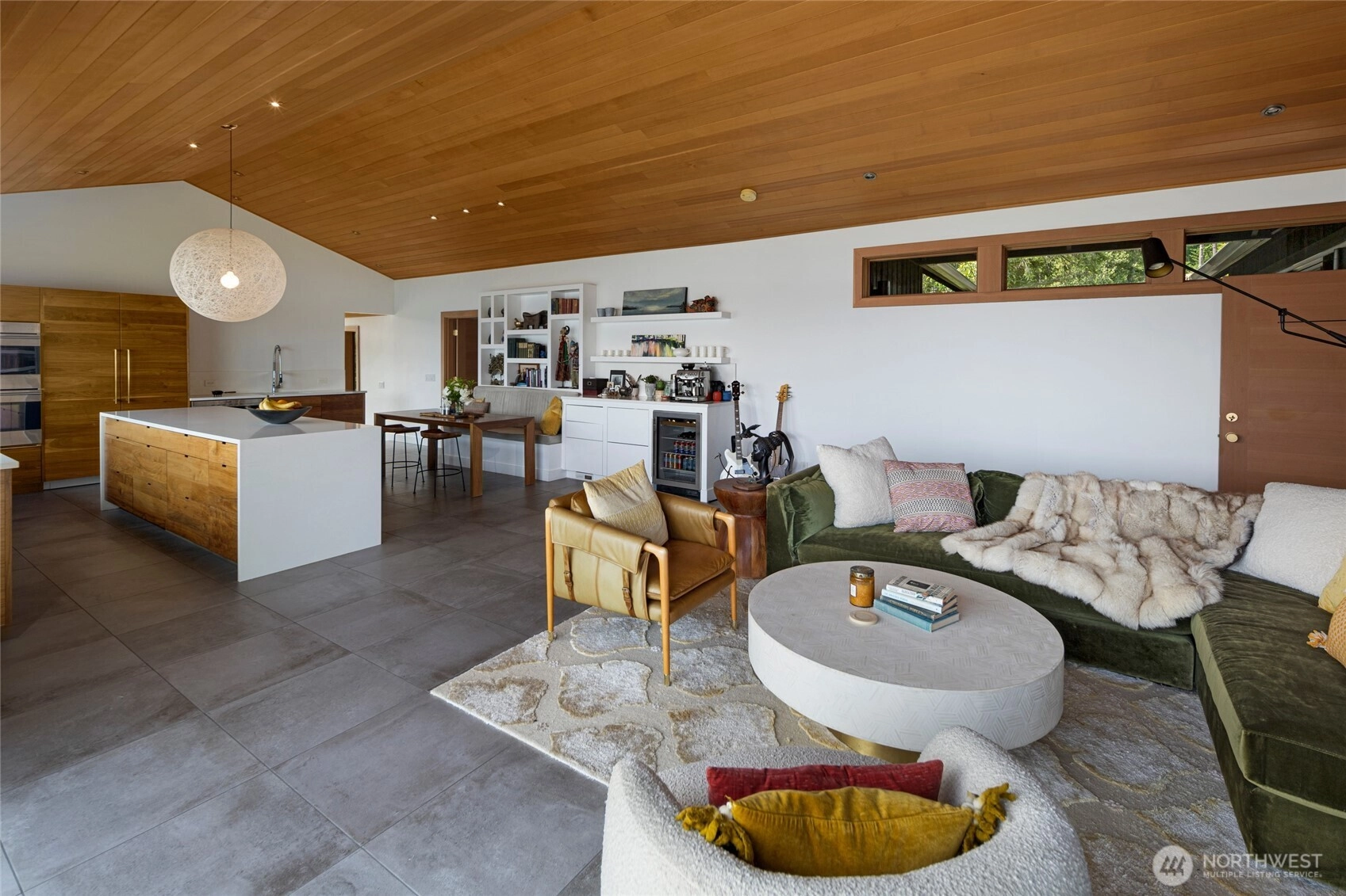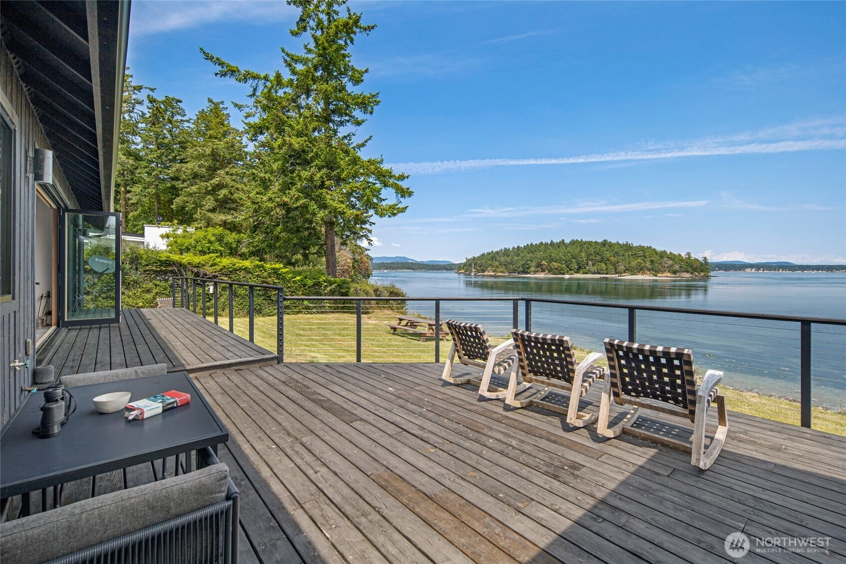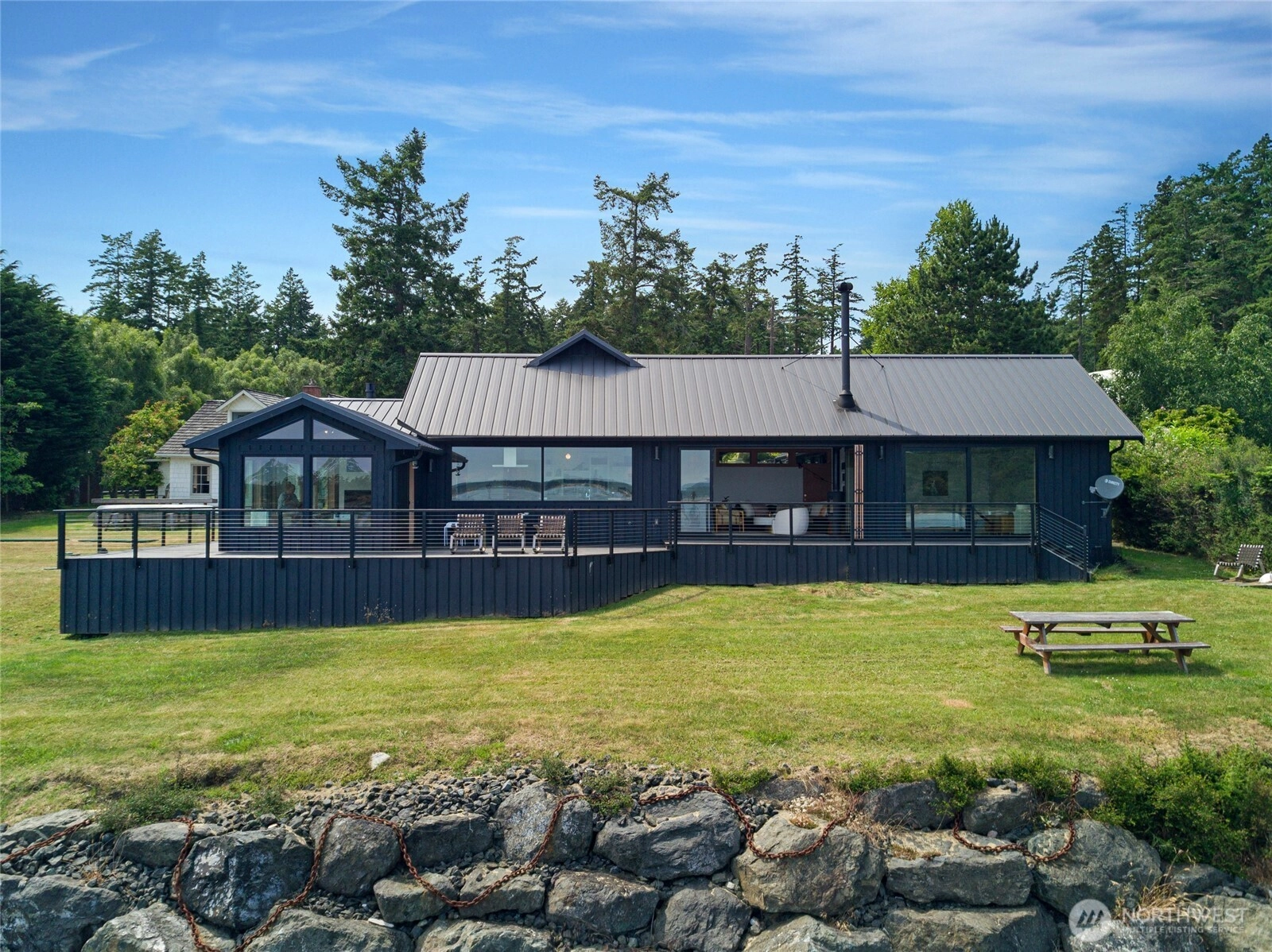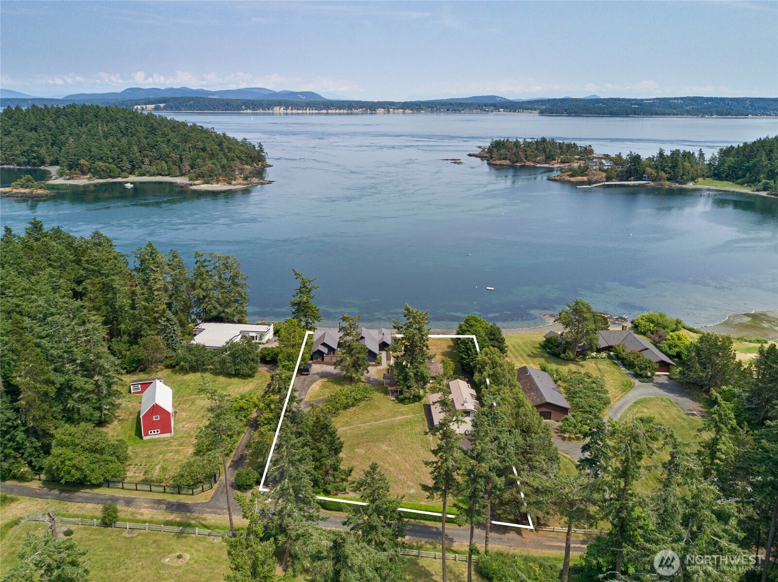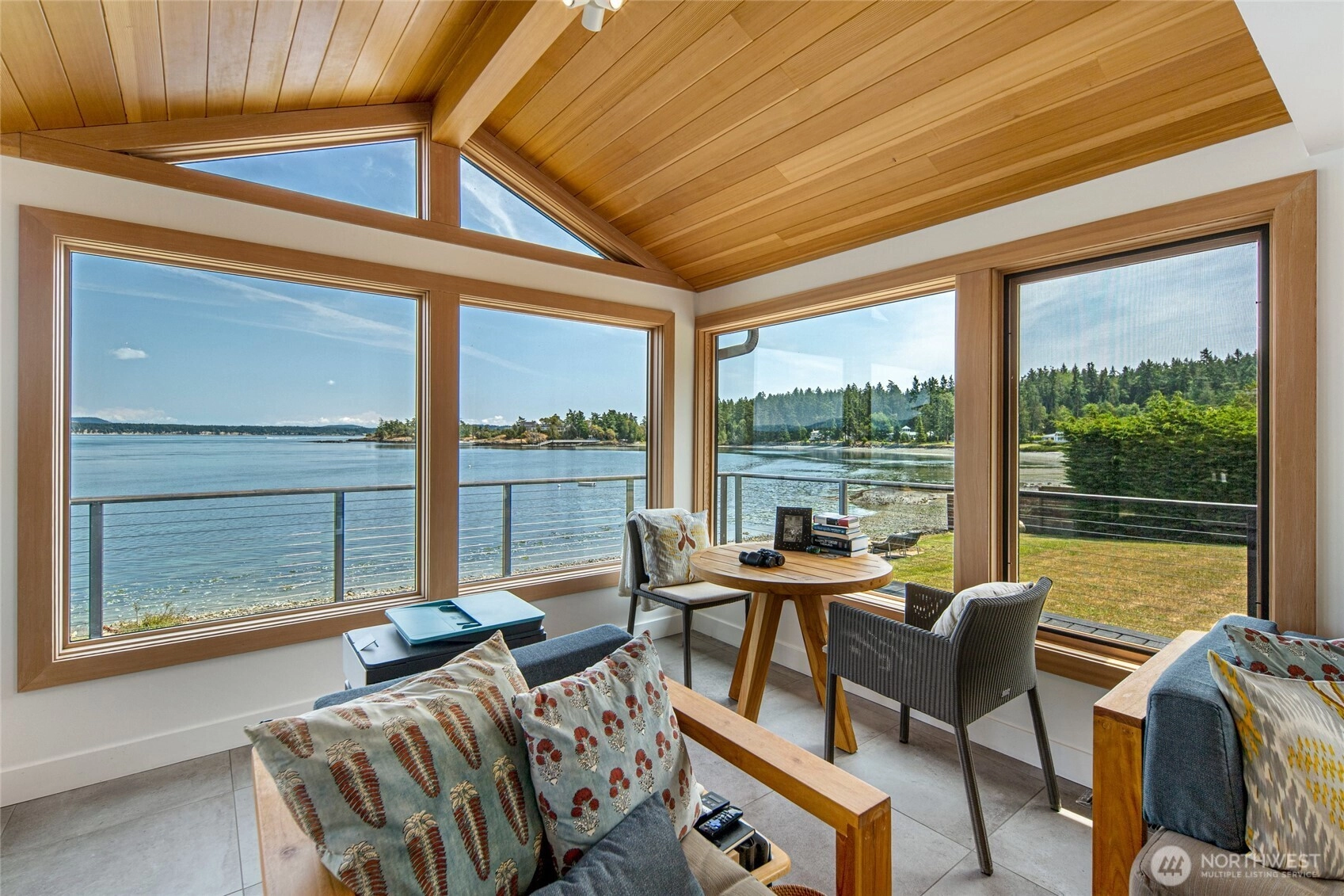 Timeless designer home nestled along the coastline, offering the serenity and diversity of the Salish Sea. Set on 1.17 acres with 150ft of low bank shoreline, this contemporary home features an open floor plan with floor-to-ceiling windows providing abundant natural light and majestic water and island views. The sunroom beckons to relax on quiet mornings. The kitchen with premium appliances and walnut cabinetry is a chef's delight, perfect to entertain. A barn-style garage and shop with a 1 bedroom apartment above provides a private space for guests. A historic 1930 farmhouse, mature fruit trees and thoughtfully maintained grounds complete this extraordinary property. Truly a rare blend of natural beauty, historic charm, and modern luxury.