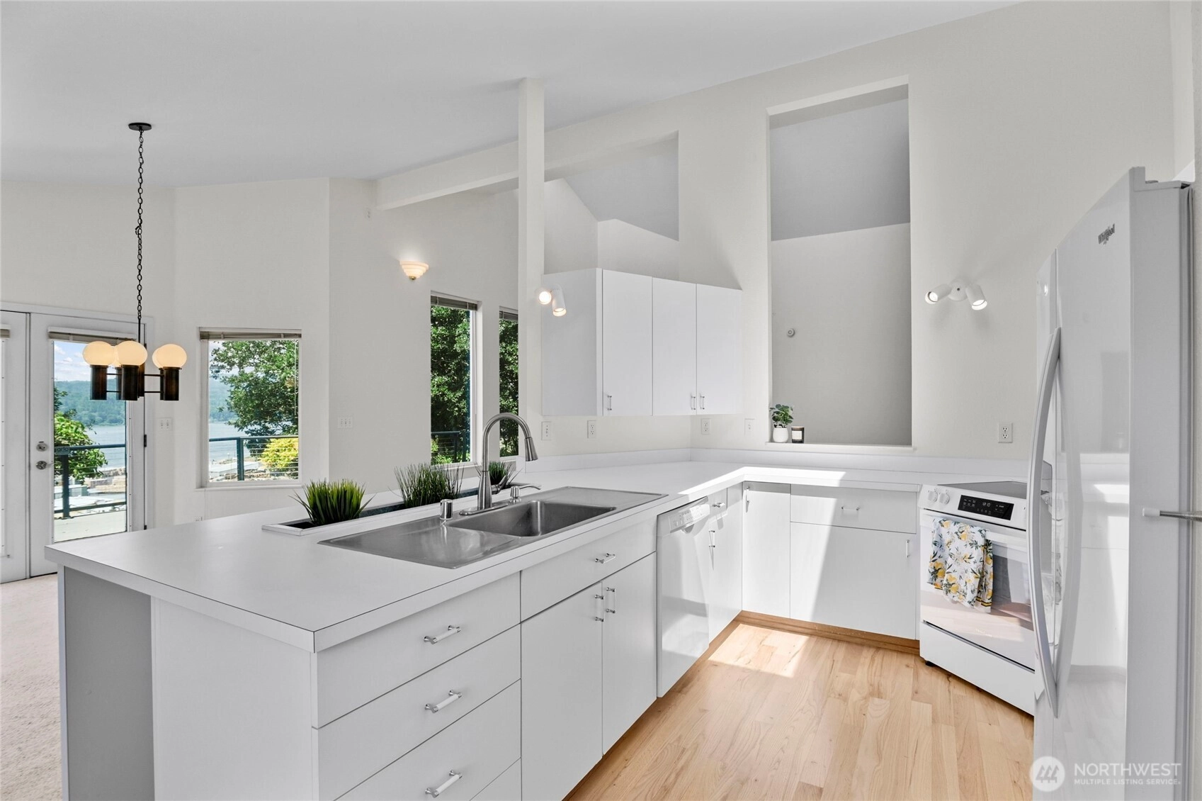 The home features a spacious layout with abundant natural light, complemented by sleek cabinetry and breathtaking views! The property's scenic views and lush greenery create a serene and secluded retreat. The kitchen seamlessly integrates with the living areas. A cozy fireplace feature adds a warm ambiance to the living space, while the scenic outdoor views and spacious deck provide ample opportunities for relaxation and enjoyment of the property's scenic water view! The home has been well-maintained, with a brand new roof, new fiber cement siding, and a newer HVAC system, ensuring comfort and energy efficiency. Conveniently located in town, the home is just minutes away from the freeway, offering easy access to the surrounding area.
