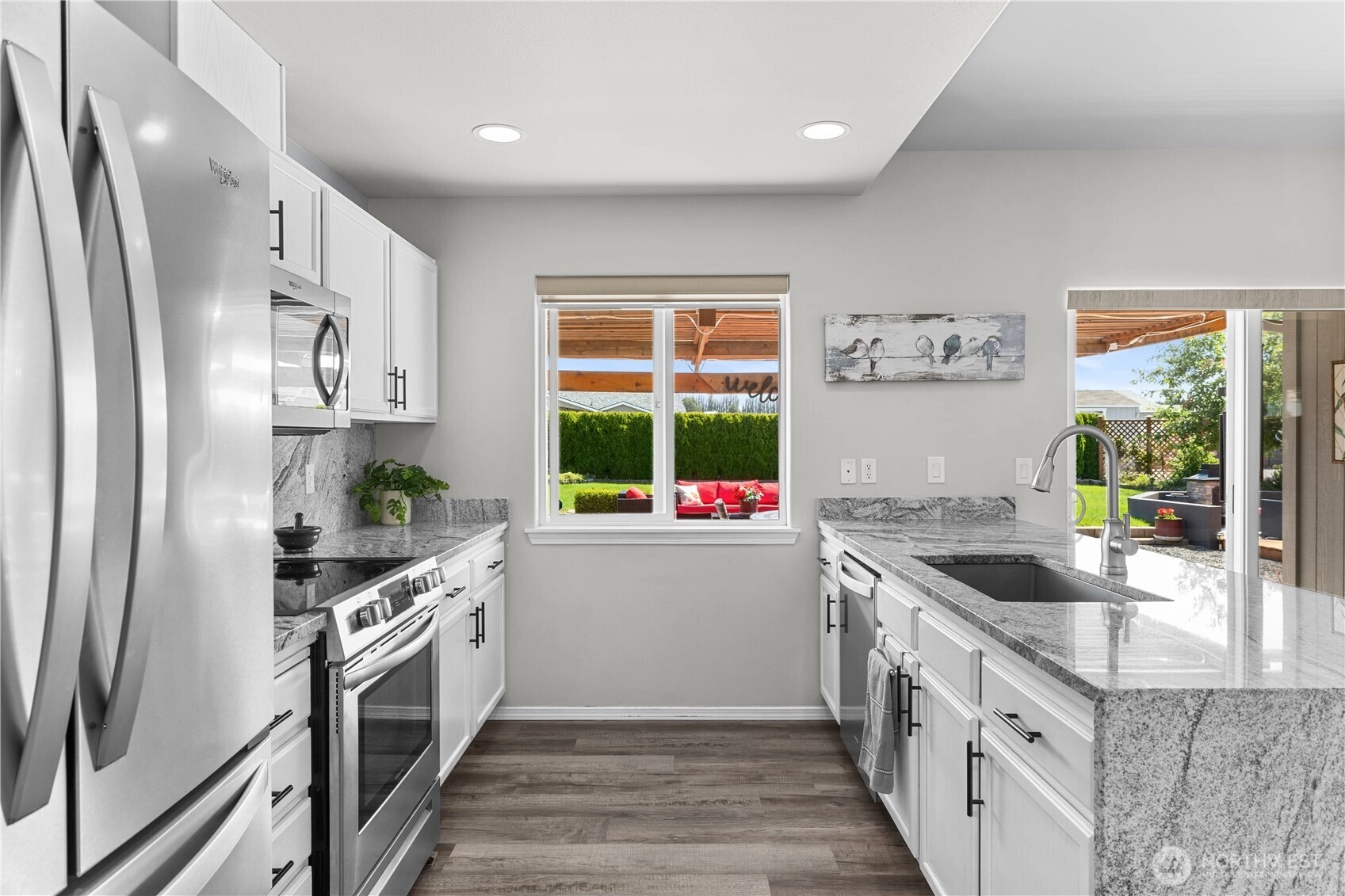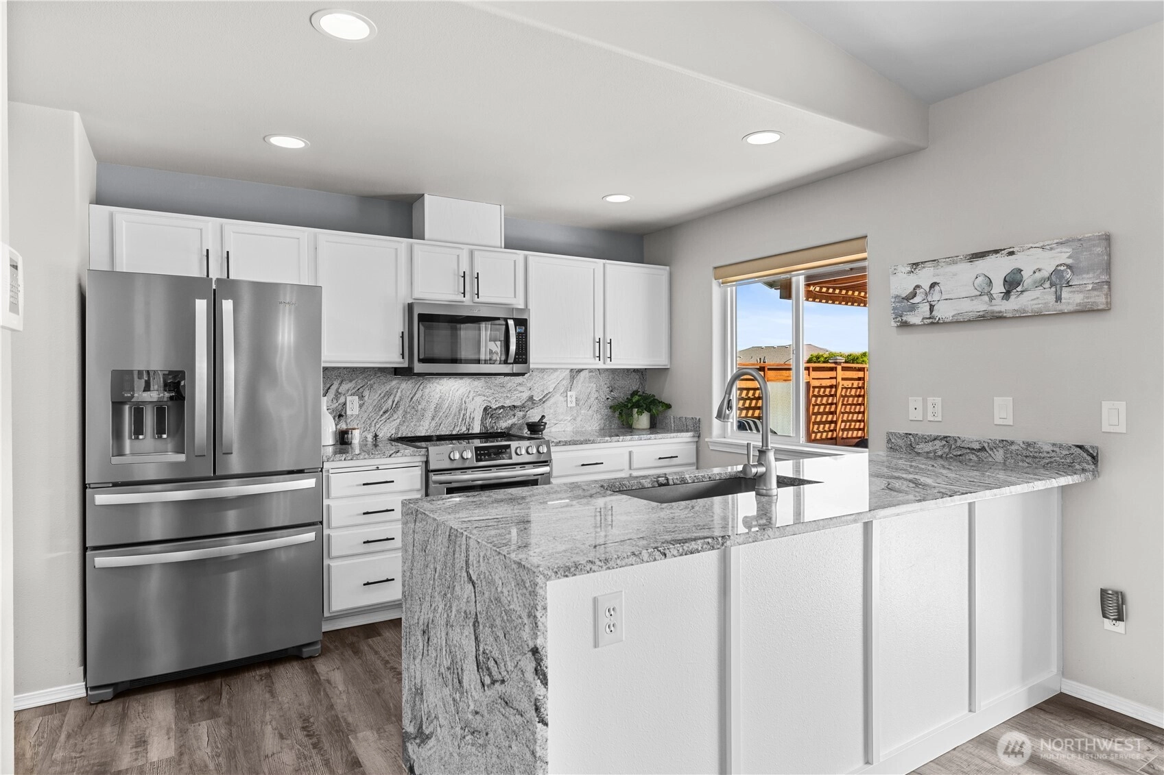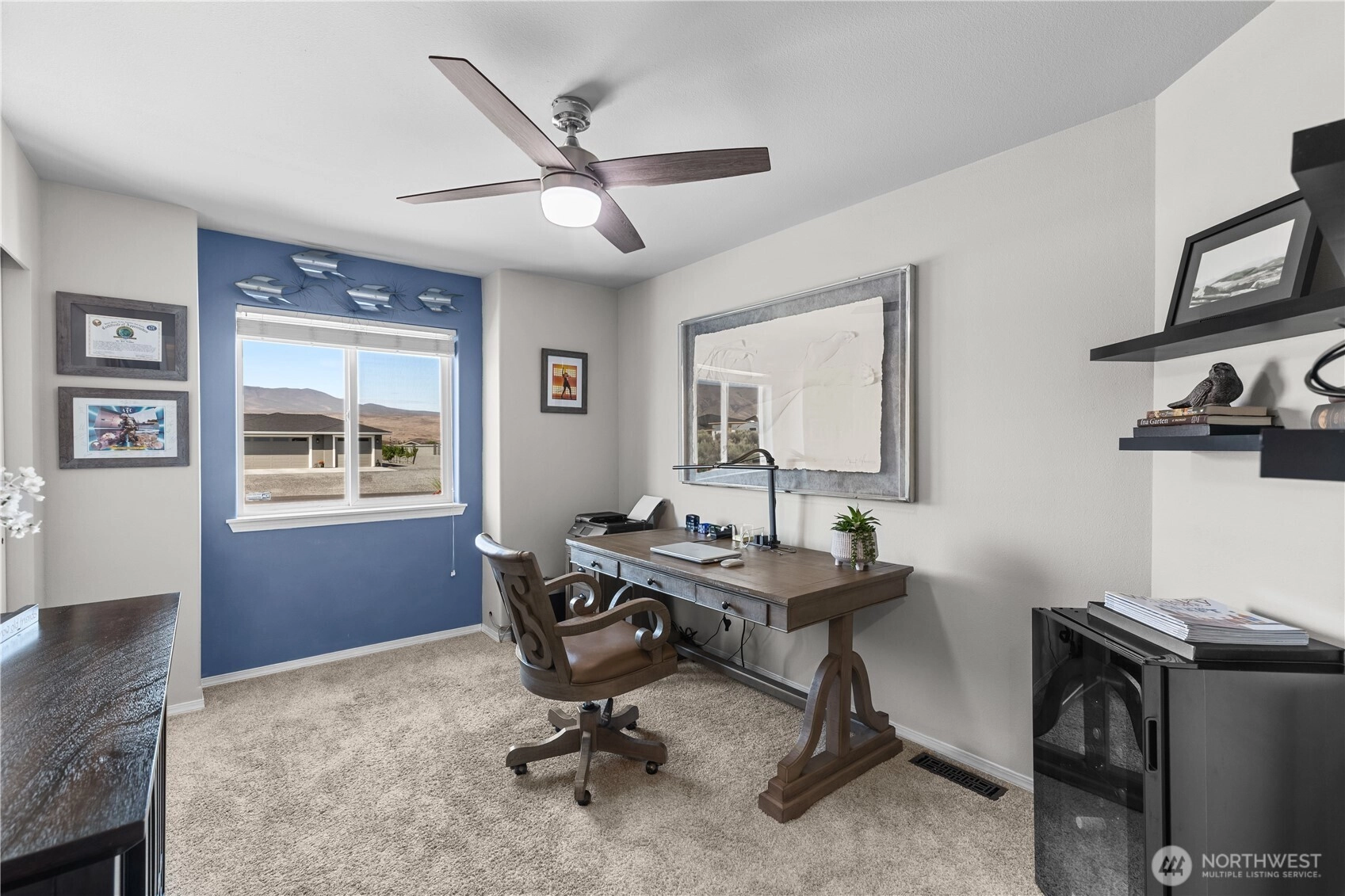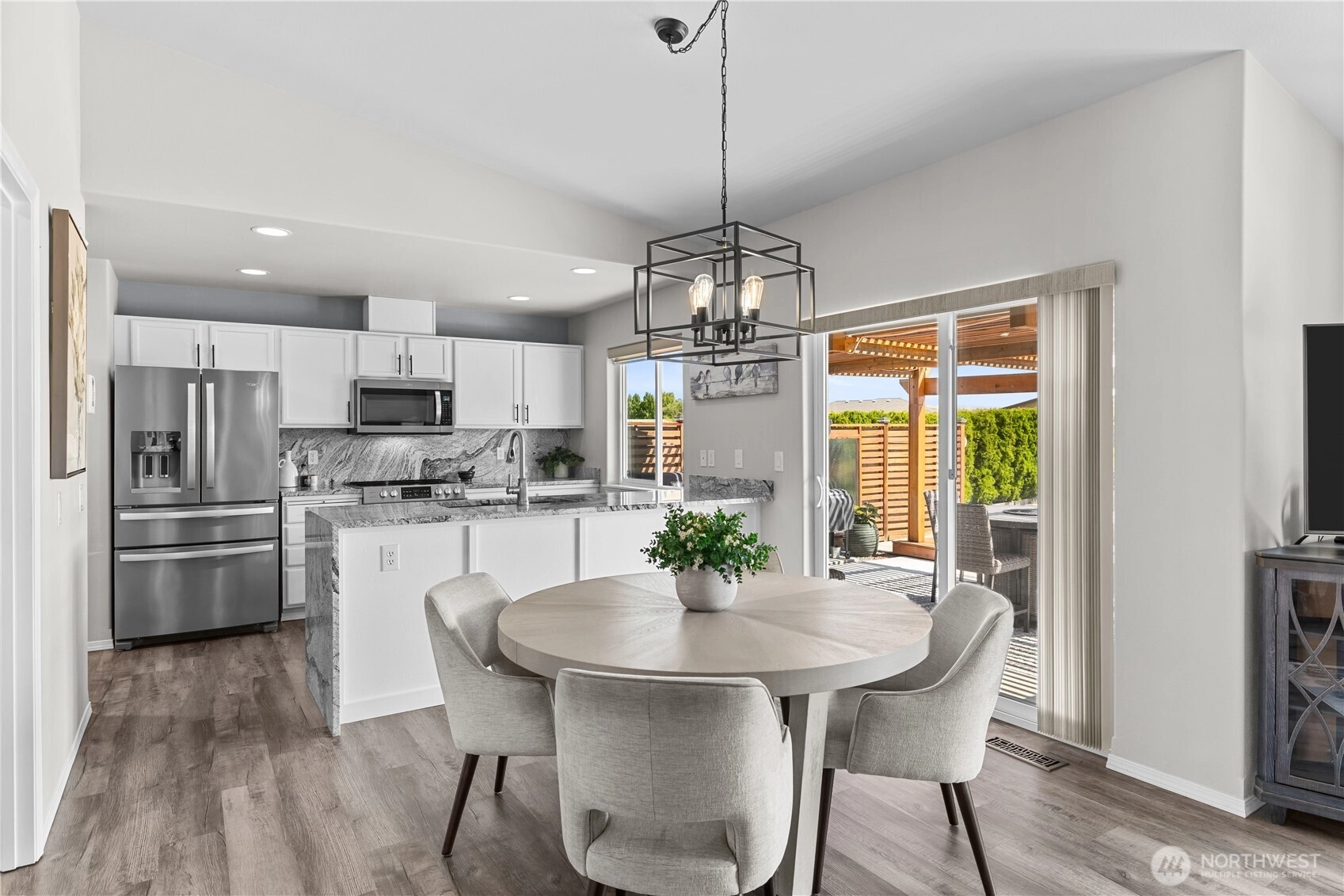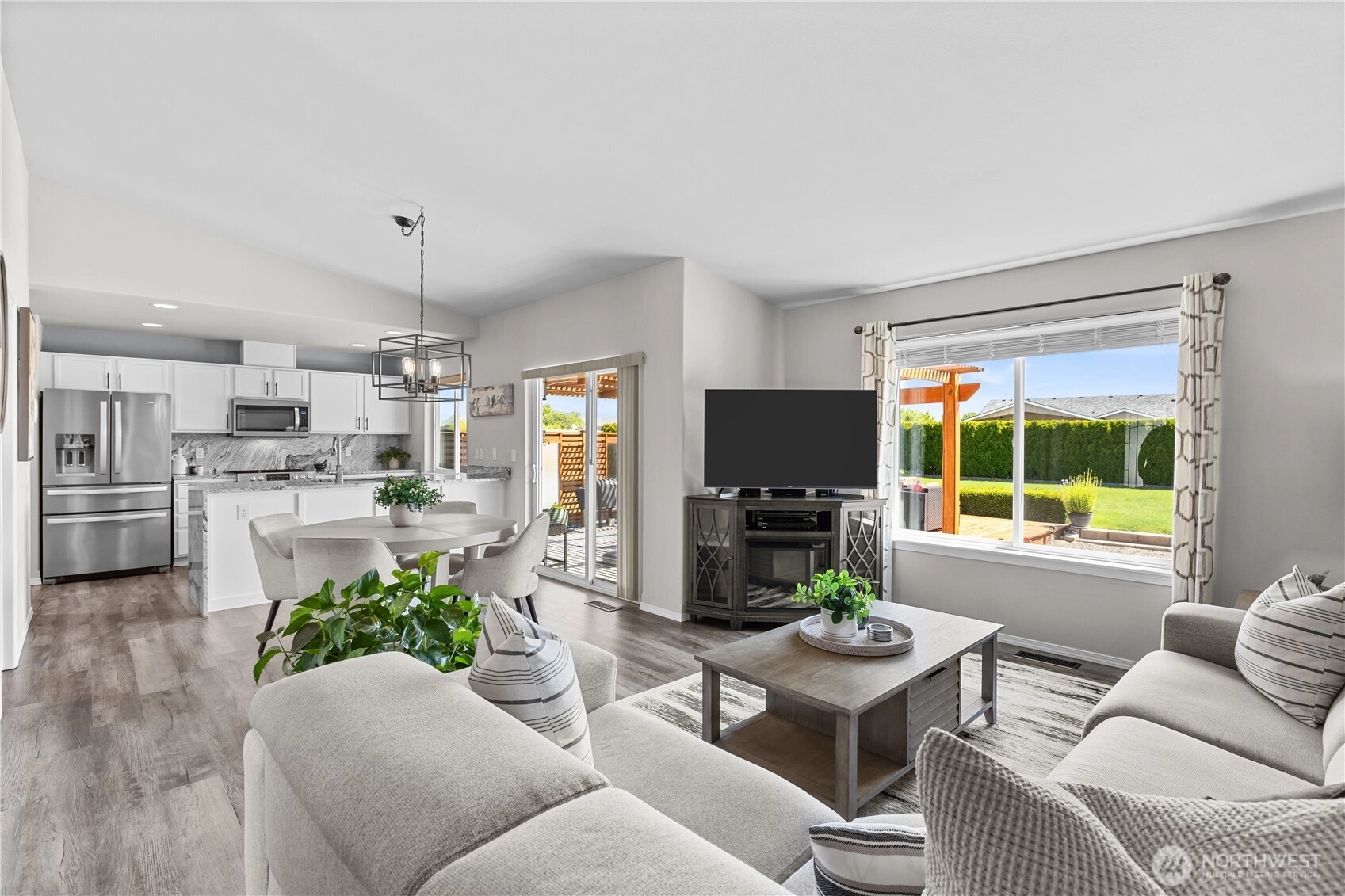 Live where every day feels like a getaway! This updated 3-bed, 2-bath home in Desert Aire is set on a spacious .50 lot with breathtaking views of the golf course, mountains, and Columbia River. Inside, the open-concept layout features vaulted ceilings, stylish flooring, and a modern kitchen. The primary suite offers a walk-in closet and private bath for your comfort. Step outside to a fully fenced backyard oasis—complete with expansive decking, multiple seating areas, a hot tub, privacy fencing, garden beds, RV parking & hookups, and several outbuildings. Enjoy access to community amenities including a boat launch, airfield, clubhouse, golf course, parks, community pool & trails. Ideal as a full-time home or a relaxing vacation retreat!