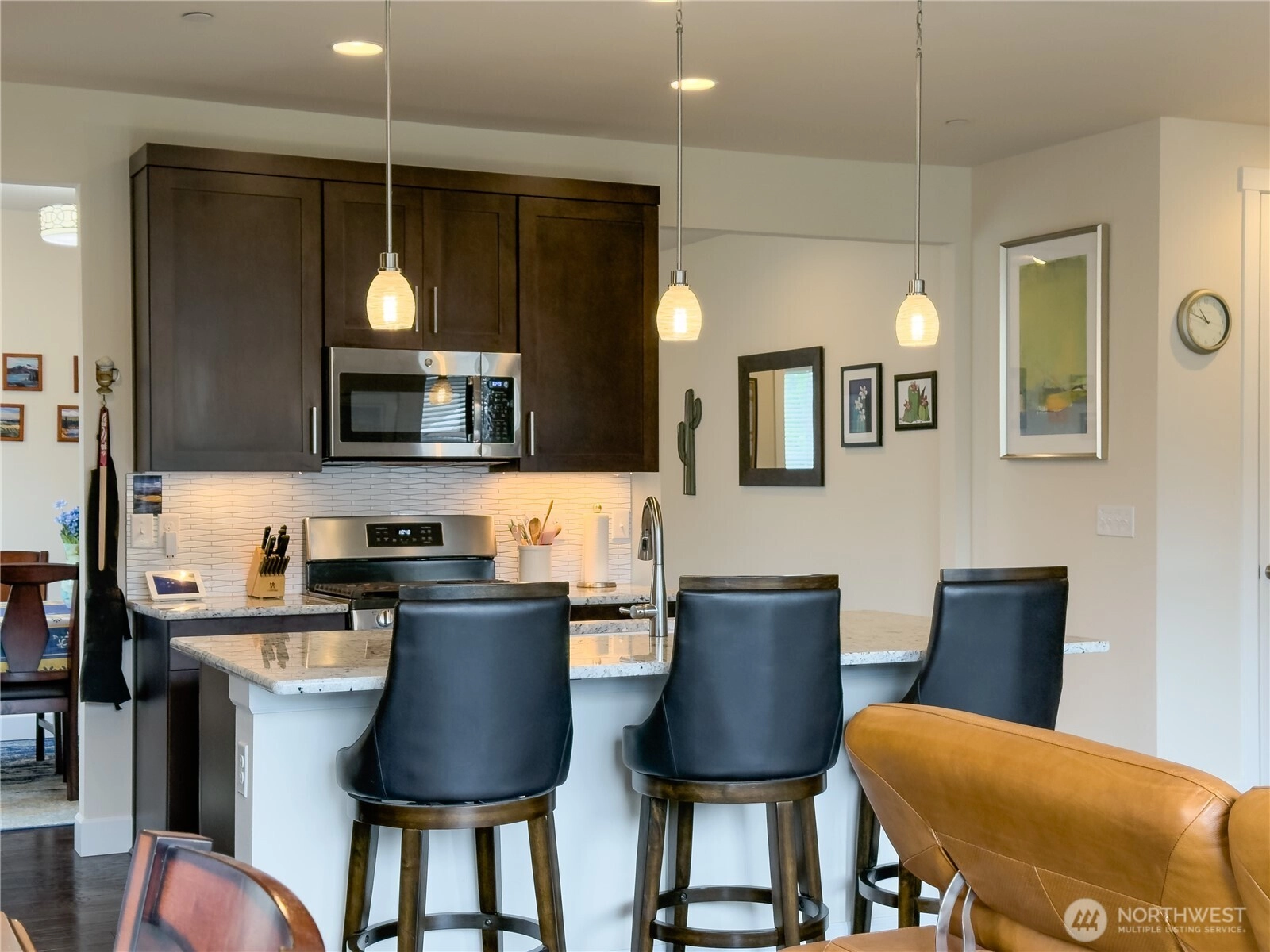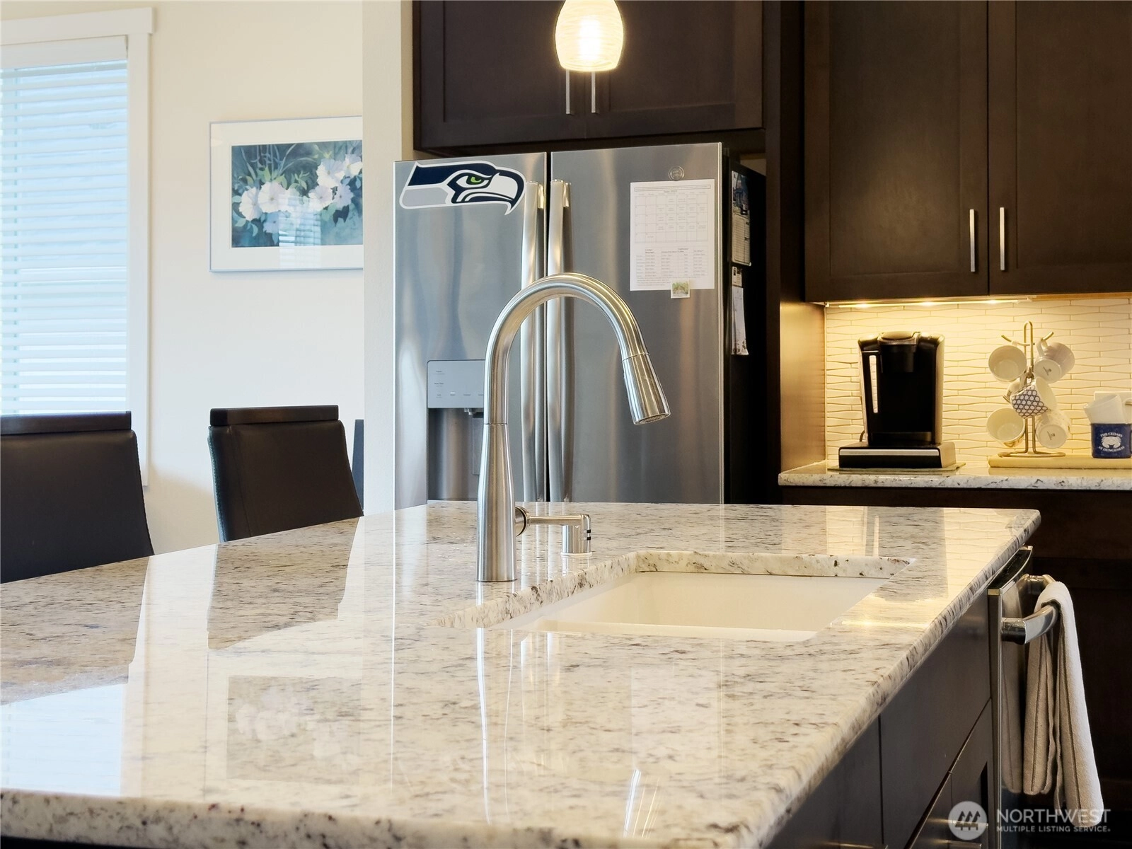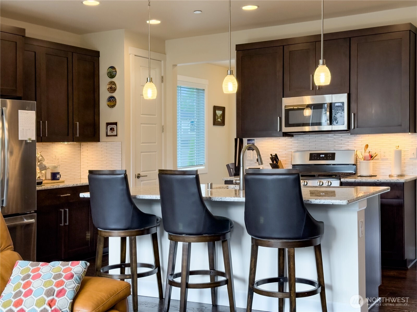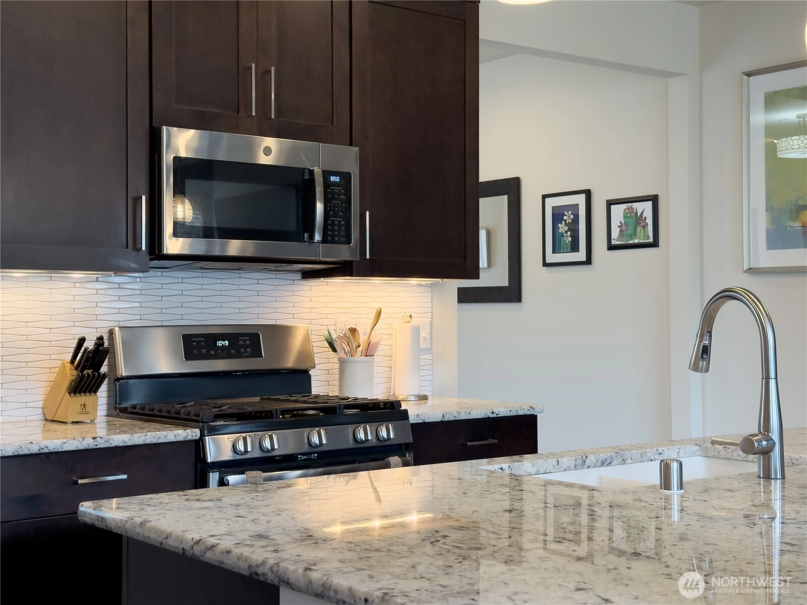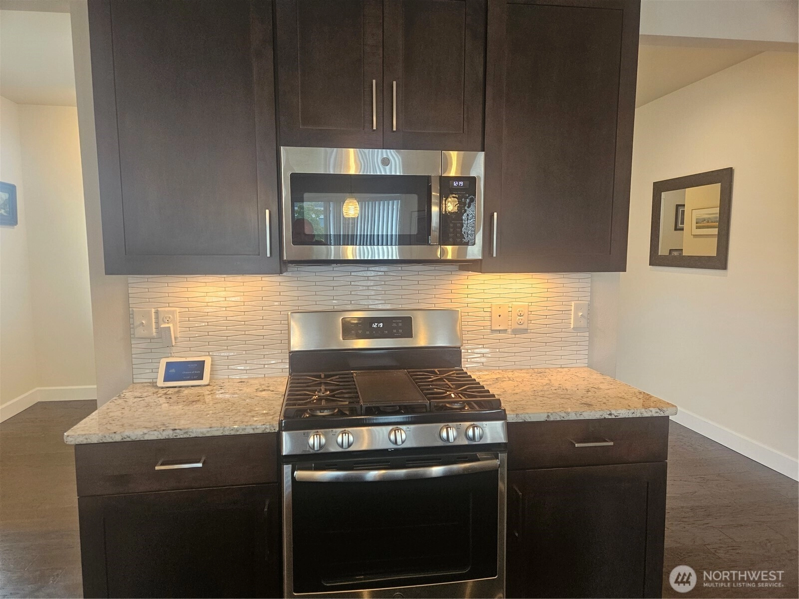 Welcome to this immaculate 2019-built better than new rambler has 1,425 sq ft of stylish living and over $50K in thoughtful upgrades. Soaring 9-ft ceilings, 8-ft doors, upgraded trim, and engineered hardwoods offer refined comfort. Stay cool with A/C and warm by the custom gas fireplace. The kitchen shines with granite counters, stainless steel appliances, gas range, and under-cabinet lighting. Outside, relax on the composite deck, garden in raised beds, or use the shed for storage. Even the garage is finished with a exterior side door, opener, and hanging storage. Low insurance w/ sprinkler syst & security. All appliances stay. Formal Dining/Bonus Room easily converted to 3rd Bedroom if desired. Located in the Lake Stevens Schools!