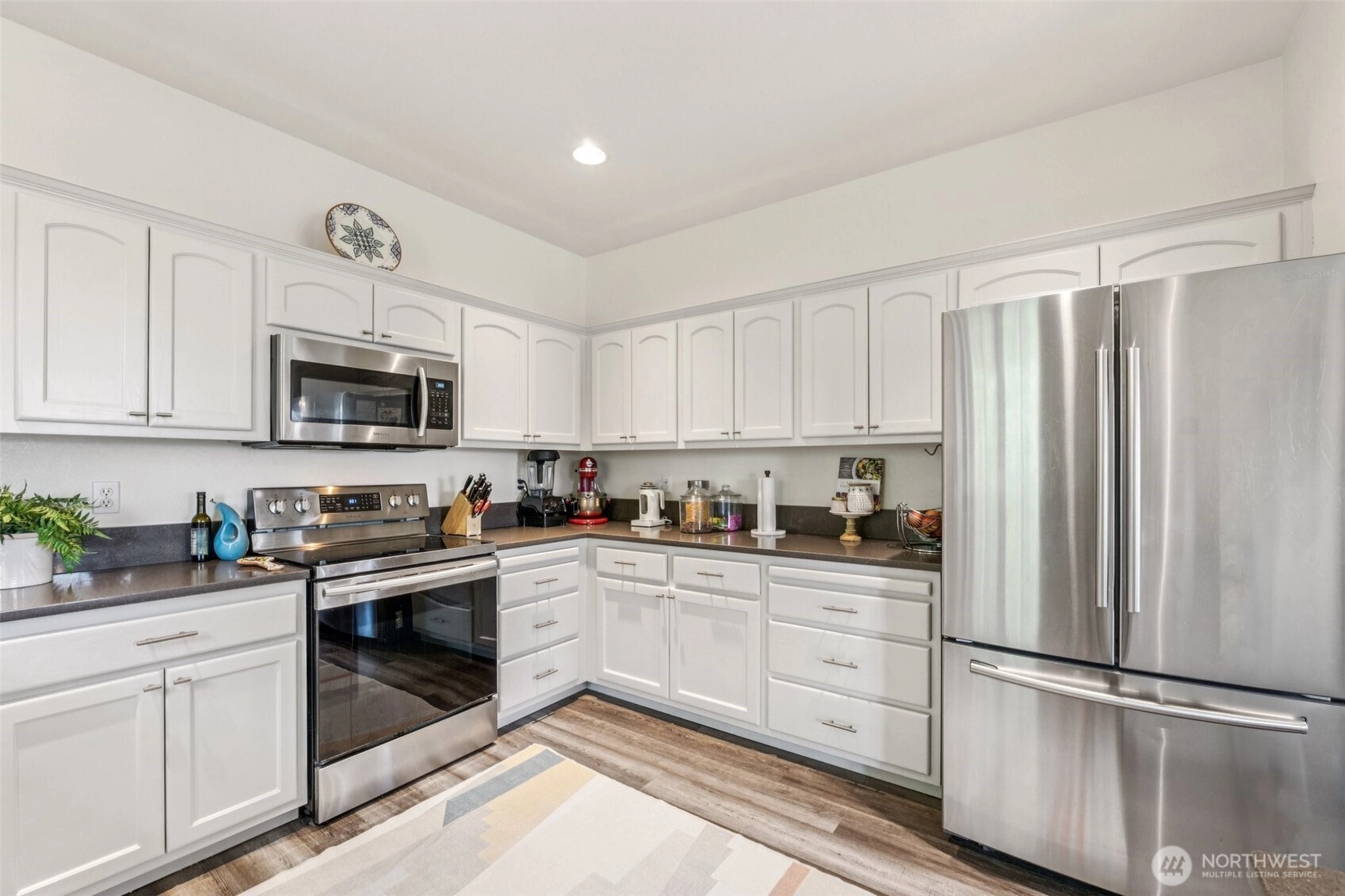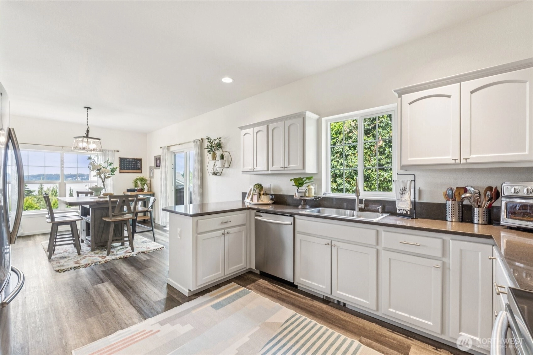 ***AMAZING VIEWS OF LAKE STEVENS THROUGHOUT HOME*** You will not want to miss this beautiful move in ready home on quiet cul-de-sac. Quartz kitchen w/ matching s/s appliances, bar seating & lots of cabinet space. Large living room w/ gas f/p, cathedral ceilings & tons of natural light. Dining room w/ slider to deck in backyard w/ mature landscaping & lots of privacy. Upstairs find primary bedroom w/ private deck overlooking the lake & 3/4 en suite bath. 2 additional generous size bedrooms. Full laundry. Full guest bath. Extended driveway w/ lots of parking. 2 car garage. LVP flooring throughout. A/C & furnace 2024. Roof 2022. Desirable Lake Steven's schools. ***WELL MAINTAINED, ONLY THING MISSING IS YOU***
