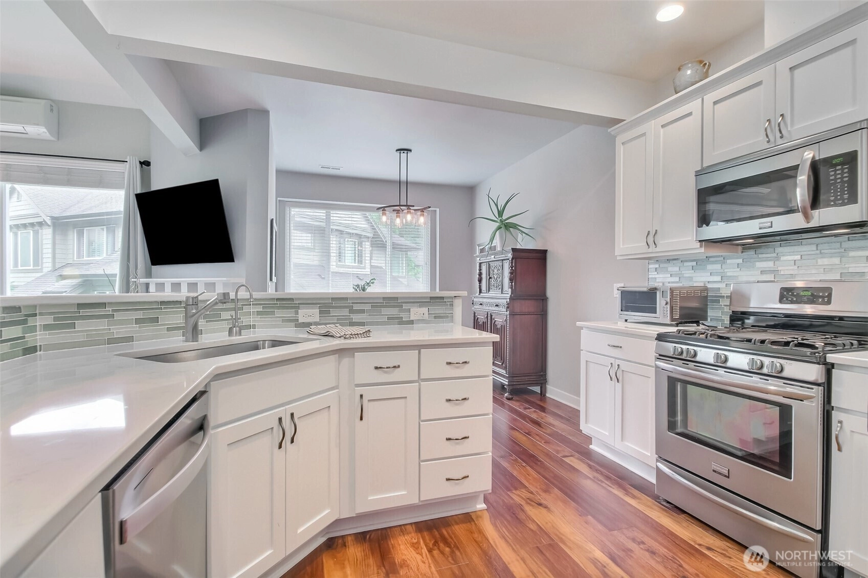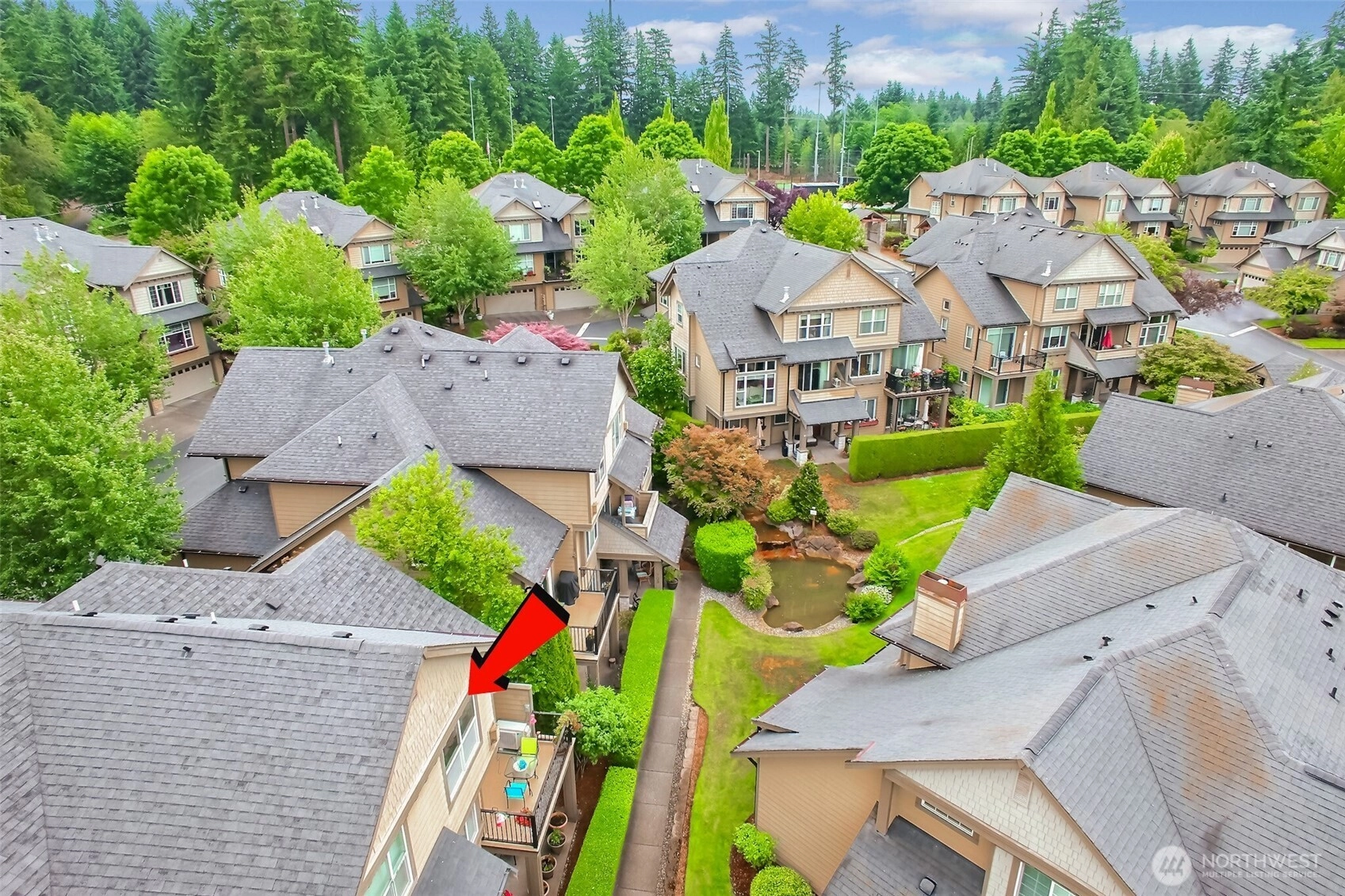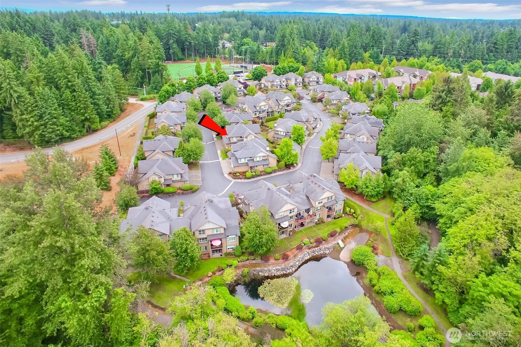 This pristine townhome w/dramatic entry & 9ft ceiling throughout, is one of the residences on 9 acres of lush vegetation that surround private ponds w/waterfalls & benches to sit & enjoy nature; these are a rich backdrop for Nature’s Landing homes. Today's modern amenities are the perfect blend of comfort, elegance & livability-newer luxe kitchen w/adjacent living/dining rms also great for informal use. Lavish primary suite w/recently remodeled bath, large 2nd bedroom & bath & spacious laundry grace the 2nd level. New flooring throughout the main level that opens to a private deck overlooking private grounds, waterfall & pond...enjoy the sounds of nature! AC-mini splits. Walk to bus North Creek trail, MC Sports Park, Mill Creek Town Cntr.