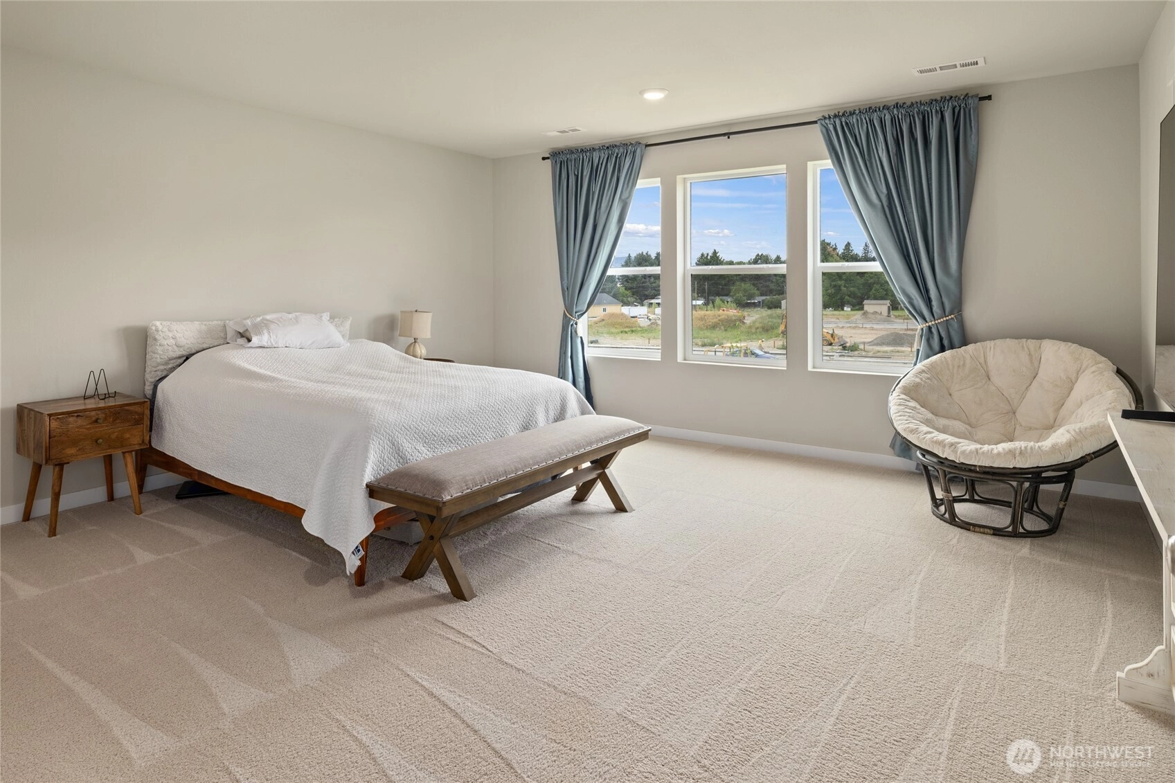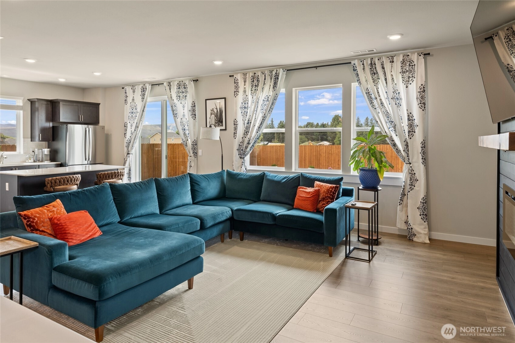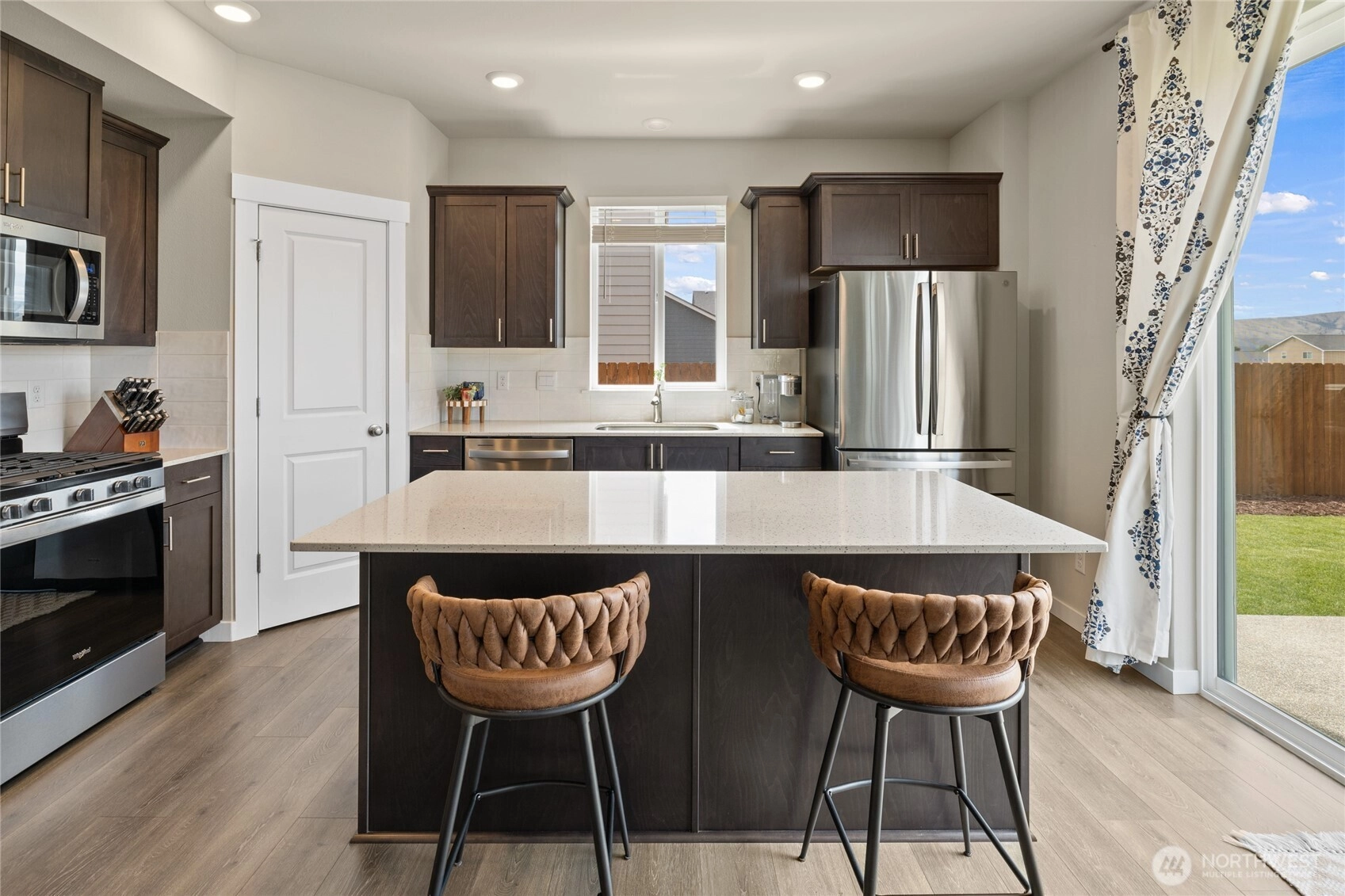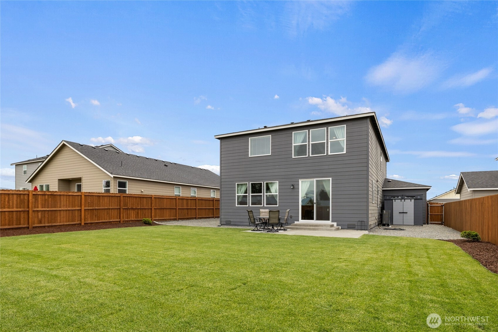 Located in the desirable Ridgeview neighborhood, this nearly new 5-bedroom, 3-bathroom home is beautifully designed and move-in ready. Enjoy open-concept living with 9-ft ceilings, quartz countertops, luxury vinyl plank flooring, a custom fireplace and guest bedroom all on the main level. Upstairs offers a versatile open loft, private primary suite, 3 guest rooms, full bath and laundry room. Smart home features provide comfort and security. The fully fenced, landscaped yard includes underground sprinklers in front and back and storage shed. The 3-car garage provides ample storage or hobby space. Conveniently located close to local amenities and easy I-90 access.