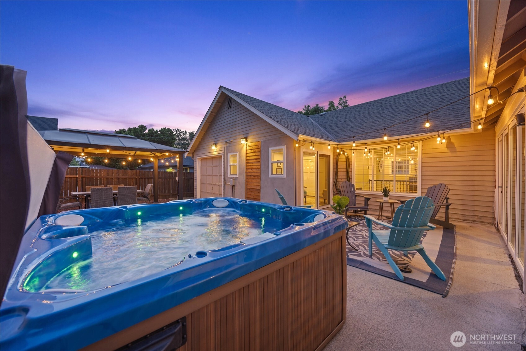 Step into luxury at 214 S Bradley Street, just 2 blocks from Riverwalk Park & Downtown Chelan. As you enter you'll be greeted by warm & inviting interior finishes including; new flooring throughout, designer cabinetry & counter-tops, high-end light fixtures, SS appliances, a 5ft electric fireplace, electric blinds & 12ft stacking glass door which seamlessly blends interior & exterior living spaces. 2 ample bedrooms & 1.25 baths on the main floor, 3rd bed & full bath w/ soaking tub on the lower level. The backyard is perfect for entertaining w/ a 7-person hot-tub, gazebo w/ fire table & patio seating. 1-car pass-thru garage for parking/storage, w/ convenient alley access. Sellers offering 3.3% towards interest buy-down w/ full price offer!