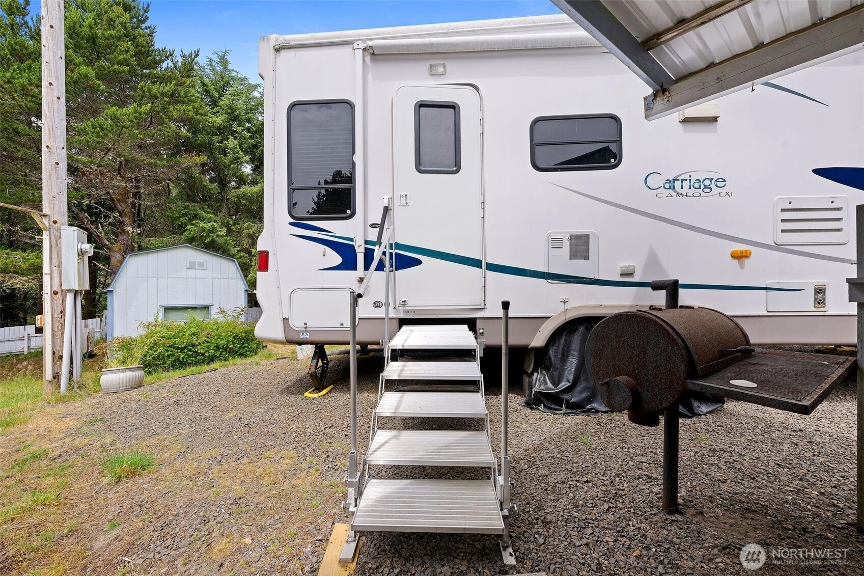 Discover an incredible opportunity in Ocean Park. This versatile property offers a rare combination of comfort, convenience, and coastal charm. Situated just a short walk from the beach, this spacious lot is partially fenced for added privacy and security. The property is thoughtfully set up with 5 fully functional RV hookups, making it ideal for extended stays, guests, or even rental income. Included are two well-maintained 5th wheel trailers that can serve as instant lodging. You'll also find two outbuildings perfect for storage, a workshop, or future conversion. With ample space and established infrastructure, there’s room to expand or create your ideal beach retreat. Beach trails just up the street for a quick walk to the Ocean.