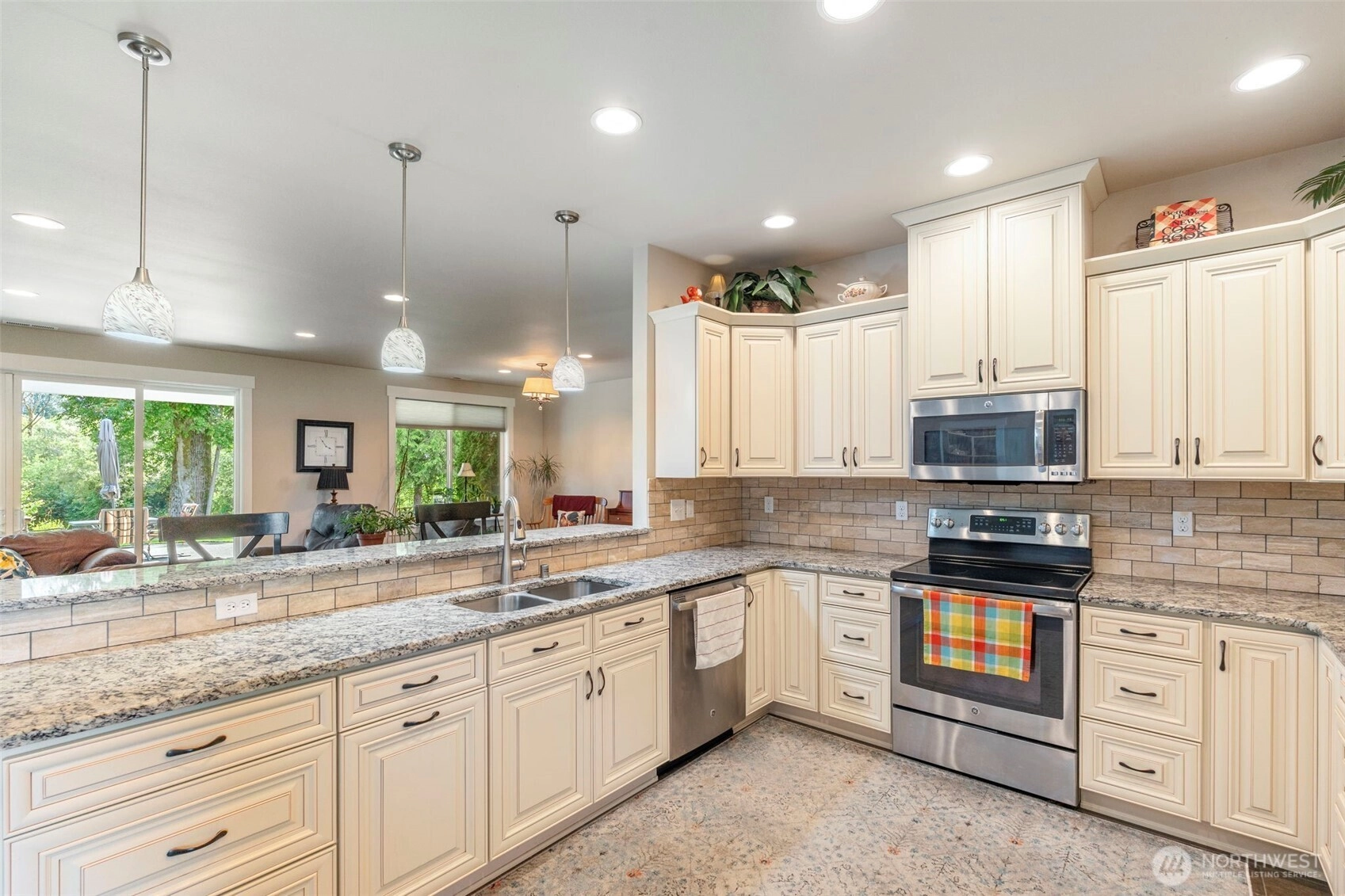 Custom-built beauty on 2.04 acres along the Newaukum River! This stunning single-level home offers 2,165 sq ft of quality craftsmanship and peaceful living just minutes from Chehalis. Enjoy vaulted ceilings, tile plank flooring, a cozy fireplace, and large windows that bring in natural light and showcase the surrounding scenery. The open-concept kitchen features custom cabinets, beautiful countertops, and mountain views from the front windows. The primary suite is a true retreat with relaxing river views right from your bed, offering a daily connection to the peaceful surroundings. With 2 full baths, a guest half bath, and a spacious 1,428 sq ft garage, this home blends style, space, and functionality.