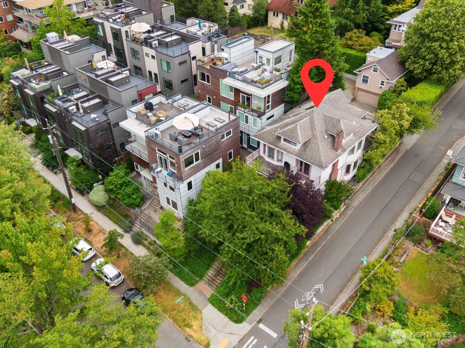 Here's a grand old Craftsman Capitol Hill duplex in a prime location! There's a lot of potential here with below-market rents and month-to-month tenants. The upper unit is three stories with 6 bedrooms and views of downtown. The lower basement unit is a studio. With lots of unfinished basement square footage, there's potential to add more rentable square footage. Parking for two cars off the alley. -- OR BUILD! -- This 4,311 square-foot corner lot, with alley access, is zoned LR3 with nearly shovel-ready plans by Hybrid Architecture for 5 duplex units with 3 parking spots (4 townhomes and a single-family home.)