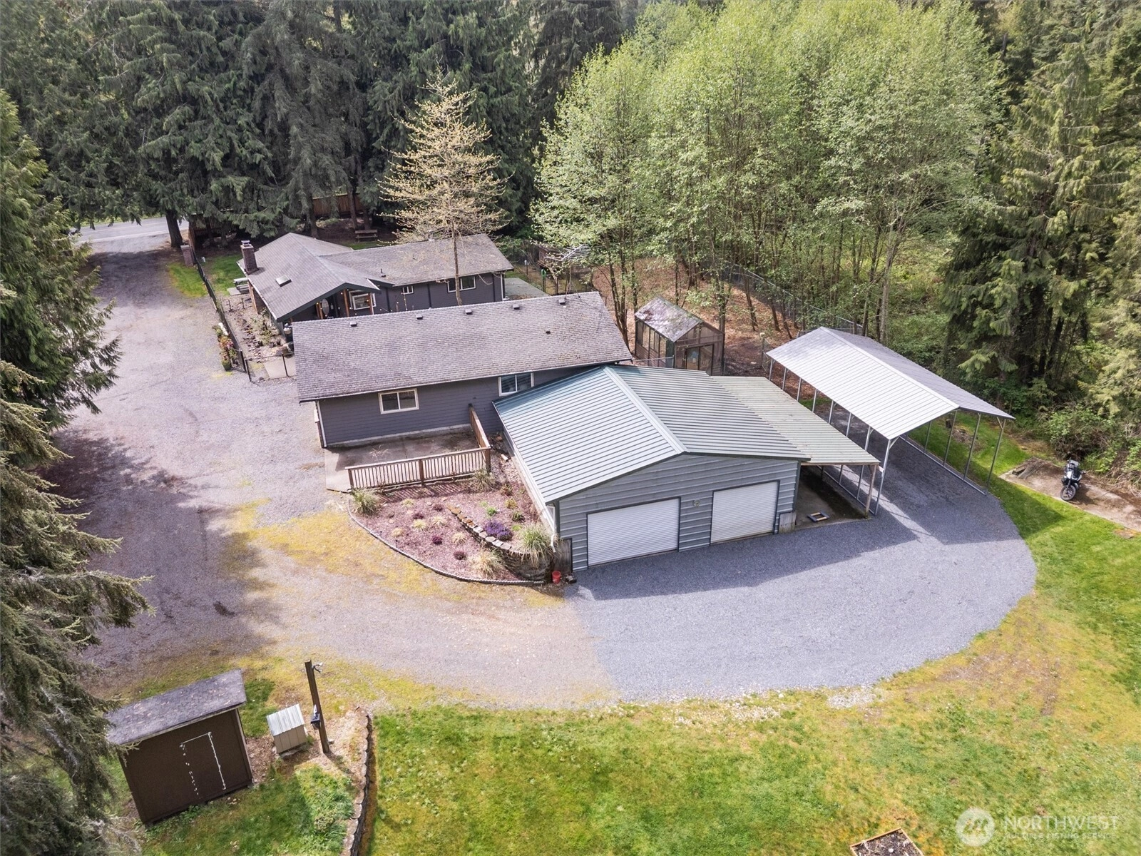 Snohomish Acreage Home w/ Remodeled ADU & finished Treehouse! 2+ acres, 32x28 Shop, Garage & RV Carport, etc. Hobby farm ready w/ greenhouse, chicken coop, woodshed & more. This property is a tranquil forested experience. Updates include kitchen & bath remodels, water filtration system, fencing, etc. Pre-inspected for peace of mind. Ask for Report & UPDATES List. Custom-built log style home welcomes you into a comforting layout that includes kitchen, dining, & living room on main level + 3 rooms & 2 bathrooms. Downstairs sports a large private suite. Covered Patio & Hot Tub. 664 sqft ADU w/ living room, full kitchen, bed & bathroom. Large storage area under ADU. Wired for generator. New electrical in shop. Don't miss the Treehouse!
