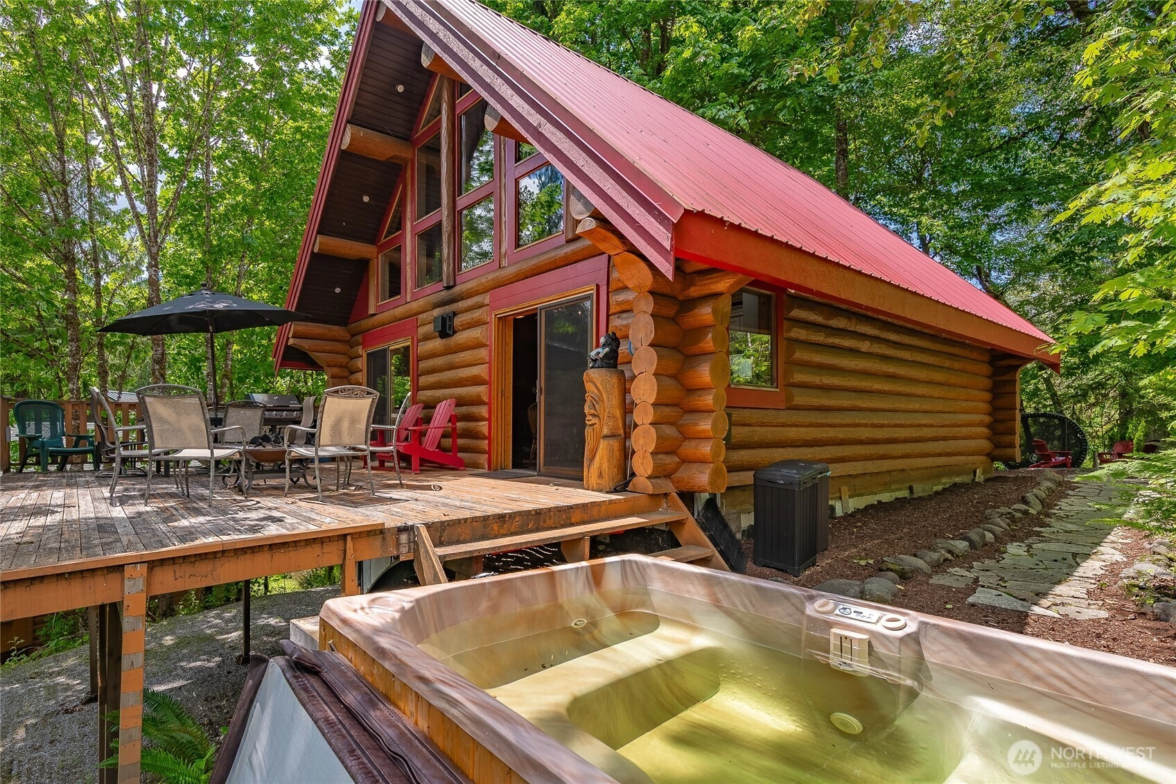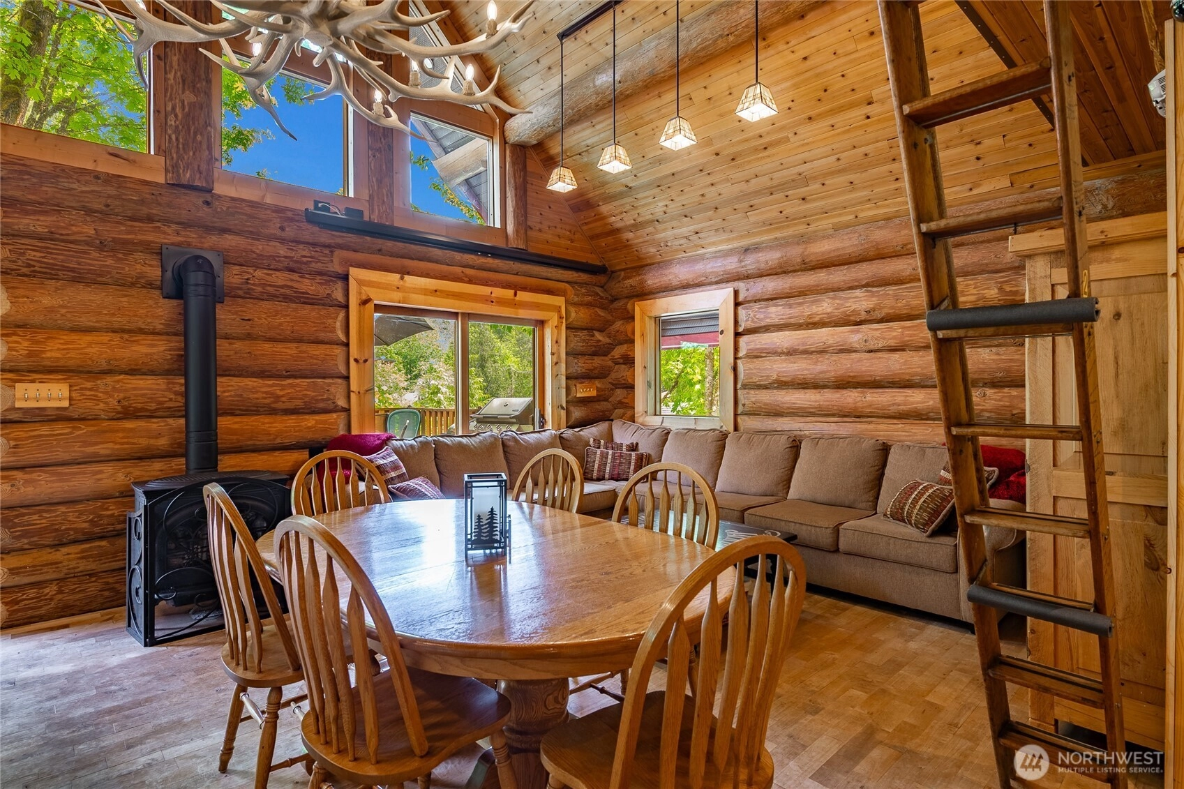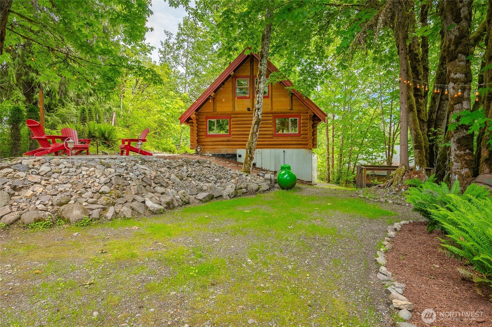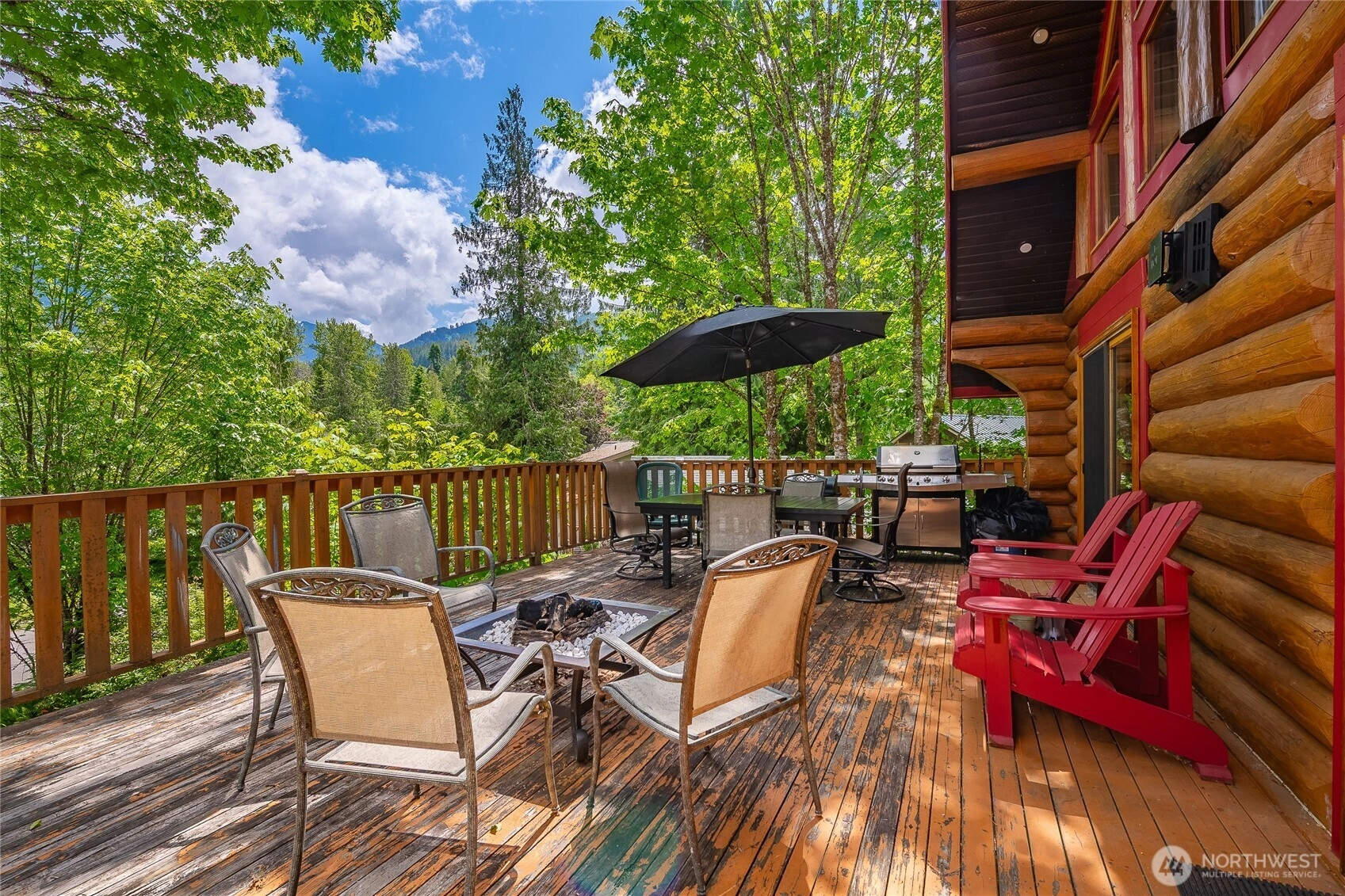 Amazing views of Mt. Baker from the front deck or inside! One of a kind, custom True Log cabin, logs sourced from British Columbia. Located in the Mt. Baker Rim gated community! The wall of windows will wow you, while you look out at the mountains from the living room or kitchen. The cabin boasts 2 bedrooms & a large loft space that sleeps at least 4. The front deck very spacious with BBQ, smoker and ample seating for everyone. The lot is large, open and aerie, with a private patio, string lights and fire pit. There is a very large standup crawl space to store your snowboards, skis and bikes as well as this space serves as the utility room. .30 minutes to Mt. Baker! Amenities include swimming pool, sauna, clubhouse, tennis courts, & more.