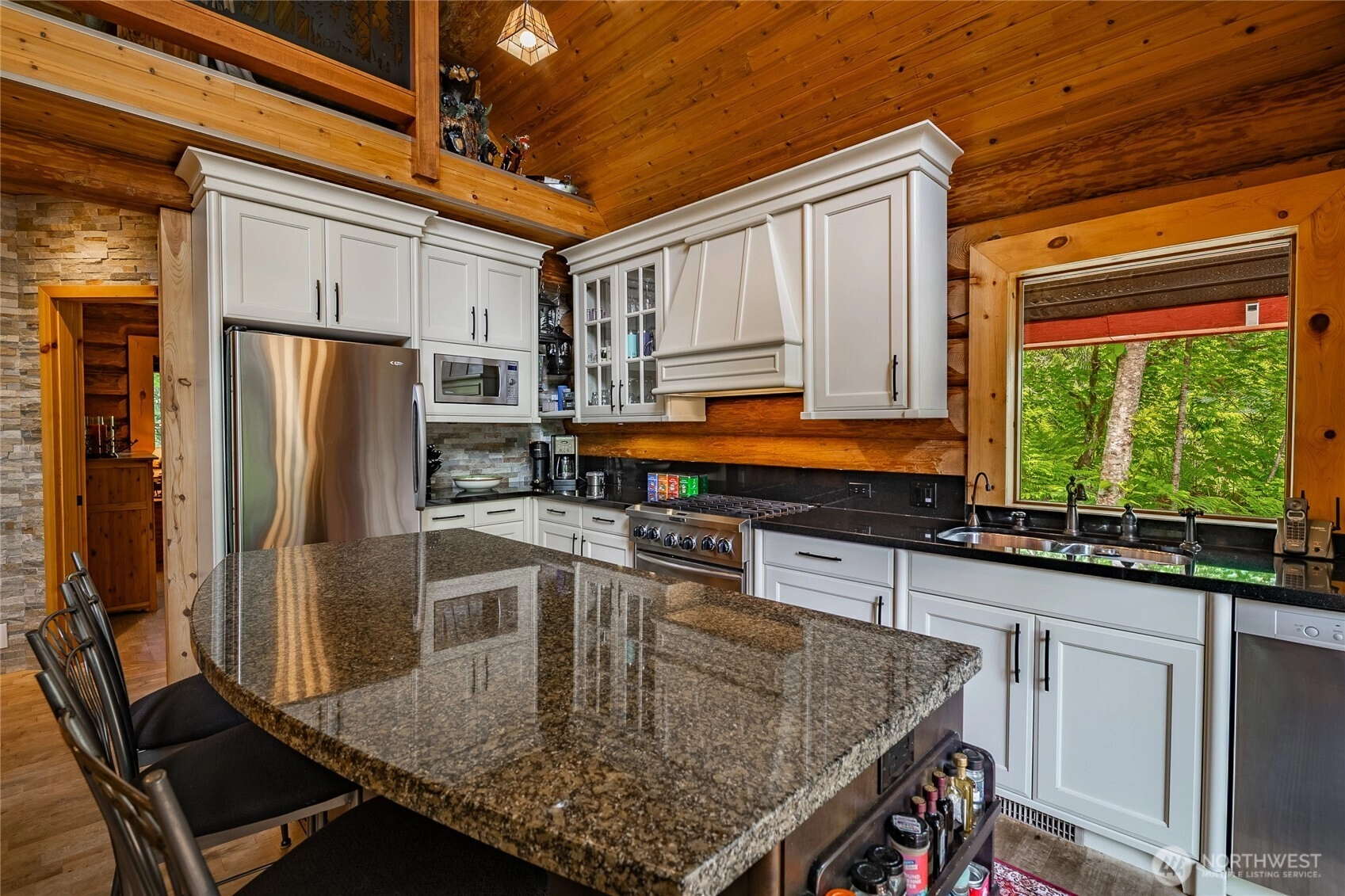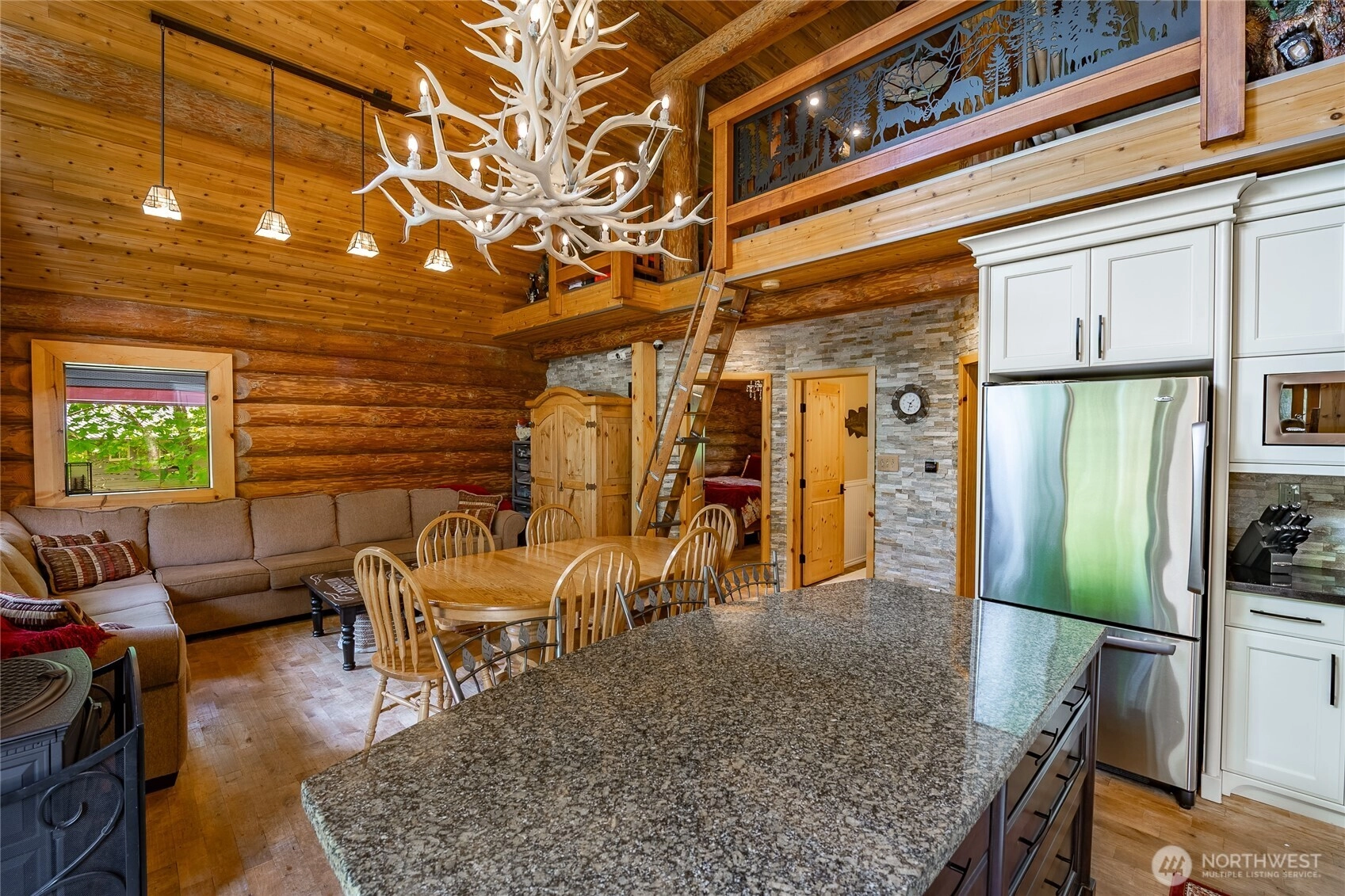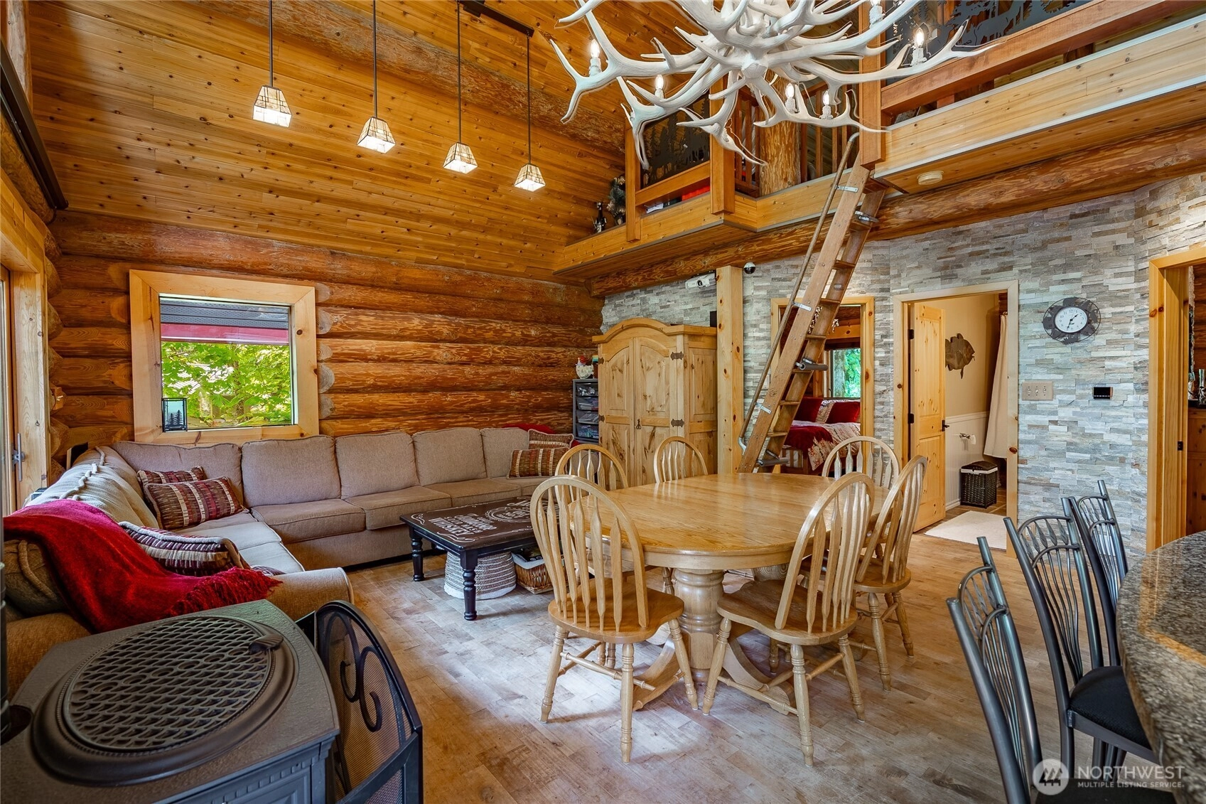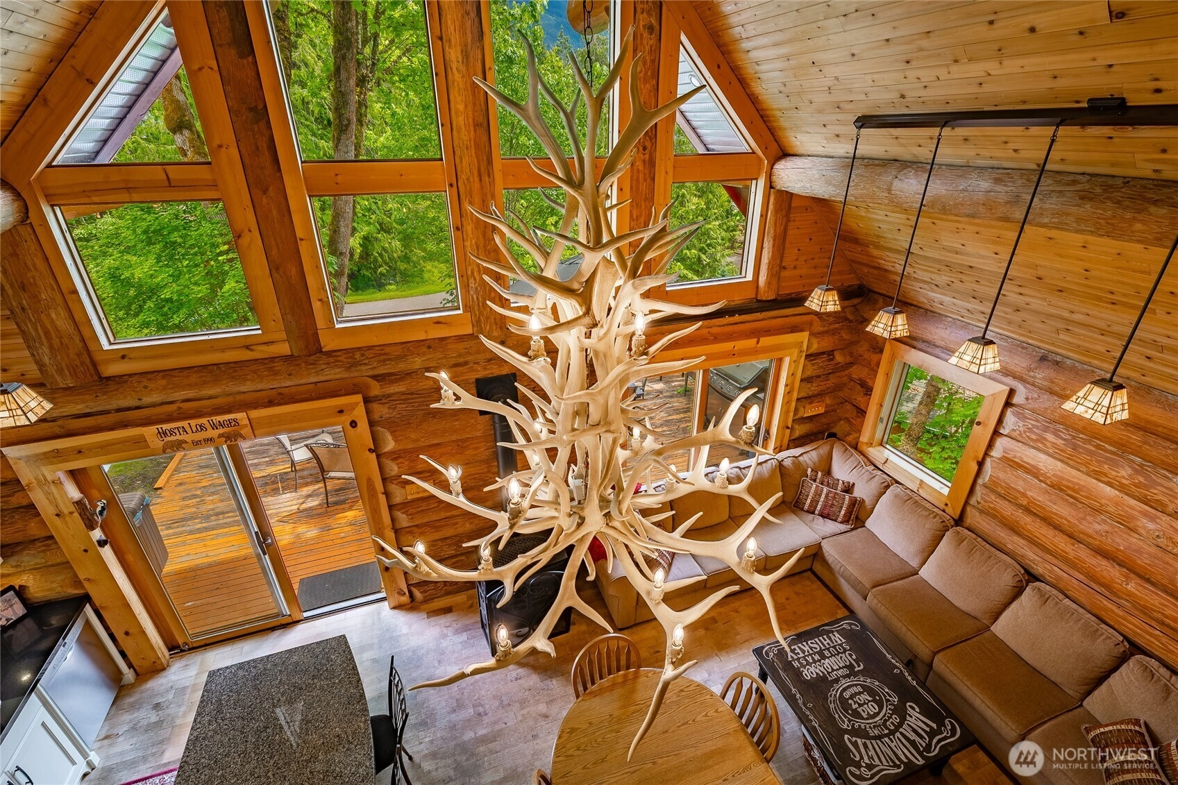 Amazing views of Mt. Baker from the front deck or inside! One of a kind, custom True Log cabin, logs sourced from British Columbia. Located in the Mt. Baker Rim gated community! The wall of windows will wow you, while you look out at the mountains from the living room or kitchen. The cabin boasts 2 bedrooms & a large loft space that sleeps at least 4. The front deck very spacious with BBQ, smoker and ample seating for everyone. The lot is large, open and aerie, with a private patio, string lights and fire pit. There is a very large standup crawl space to store your snowboards, skis and bikes as well as this space serves as the utility room. .30 minutes to Mt. Baker! Amenities include swimming pool, sauna, clubhouse, tennis courts, & more.