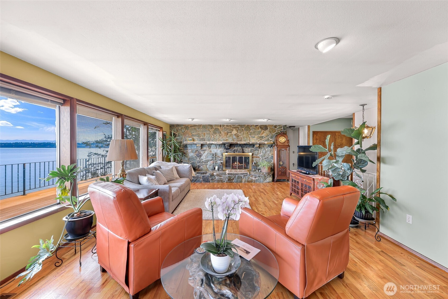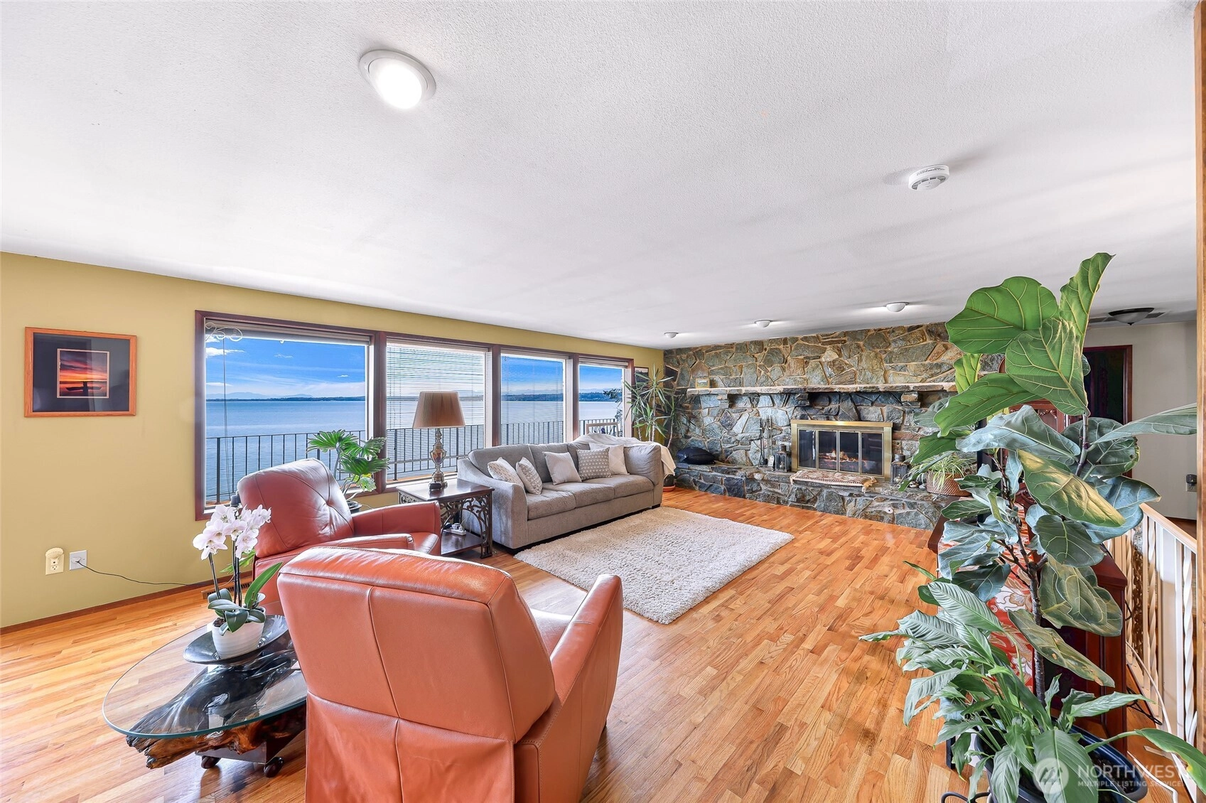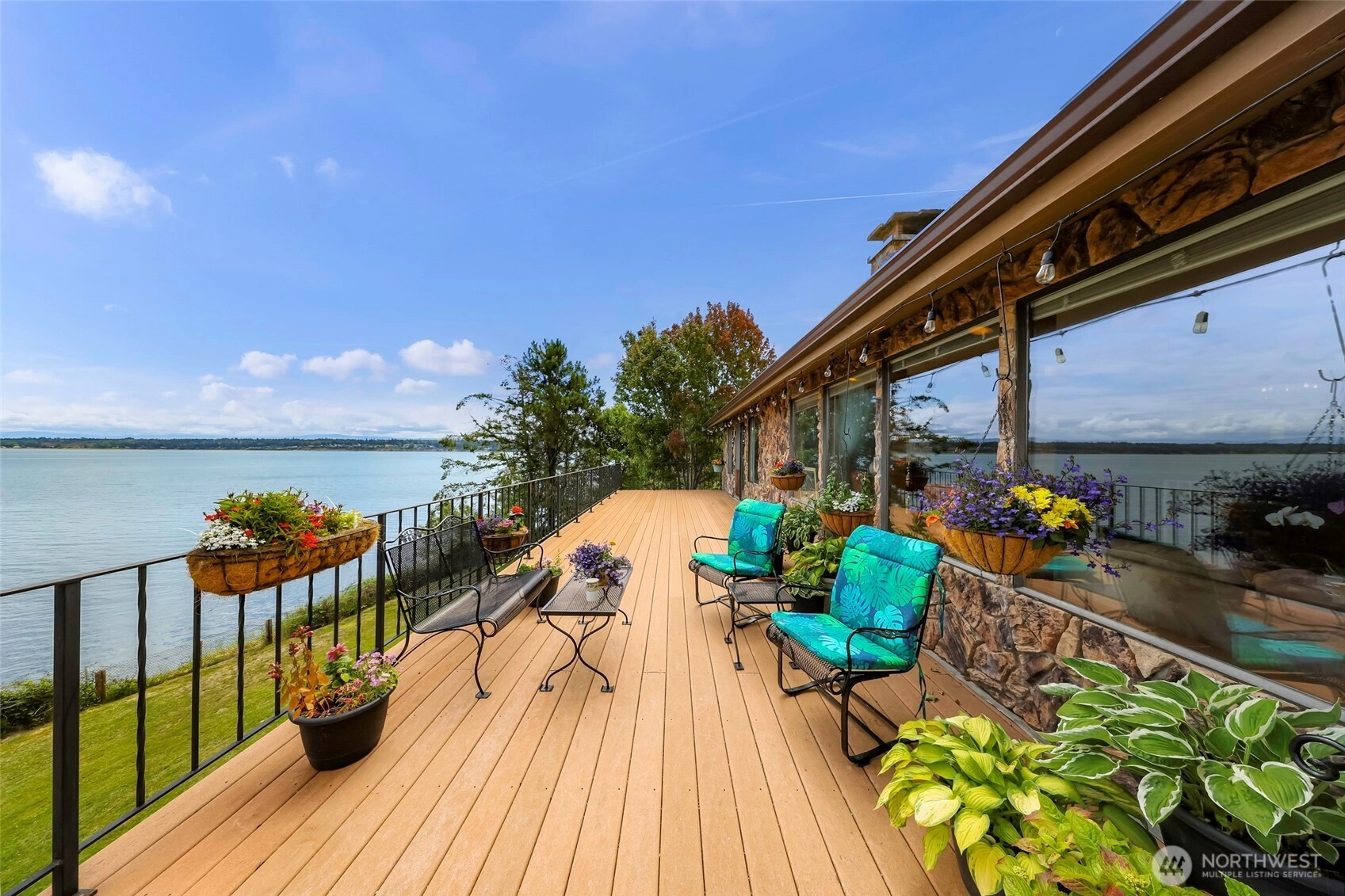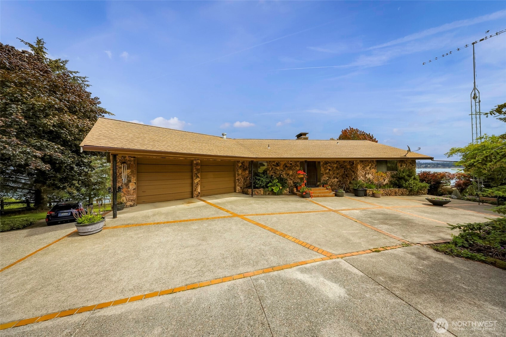 Legacy Waterfront Estate on Lummi Island. This 3,335 sq ft home w/Shop sits on a shy .81 acre. With 3 beds & 3 baths, it oozes vintage charm w/180 degree water views from every room. Step inside to living + dining area w/stone walkway + fireplace, carpet (hardwood under) & sprawling TREX deck perfect for entertaining. Kitchen features tiled countertops, stainless appliances & hardwood floors that beckons culinary promise. Primary bed w/ full water view has a fireplace, bath w/soaker tub offering solace and respite. Daylight basement features large living area, fireplace, bedroom, storage area & covered patio. Attached 2 car garage. Outside beholds meticulous gardens, a big shop, additional parking & 166 ft of sandstone beachfront.