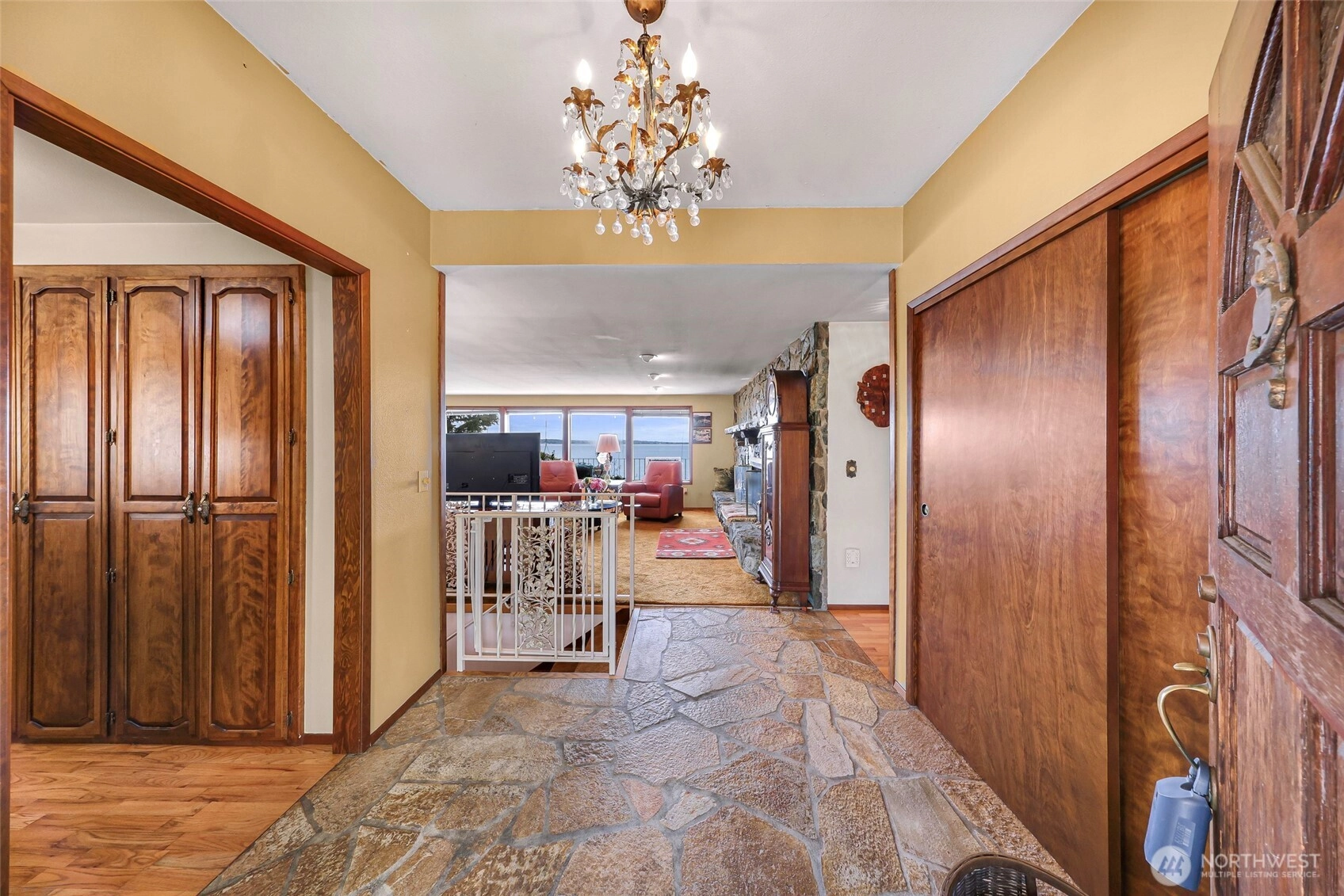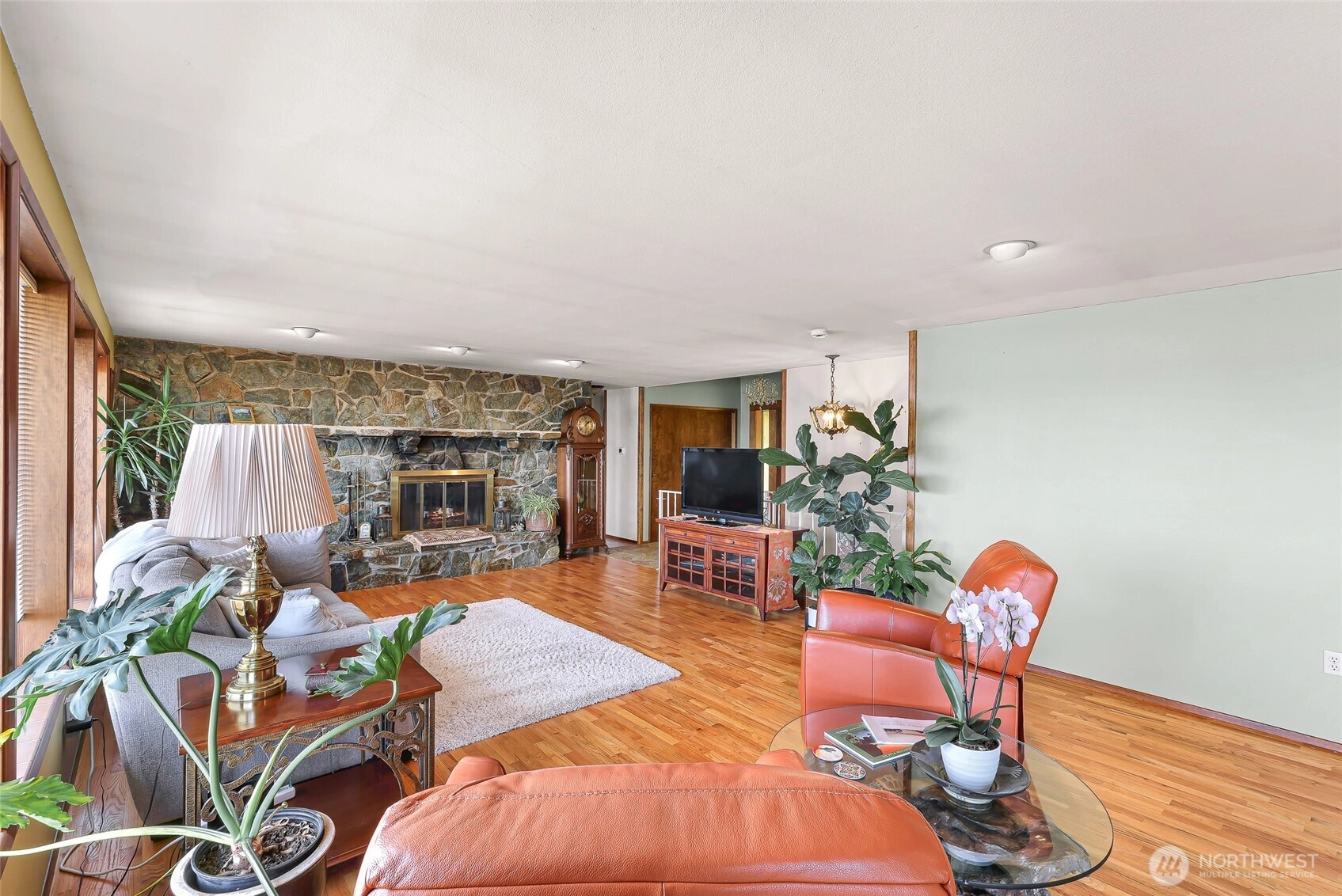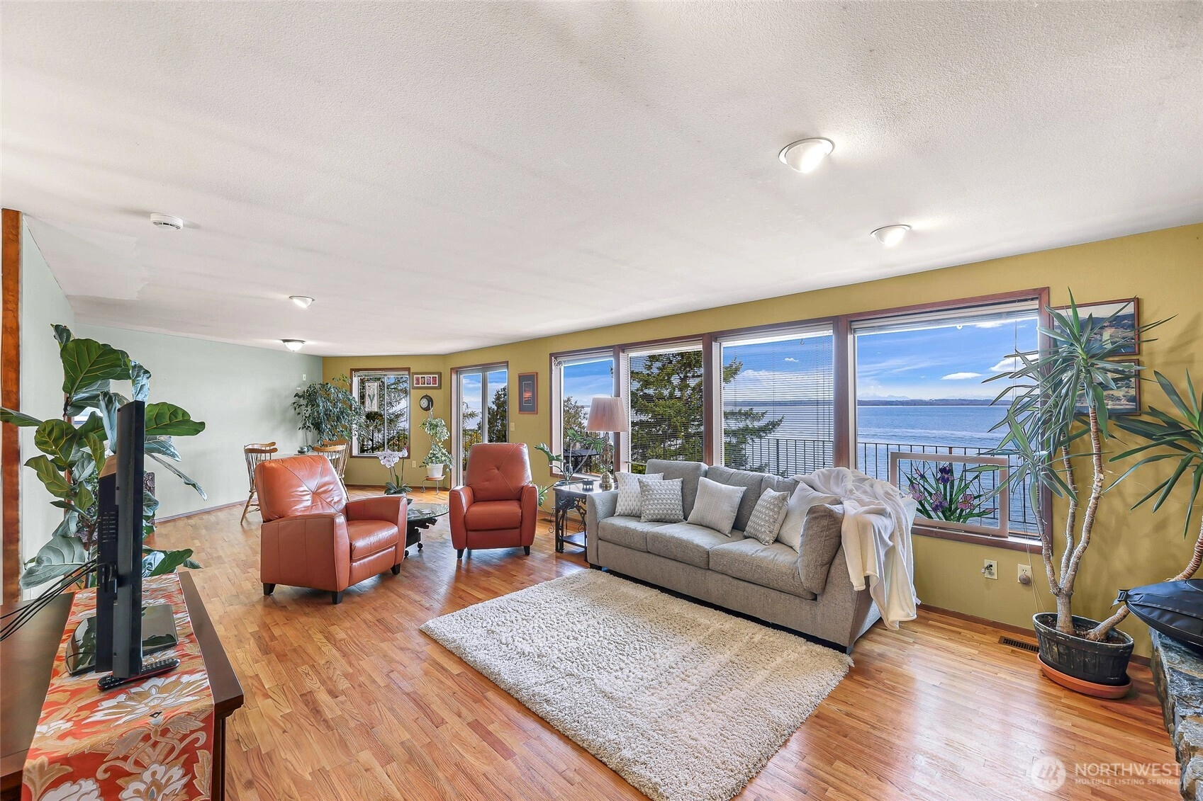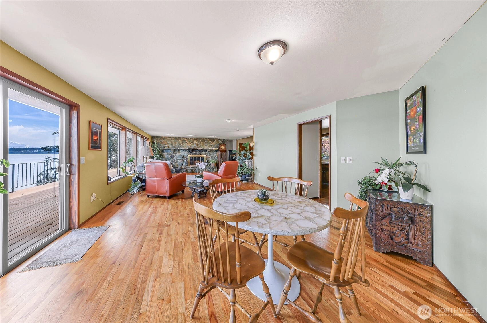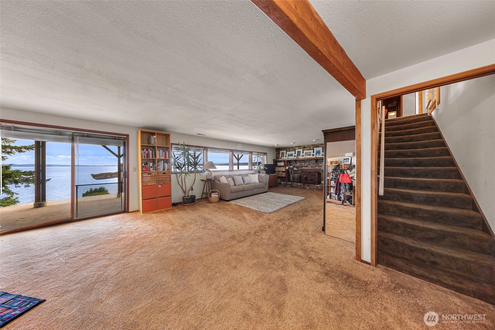 Legacy Waterfront Estate on Lummi Island. This 3,335 sq ft home w/Shop sits on a shy .81 acre. With 3 beds & 3 baths, it oozes vintage charm w/180 degree water views from every room. Step inside to living + dining area w/stone walkway + fireplace, carpet (hardwood under) & sprawling TREX deck perfect for entertaining. Kitchen features tiled countertops, stainless appliances & hardwood floors that beckons culinary promise. Primary bed w/ full water view has a fireplace, bath w/soaker tub offering solace and respite. Daylight basement features large living area, fireplace, bedroom, storage area & covered patio. Attached 2 car garage. Outside beholds meticulous gardens, a big shop, additional parking & 166 ft of sandstone beachfront.
