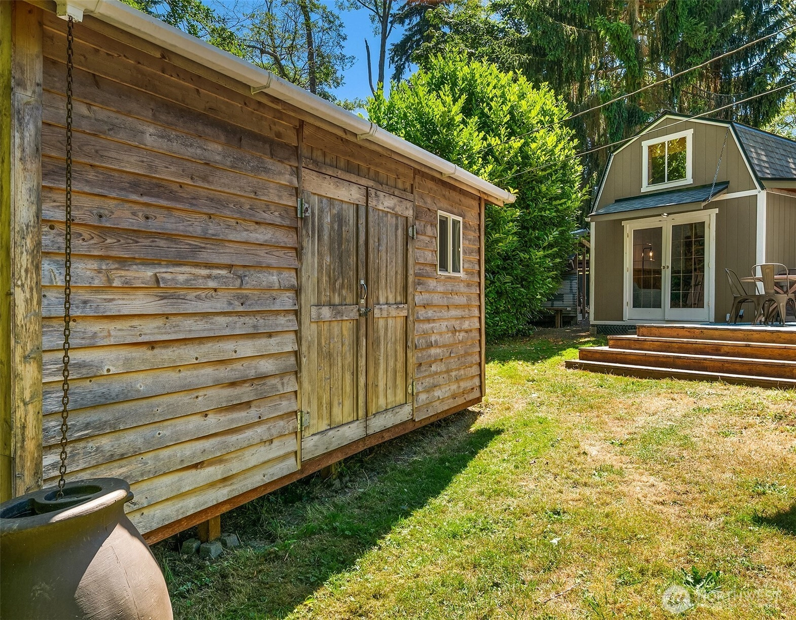 Tucked on a shy acre just moments from the north end ferry, this beautifully remodeled mid-century home blends timeless charm with thoughtful updates. Vaulted ceilings, an open kitchen, and oak hardwoods throughout create a warm, light-filled interior. The tranquil primary suite features an en suite bath, and all bedrooms are generously oversized for comfort. A versatile half-story bonus room offers flexible space for work or play. Outside, enjoy sunny lawns, raised gardens, and a covered, heated deck. A separate bunk house with loads of character and a cozy sleeping loft is perfect for guests. Complete with a sauna, hot tub, and unbeatable convenience, this is a stunning island retreat.