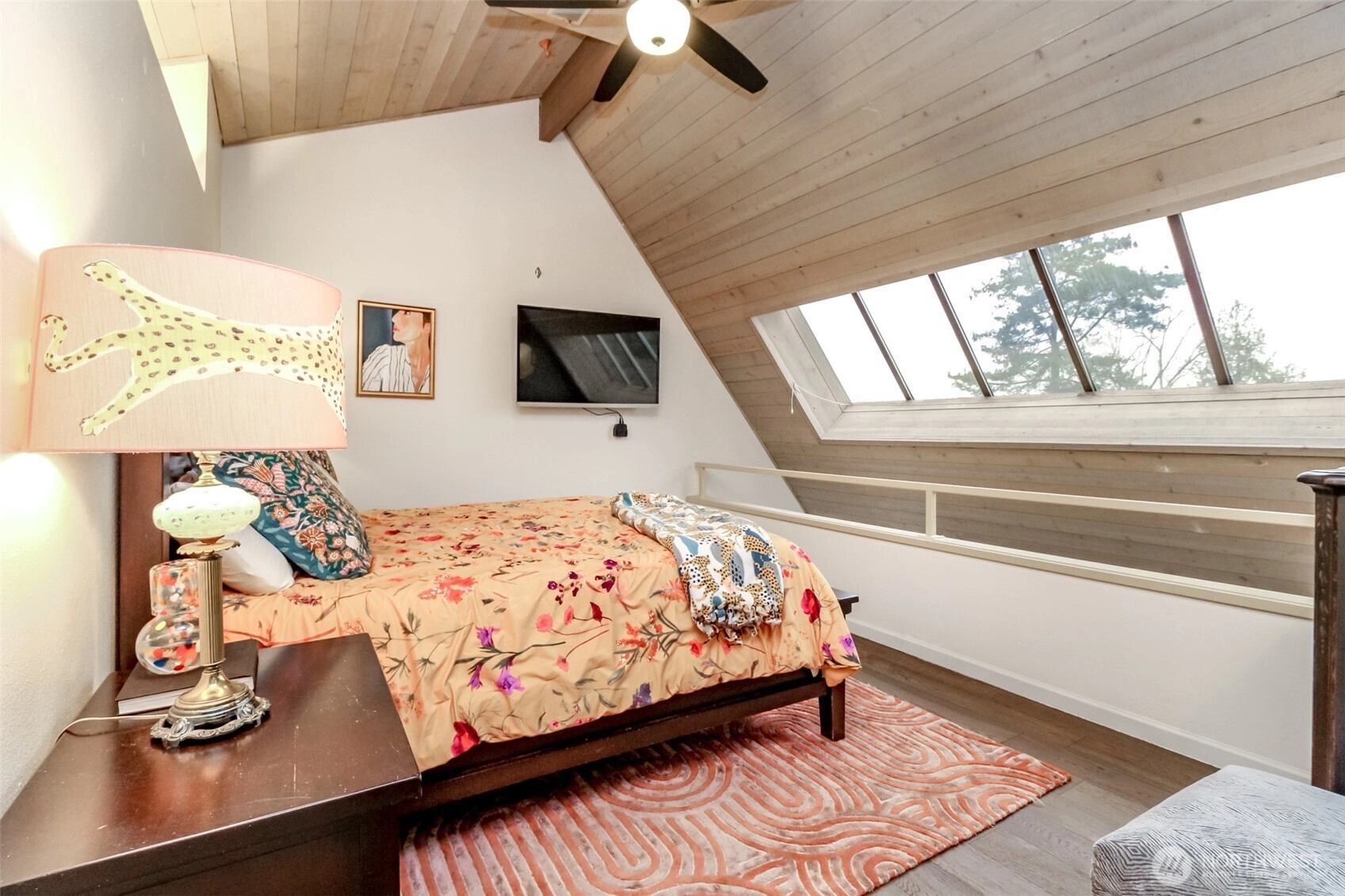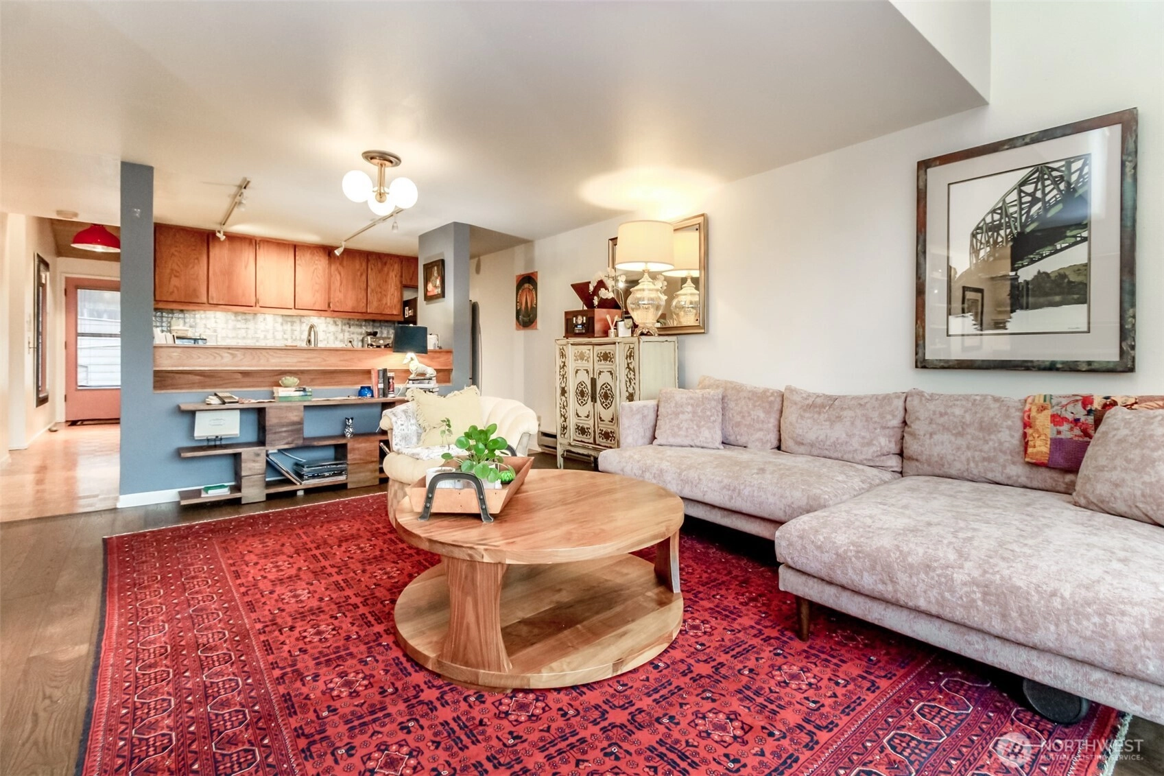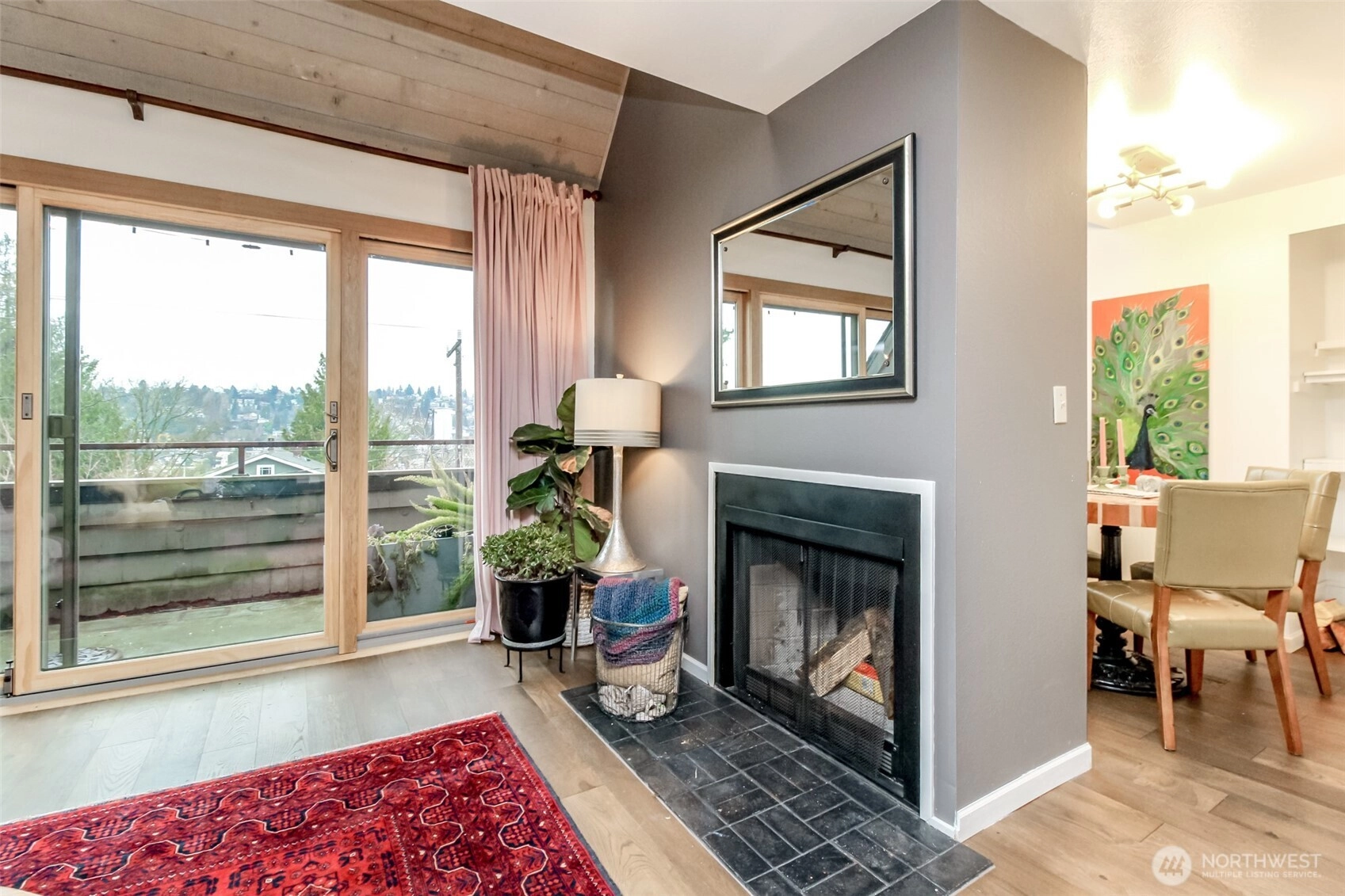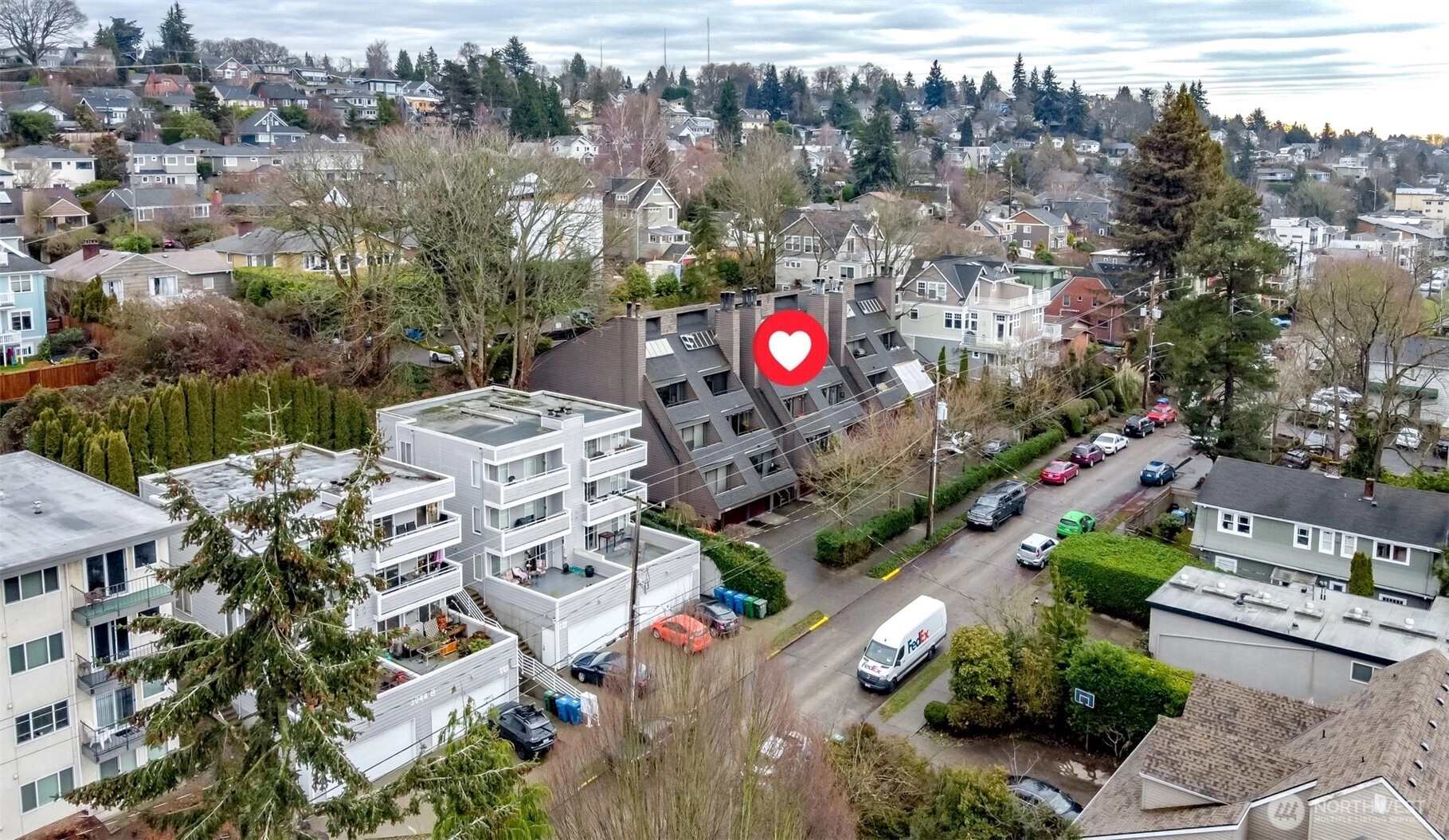 Motivated Seller! This quiet condo on the west slope of Queen Anne is amazing! It is truly special inside and out. It is a very cool, large, loft style unit in a unique building with a private entrance. It features large open indoor spaces with lots of trees and natural light to enjoy out of the ample windows and includes bathrooms and multi-use bonus nooks on both floors. The quiet west facing balcony feels like a tree house! The flow feel of the unit are exquisite. Nearby public transport, and shops make it very walk-able, but a dedicated parking spot and easy access to major roads and highways make it great for car commuters as well. Cyclists and nature lovers will appreciate the many nearby parks and proximity to the popular BG Trail.