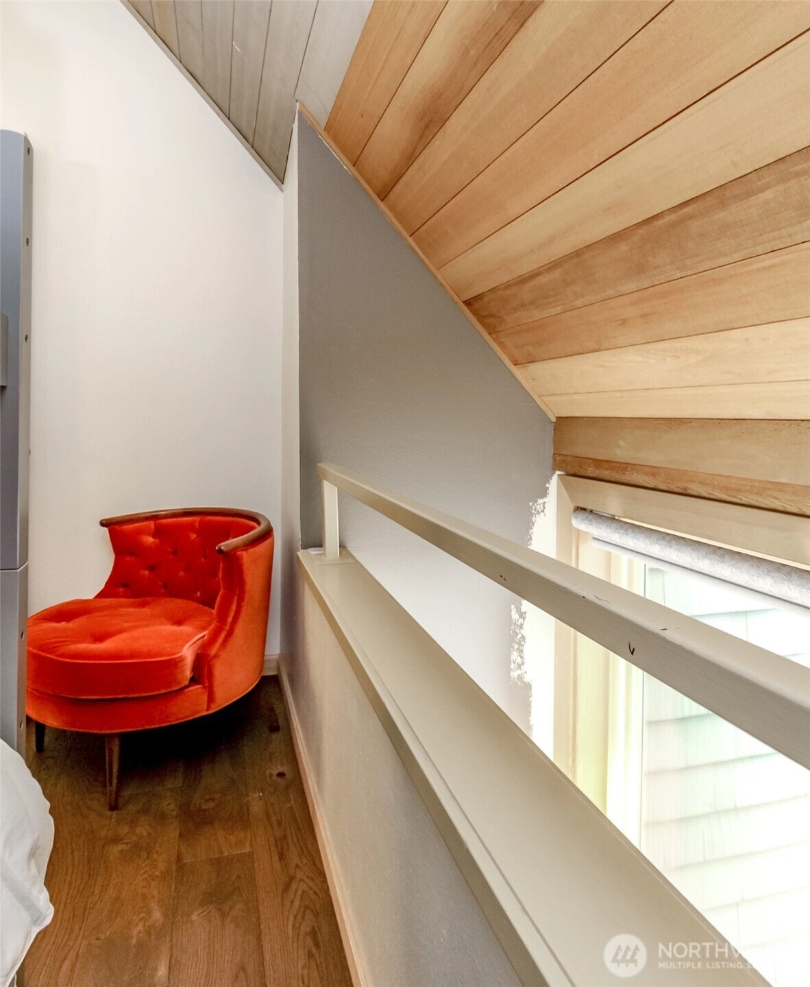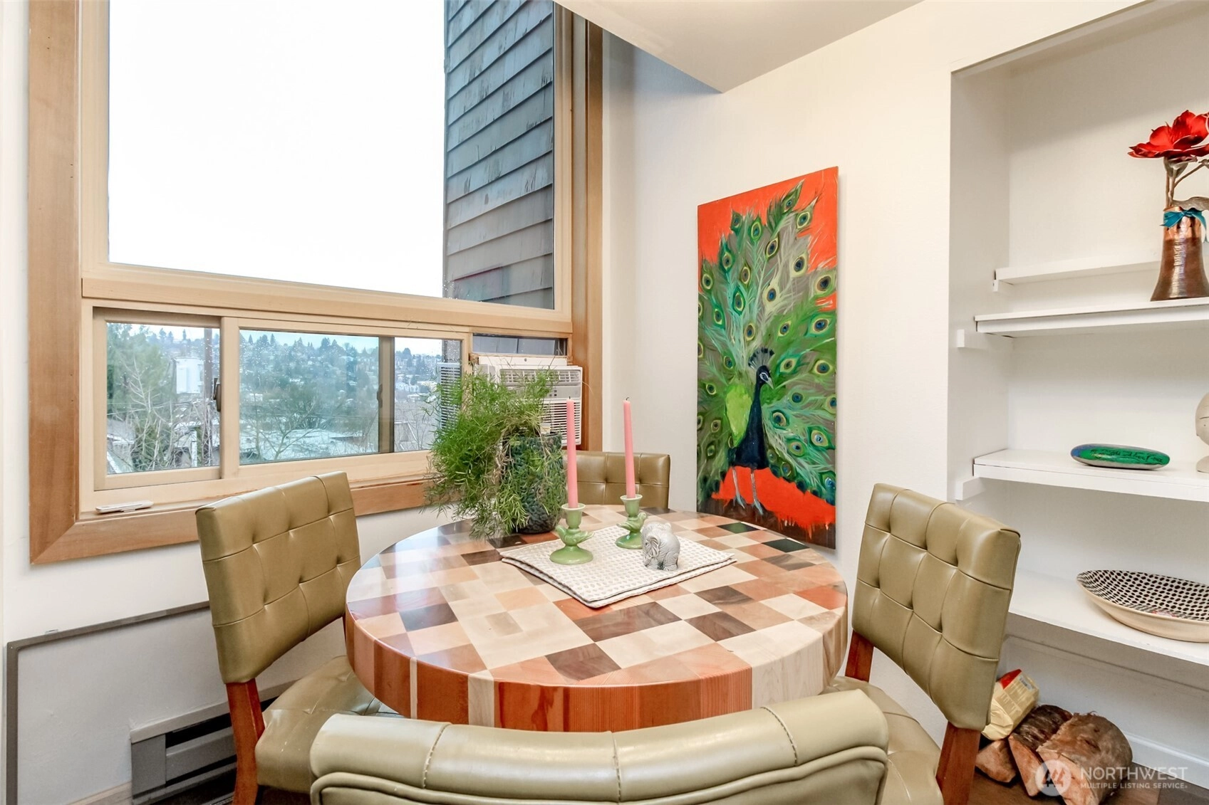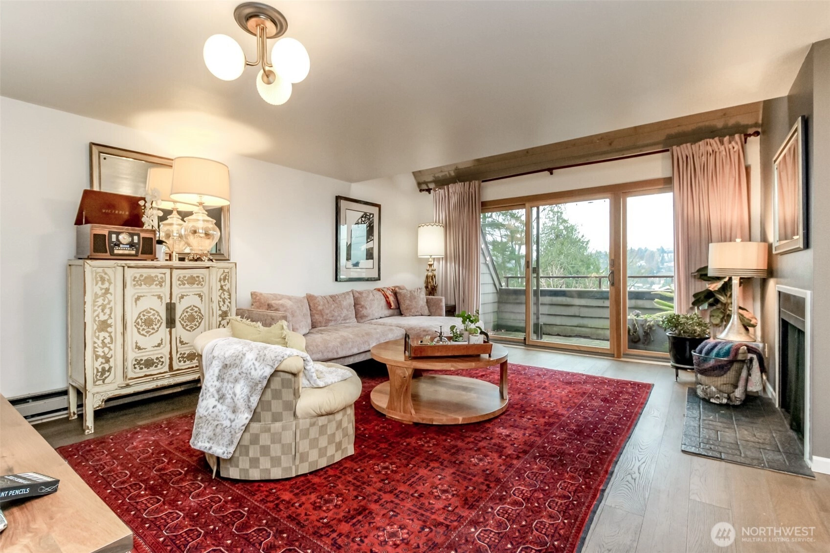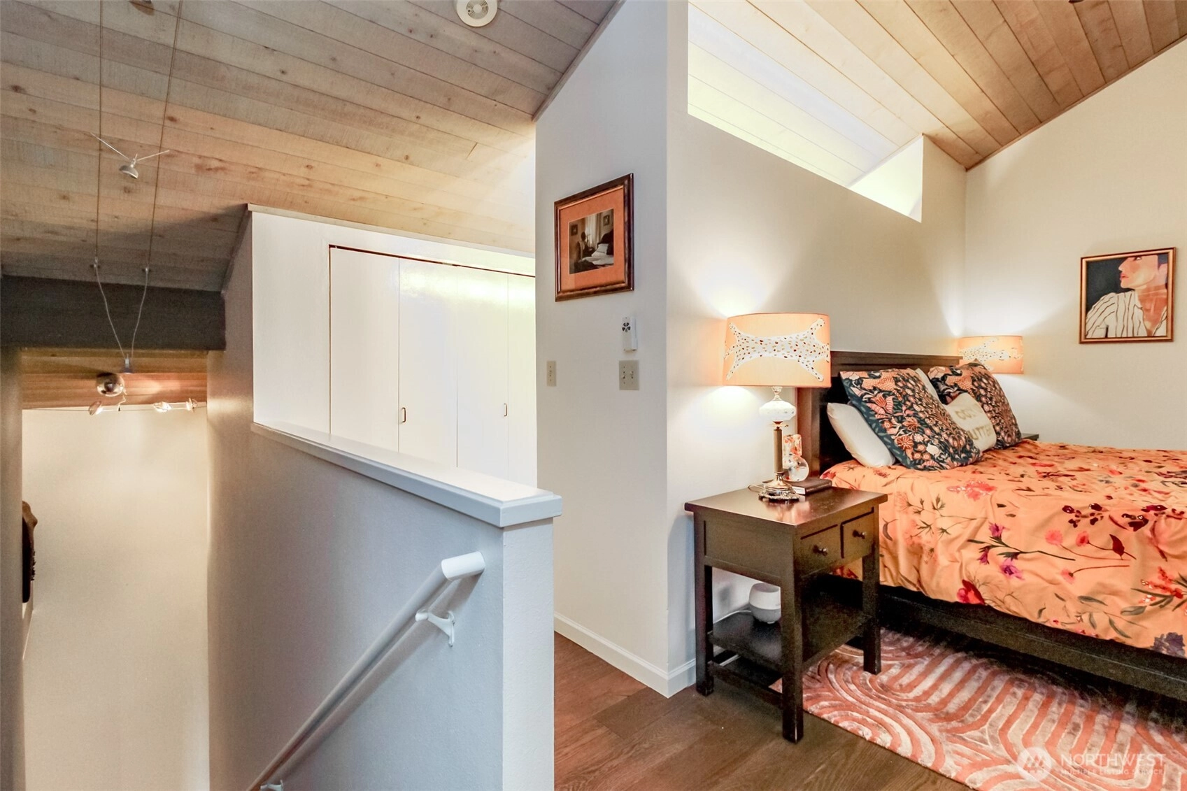 Motivated Seller! This quiet condo on the west slope of Queen Anne is amazing! It is truly special inside and out. It is a very cool, large, loft style unit in a unique building with a private entrance. It features large open indoor spaces with lots of trees and natural light to enjoy out of the ample windows and includes bathrooms and multi-use bonus nooks on both floors. The quiet west facing balcony feels like a tree house! The flow feel of the unit are exquisite. Nearby public transport, and shops make it very walk-able, but a dedicated parking spot and easy access to major roads and highways make it great for car commuters as well. Cyclists and nature lovers will appreciate the many nearby parks and proximity to the popular BG Trail.