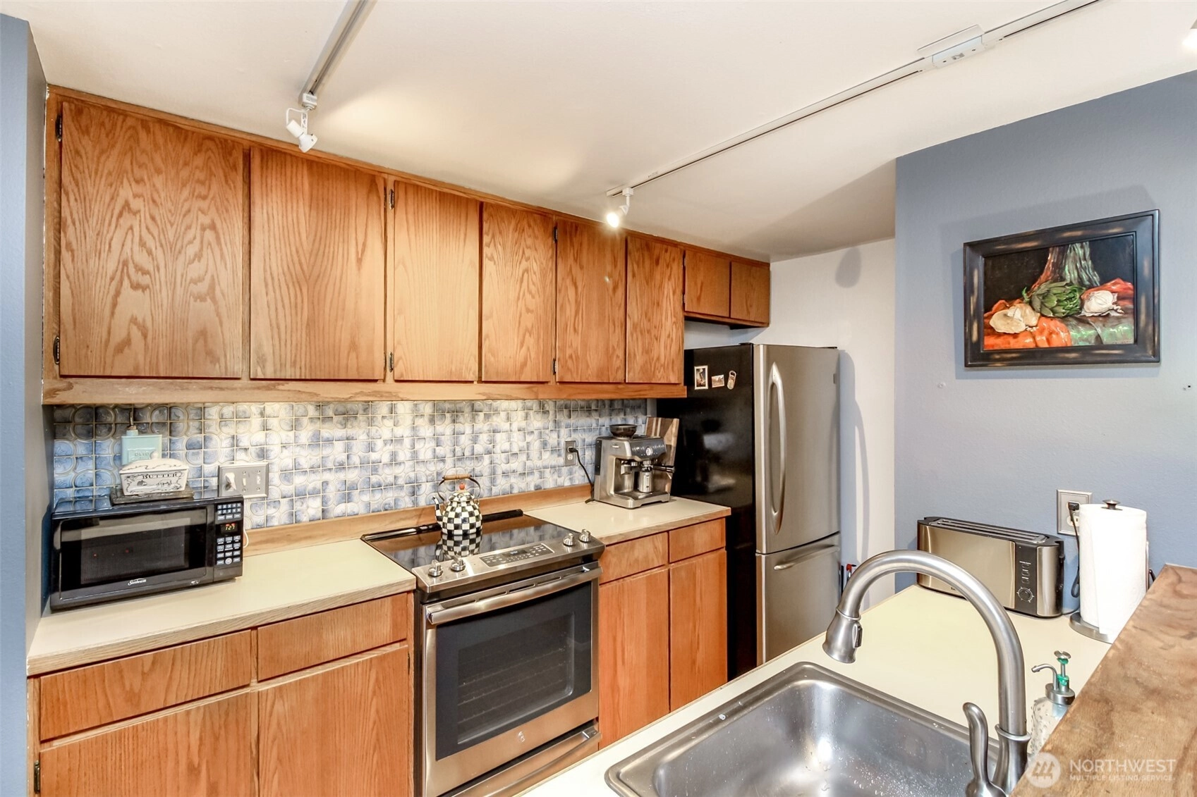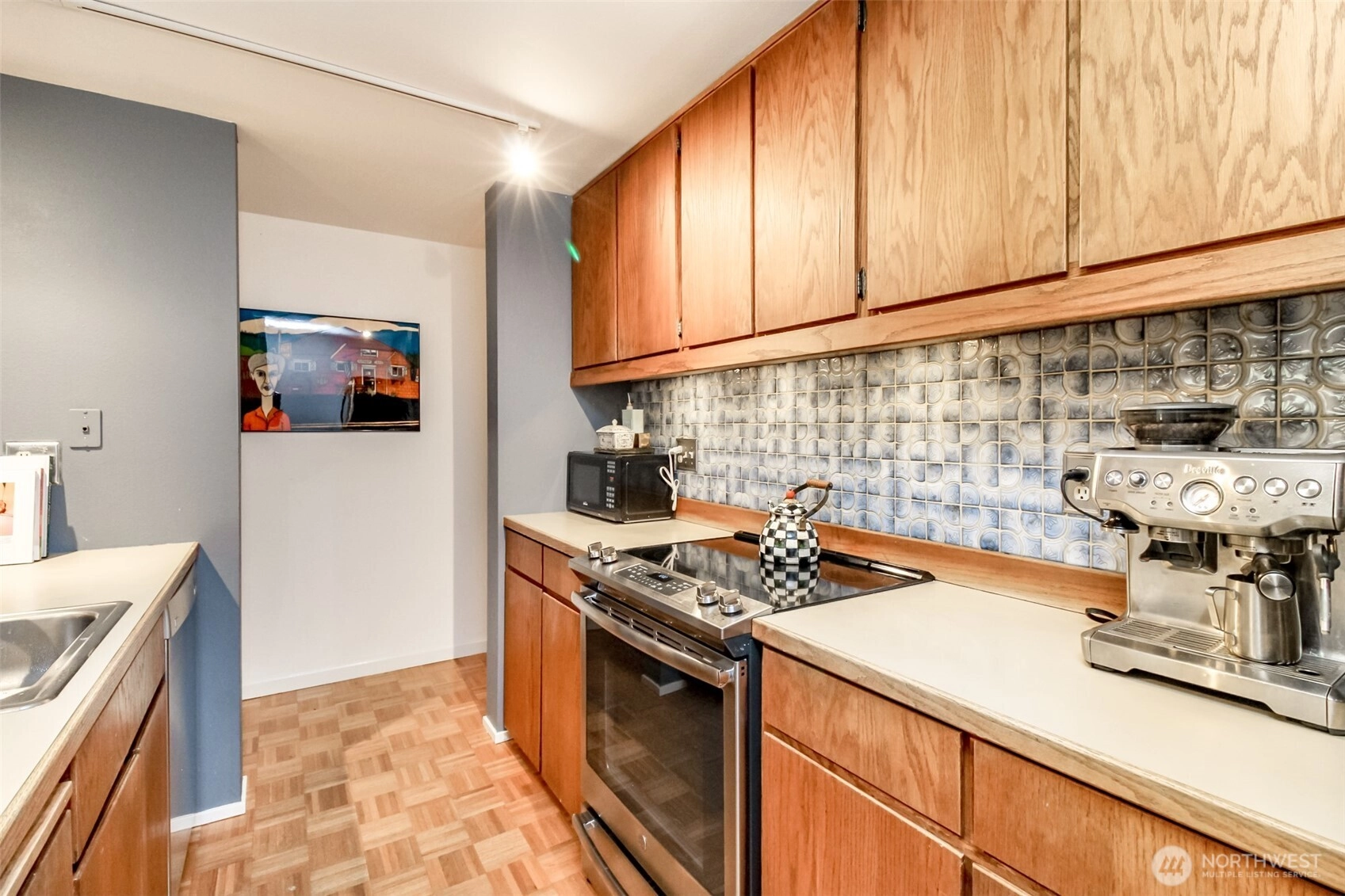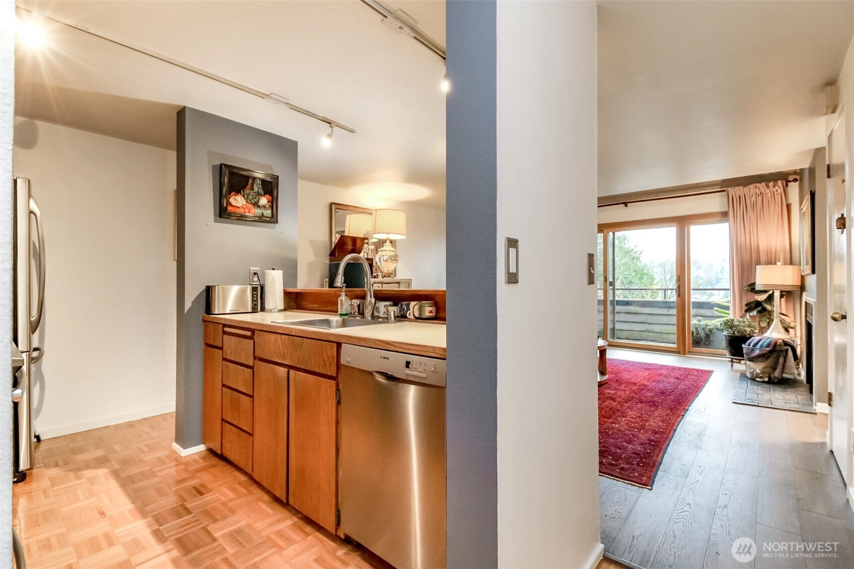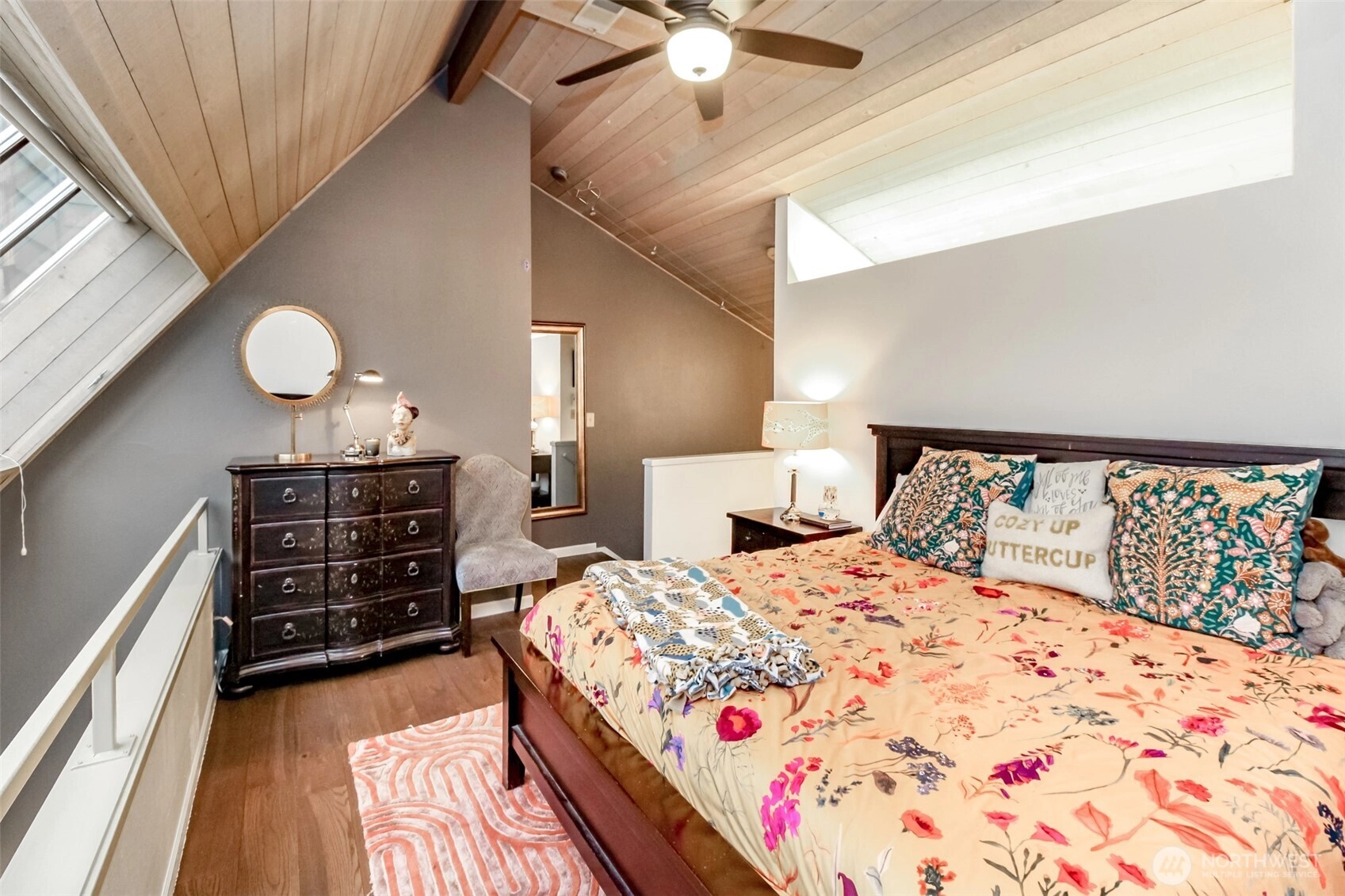 Motivated Seller! This quiet condo on the west slope of Queen Anne is amazing! It is truly special inside and out. It is a very cool, large, loft style unit in a unique building with a private entrance. It features large open indoor spaces with lots of trees and natural light to enjoy out of the ample windows and includes bathrooms and multi-use bonus nooks on both floors. The quiet west facing balcony feels like a tree house! The flow feel of the unit are exquisite. Nearby public transport, and shops make it very walk-able, but a dedicated parking spot and easy access to major roads and highways make it great for car commuters as well. Cyclists and nature lovers will appreciate the many nearby parks and proximity to the popular BG Trail.