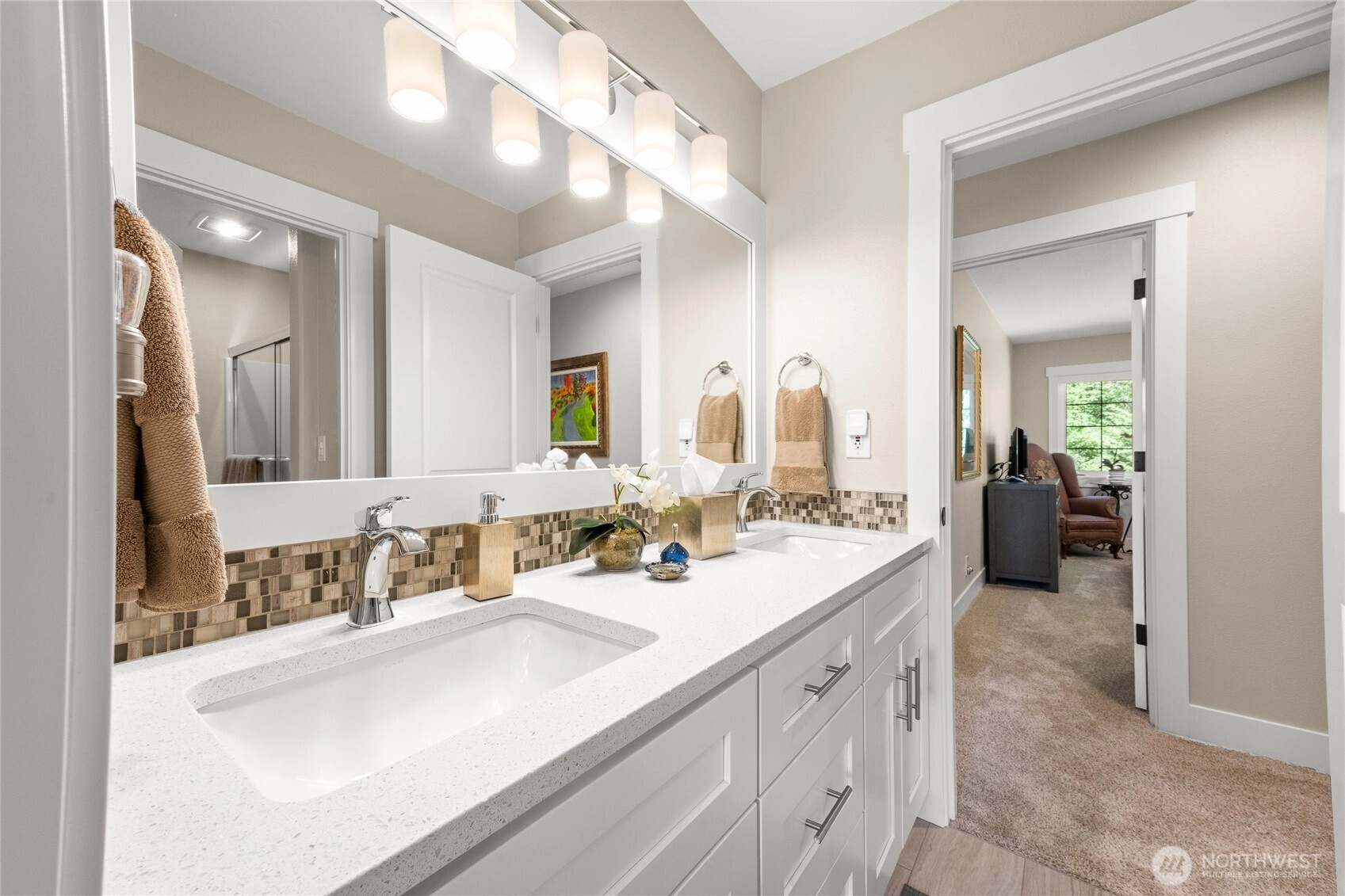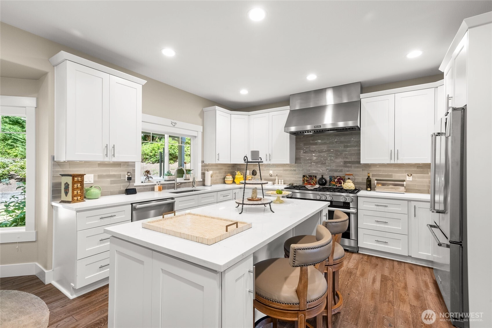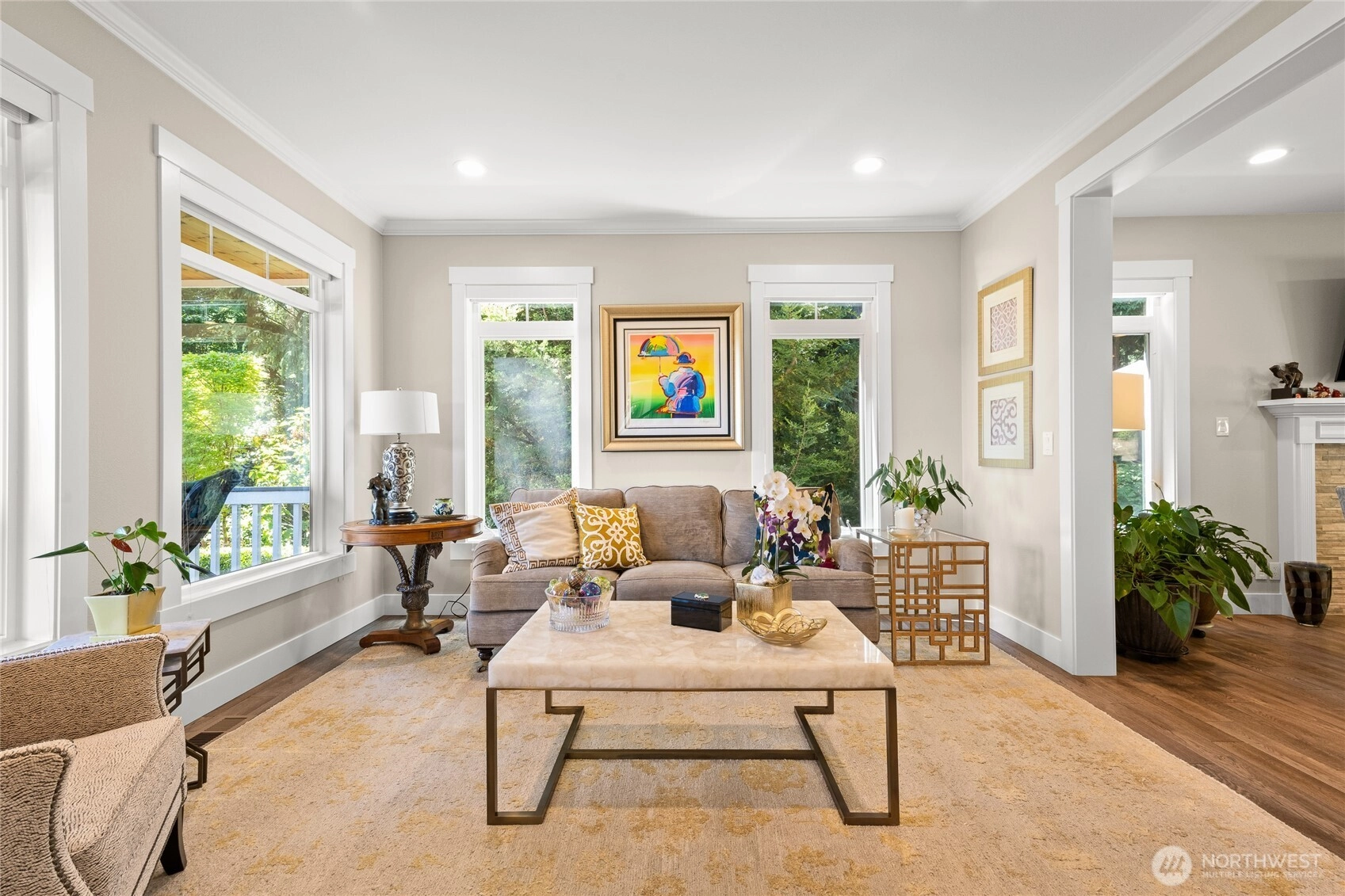 Rare opportunity in Eagle Crest, one of Gig Harbor’s most coveted gated communities. This stunning 4-BR, 3-BA home sits on a 0.64-acre hilltop lot with sweeping territorial views. Completely transformed in 2018, No expense was spared in this total luxury renovation featuring a chef’s kitchen, Miele 48" Range, quartz counters, premium appliances, and an expansive island that flows into the great room. Luxury in every detail reflects quality and sophistication. Outdoors, enjoy resort-style living with lush landscaping, a tranquil waterfall, and spectacular sunsets. Elegant finishes, updated systems, and spacious bedrooms create comfort and sophistication. Private yet minutes from downtown, this move-in ready home is truly exceptional.
