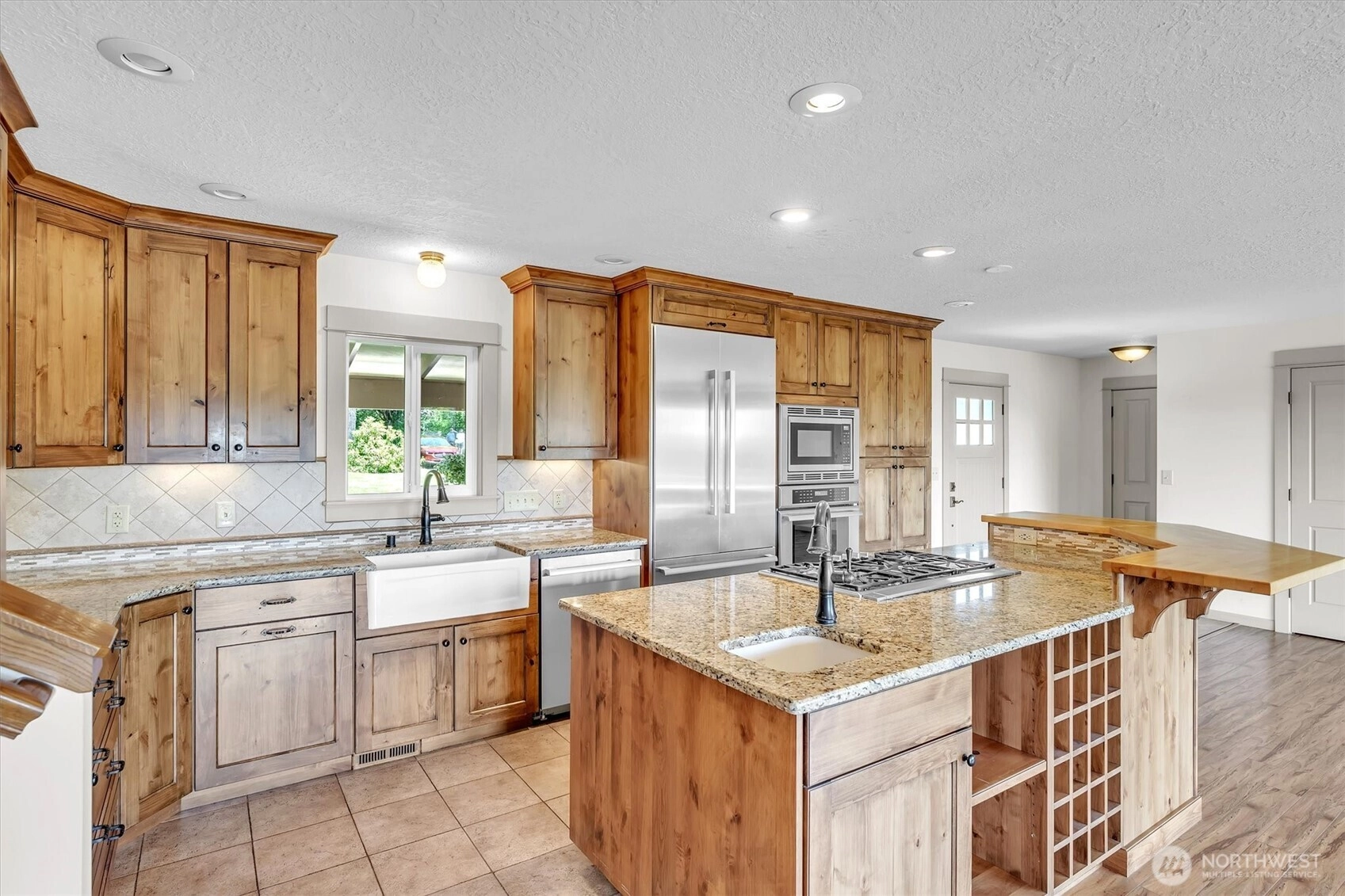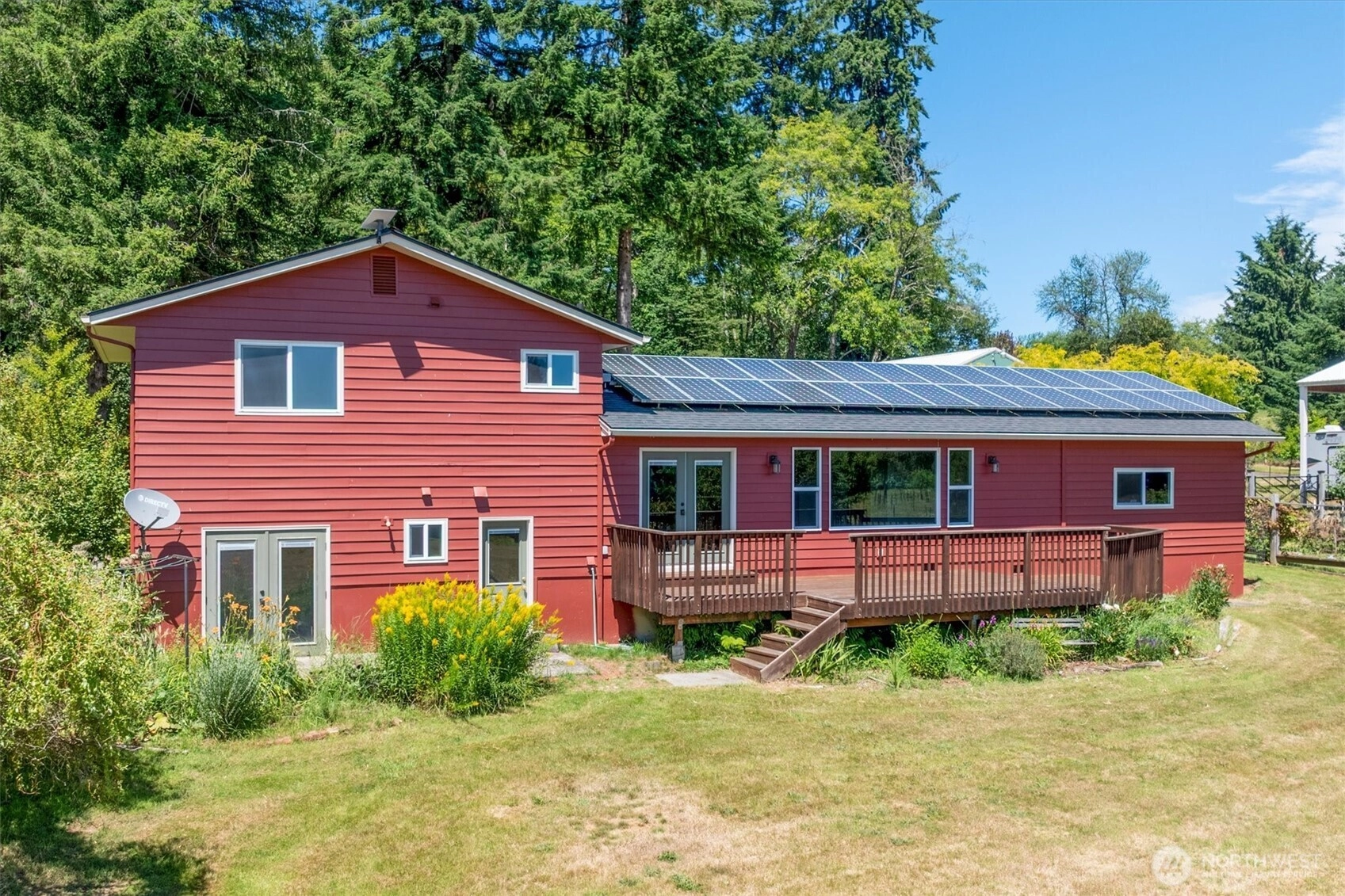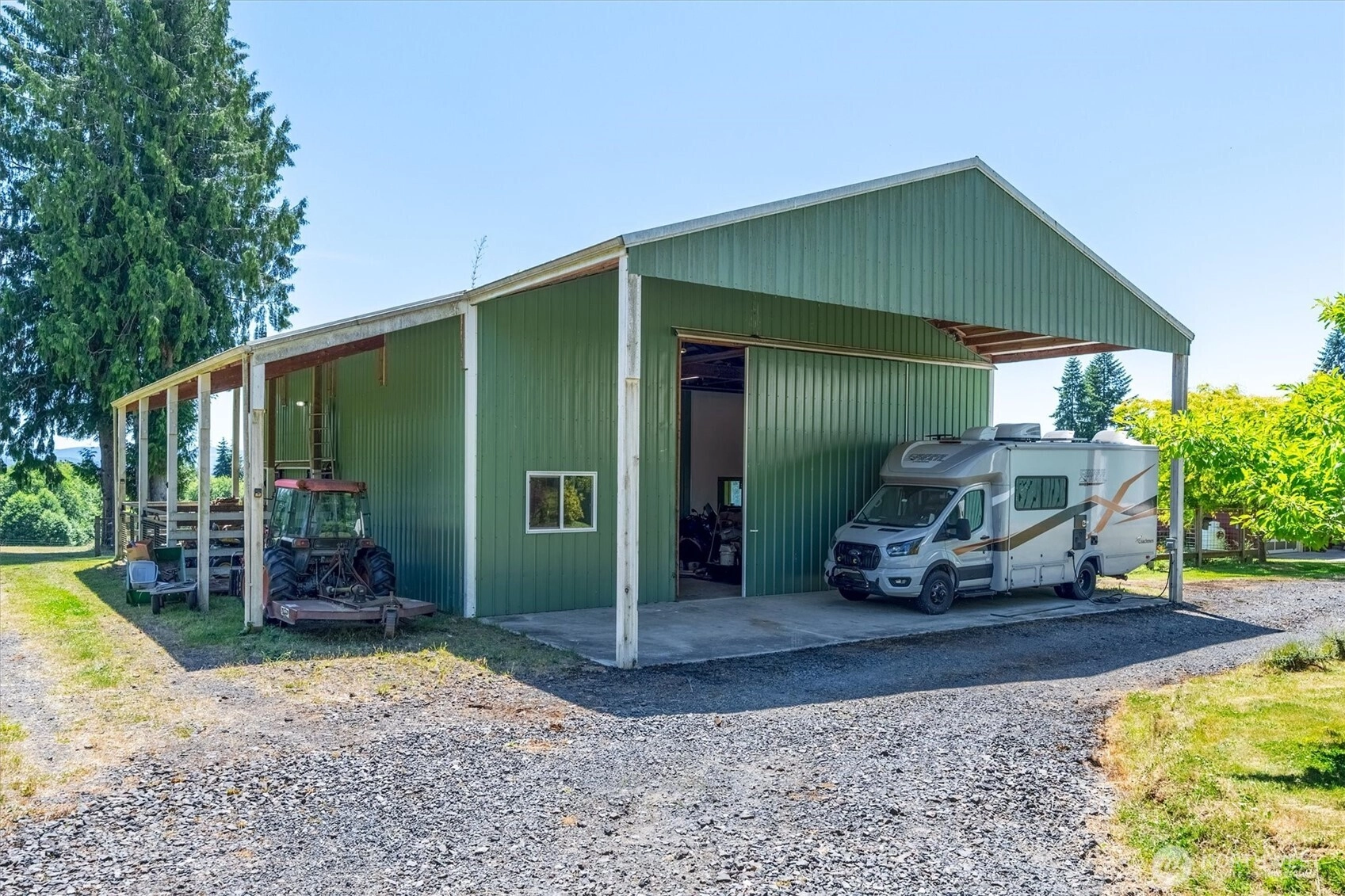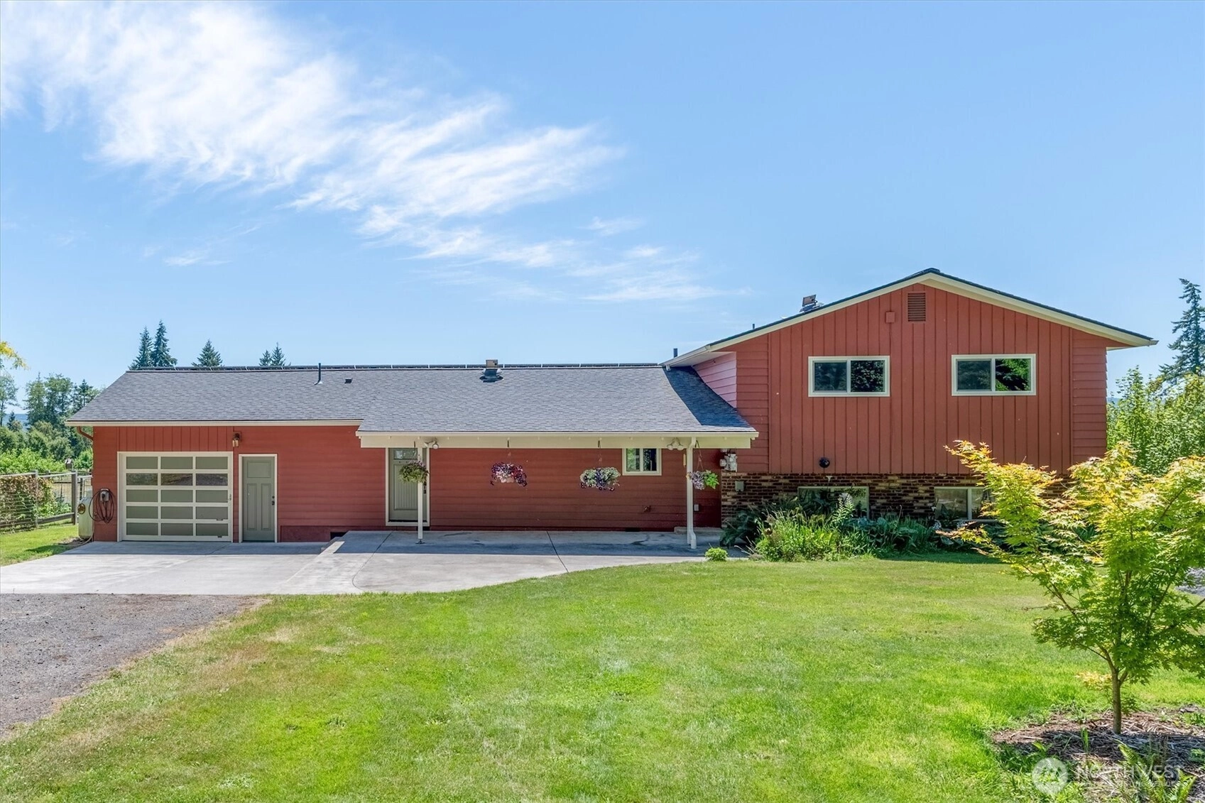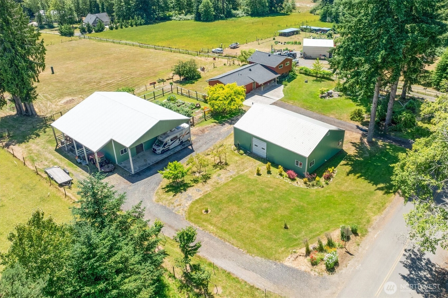 All the work is done & ready for new owners!One of a kind property on 5 FLAT acres! Includes TWO huge shops w/TWELVE car covered parking,RV carport & horse stalls with many uses! You'll love the thoughtfully re-modeled home w/open concept living & kitchen offering granite counters & island, tile floors, alder cabinets, farm sink, double oven & gas stove plus new laminate flooring and much more! Slider to peaceful deck to relax & admire the gorgeous pastures, wildlife & tall firs. Take the few stairs to the upper floor w/3 bedrooms & full bath w/inviting soak tub & WI shower. Downstairs offers a huge bonus room & 3/4 bath & laundry. Secluded sanctuary w/many fruit trees, fenced garden area, water to pastures and solar panels w/low electric.