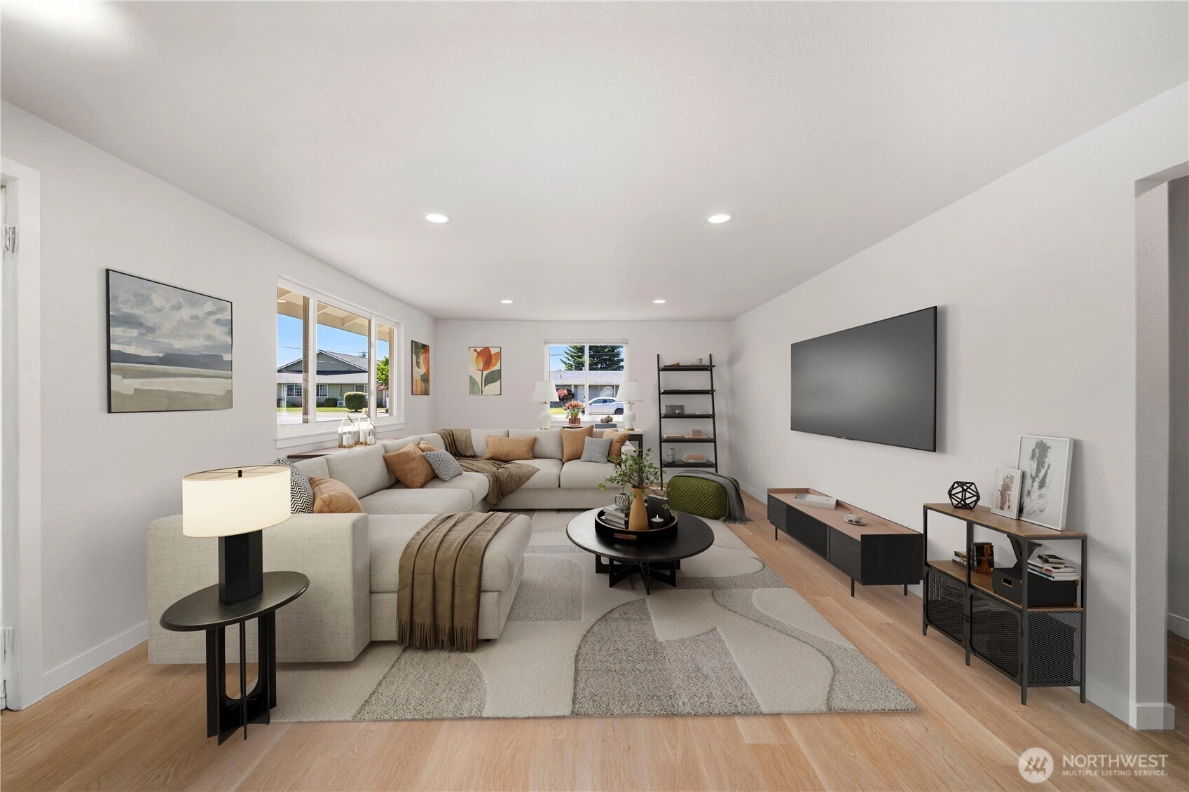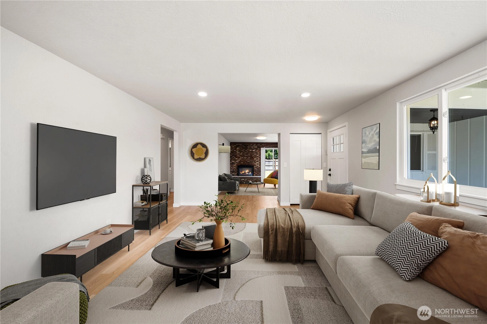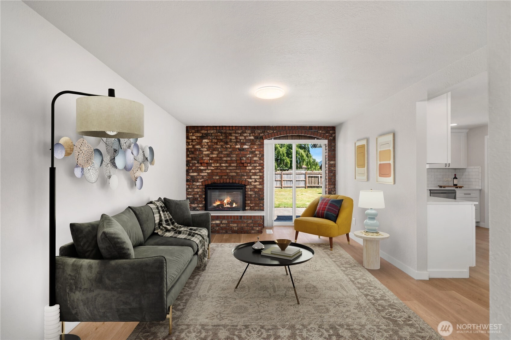 Fall in love with this stunningly updated 3 bed, 1.75 bath rambler in the heart of charming downtown Buckley! Bursting with curb appeal and modern finishes, this one-level gem is just steps from restaurants, trails, and parks. Inside, enjoy brand-new hard flooring, plush carpet, and a bright, open layout with a spacious living room, cozy family room, and electric fireplace. The gorgeous kitchen shines with subway tile and all appliances included. Stay comfortable year-round with recently a serviced heat pump and A/C, plus new plumbing, new hot water tank, new vapor barrier, and new crawlspace insulation. A finished bonus room with private entrance is perfect for an office or guest space. Huge fenced yard with patio and alley access!