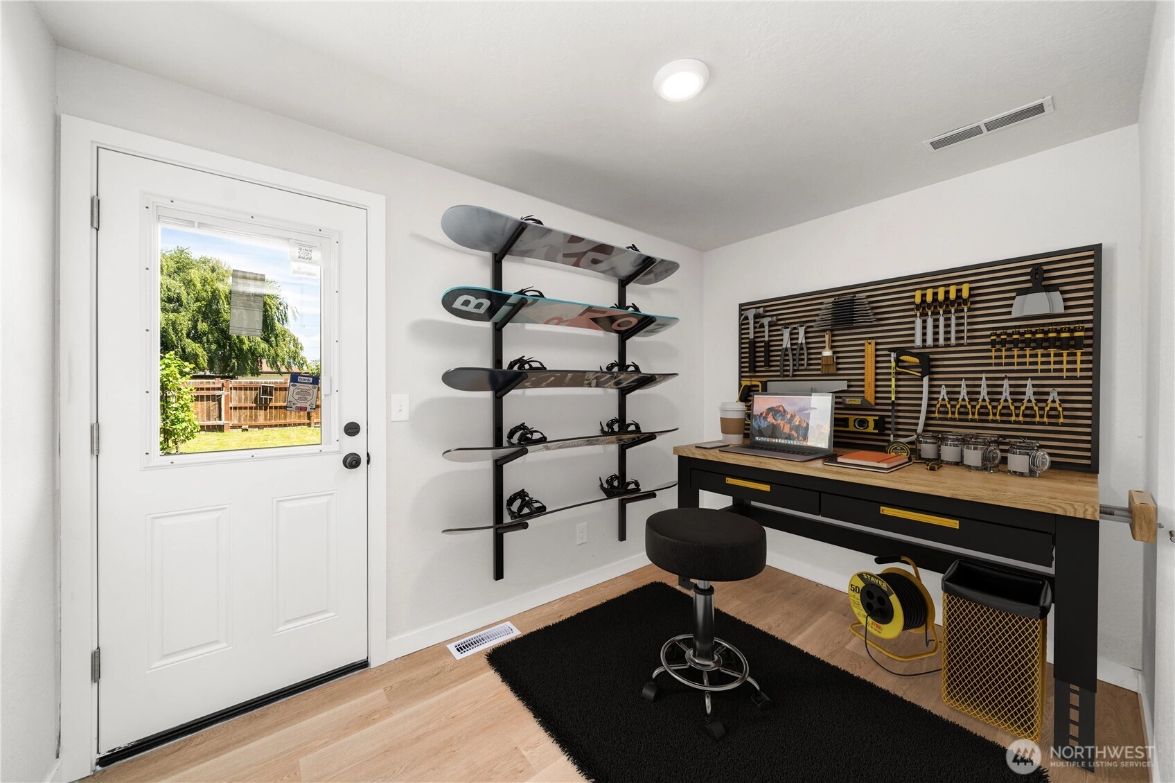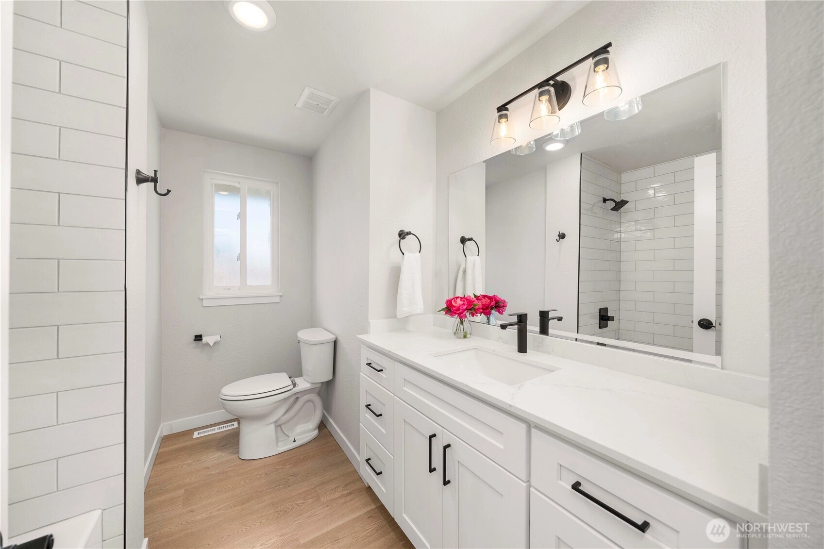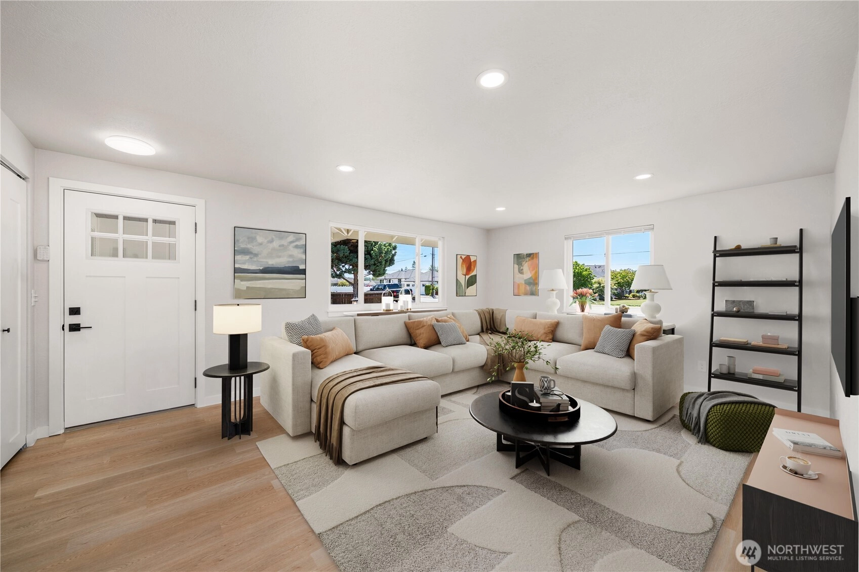 Fall in love with this stunningly updated 3 bed, 1.75 bath rambler in the heart of charming downtown Buckley! Bursting with curb appeal and modern finishes, this one-level gem is just steps from restaurants, trails, and parks. Inside, enjoy brand-new hard flooring, plush carpet, and a bright, open layout with a spacious living room, cozy family room, and electric fireplace. The gorgeous kitchen shines with subway tile and all appliances included. Stay comfortable year-round with recently a serviced heat pump and A/C, plus new plumbing, new hot water tank, new vapor barrier, and new crawlspace insulation. A finished bonus room with private entrance is perfect for an office or guest space. Huge fenced yard with patio and alley access!