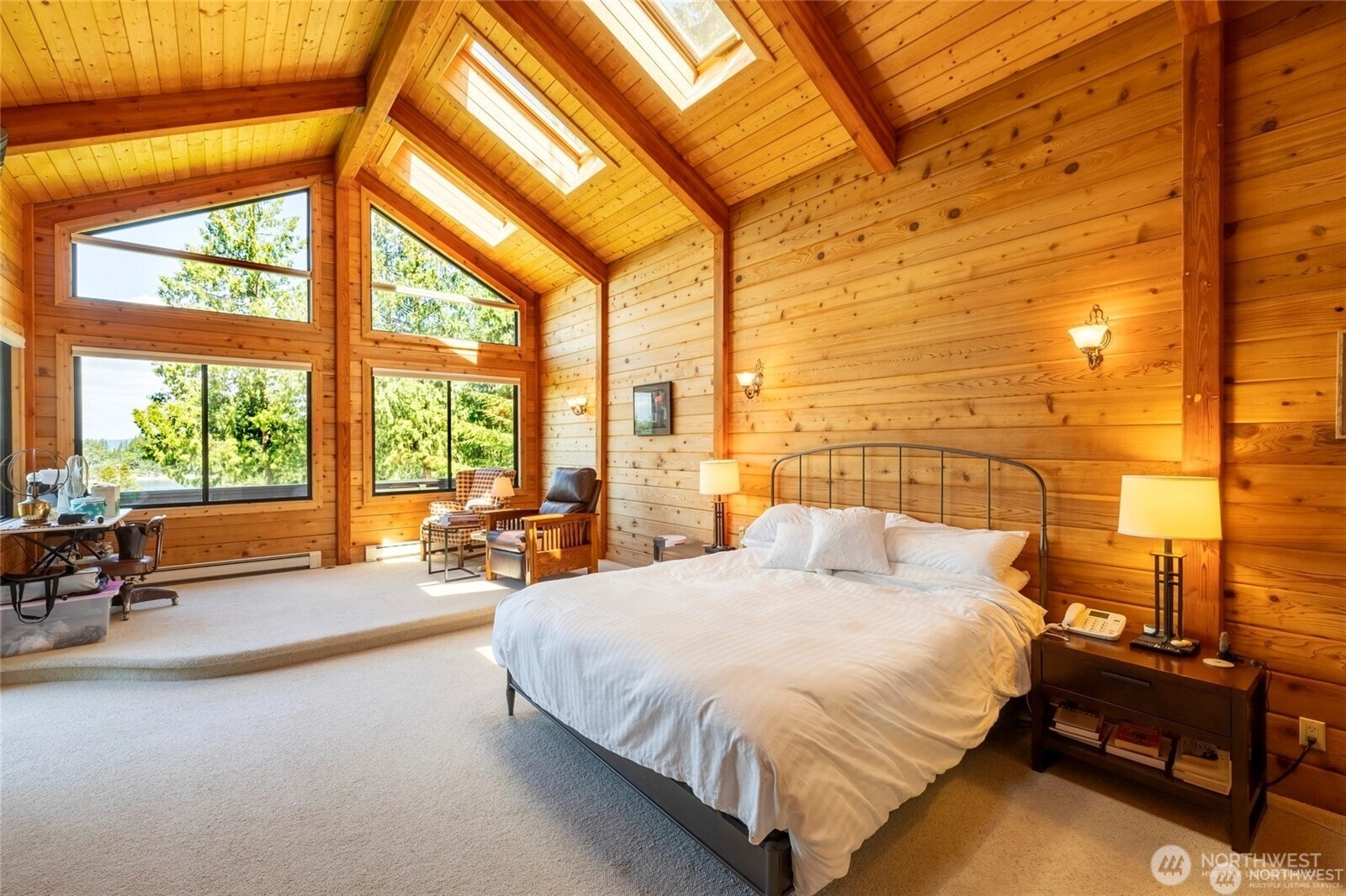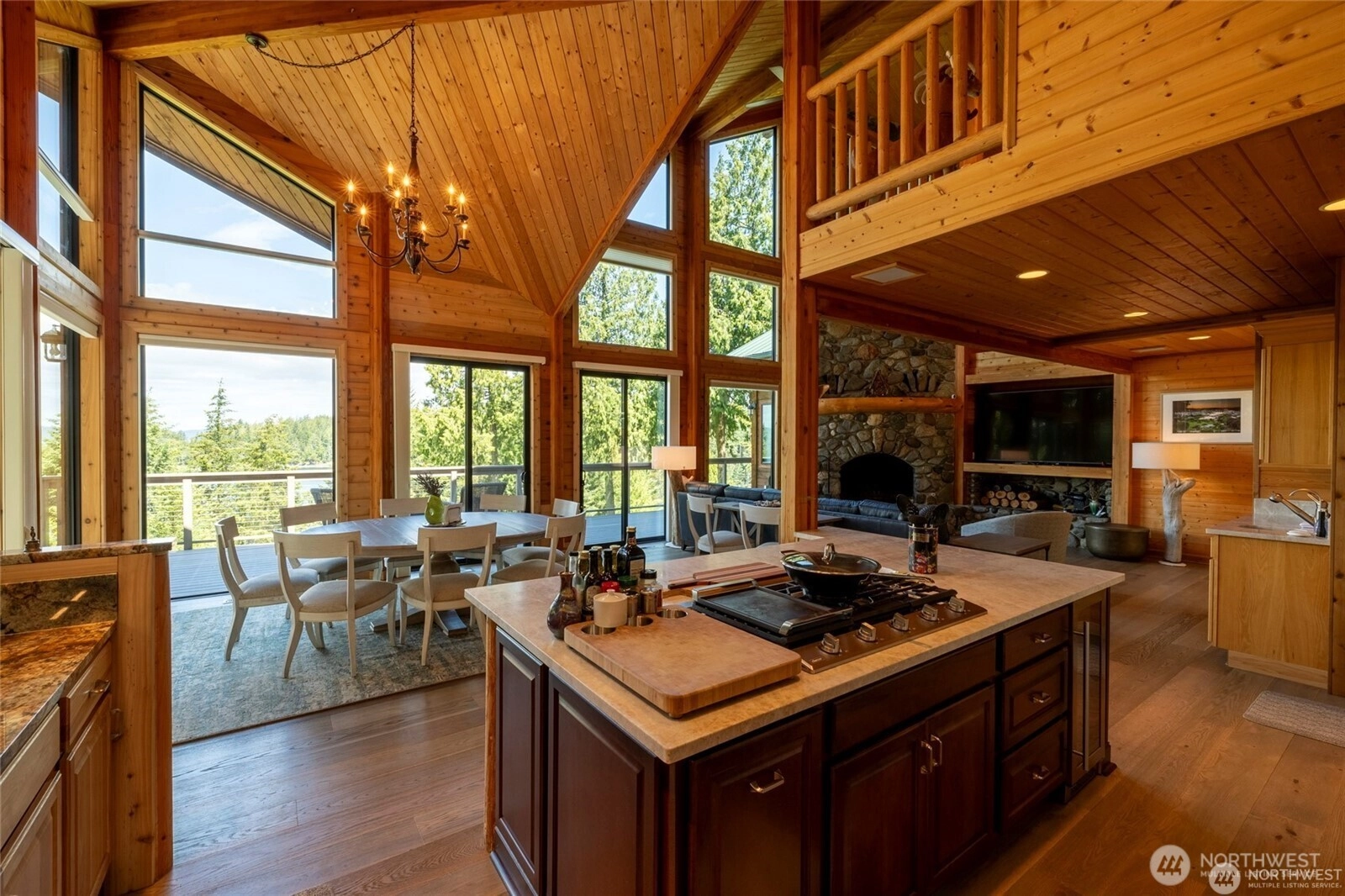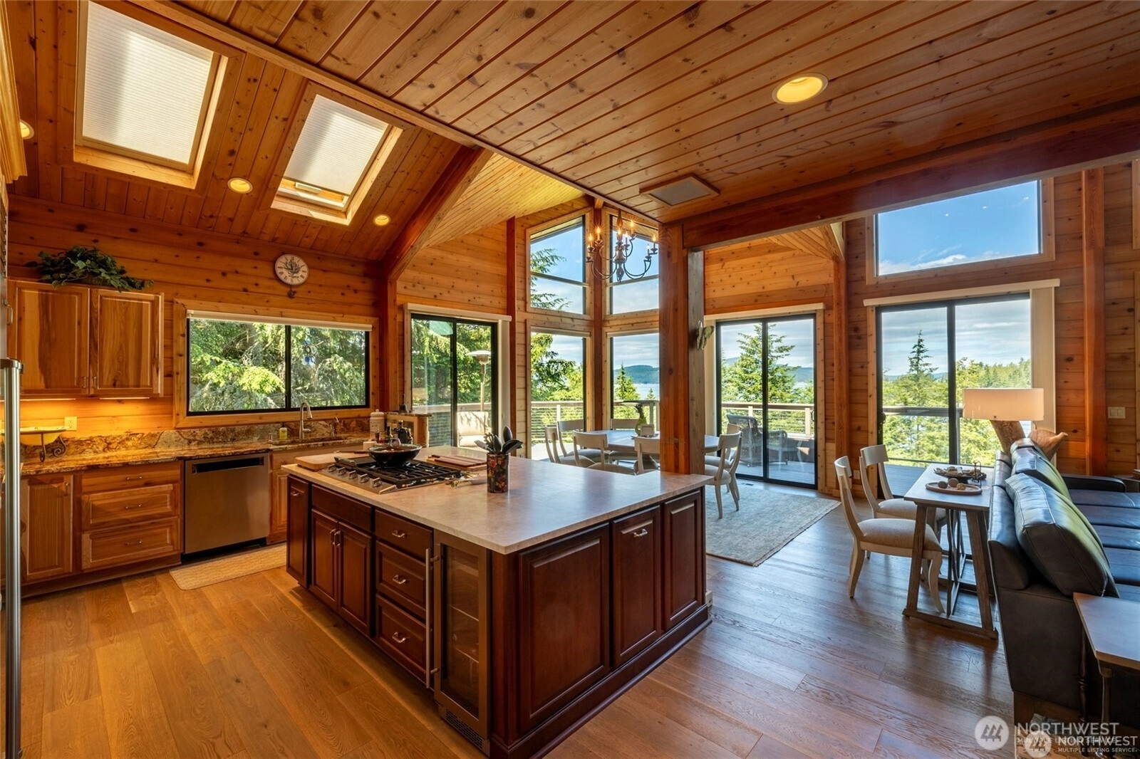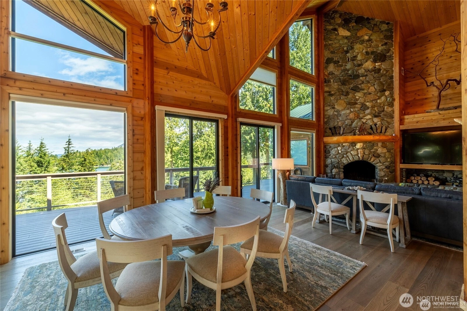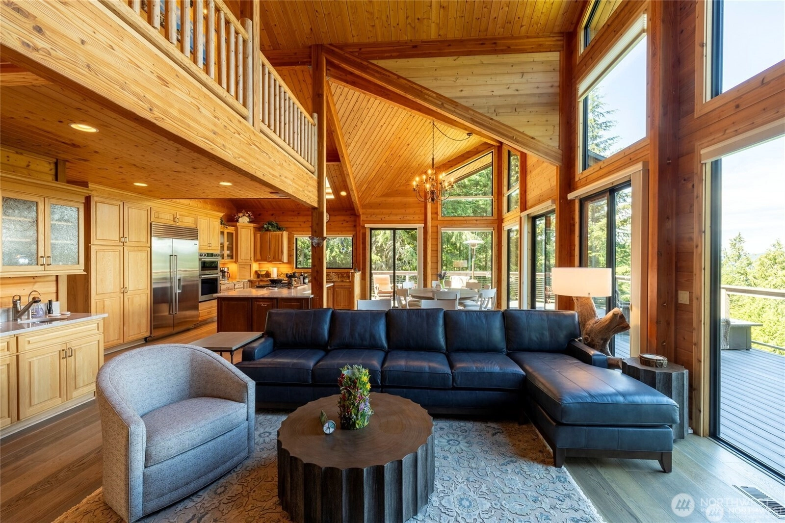 Unparalleled luxury and tranquility in this 4121 sqft turn-key Blakely island home. Step into refined comfort with an entry leading to an open floor plan perfect for entertaining. The main level primary suite features skylights a custom fireplace full bath and direct access to the wraparound deck for breathtaking sunsets and seamless indoor-outdoor living. The loft-style upper level includes two bedrooms a bathroom storage and a lounge area. Downstairs boasts an entertainer's dream with theater seating a full bar and a wine room while the office flows into a covered patio with heat lamps for year-round comfort. Enjoy San Juan living at its best with private beaches scenic trails a beautiful lake and access via the airfield or marina.