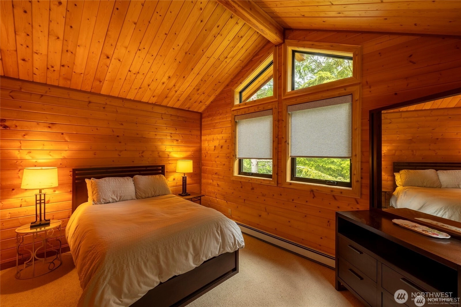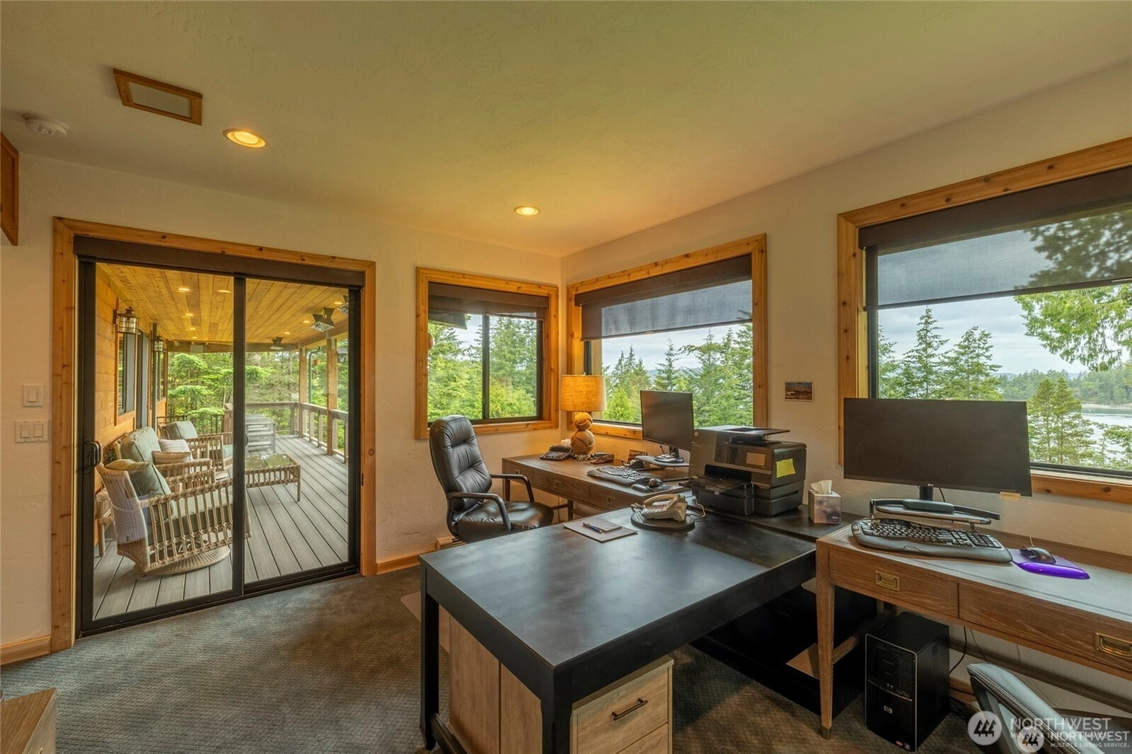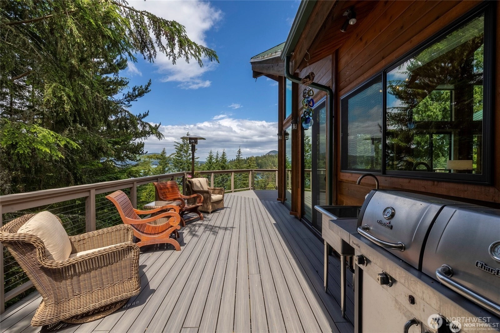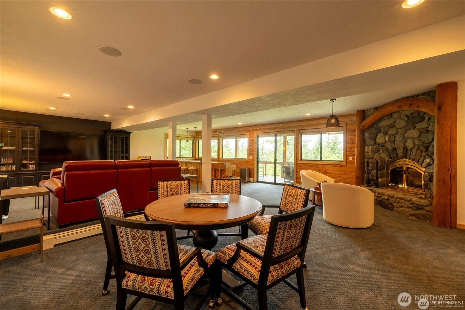 Unparalleled luxury and tranquility in this 4121 sqft turn-key Blakely island home. Step into refined comfort with an entry leading to an open floor plan perfect for entertaining. The main level primary suite features skylights a custom fireplace full bath and direct access to the wraparound deck for breathtaking sunsets and seamless indoor-outdoor living. The loft-style upper level includes two bedrooms a bathroom storage and a lounge area. Downstairs boasts an entertainer's dream with theater seating a full bar and a wine room while the office flows into a covered patio with heat lamps for year-round comfort. Enjoy San Juan living at its best with private beaches scenic trails a beautiful lake and access via the airfield or marina.