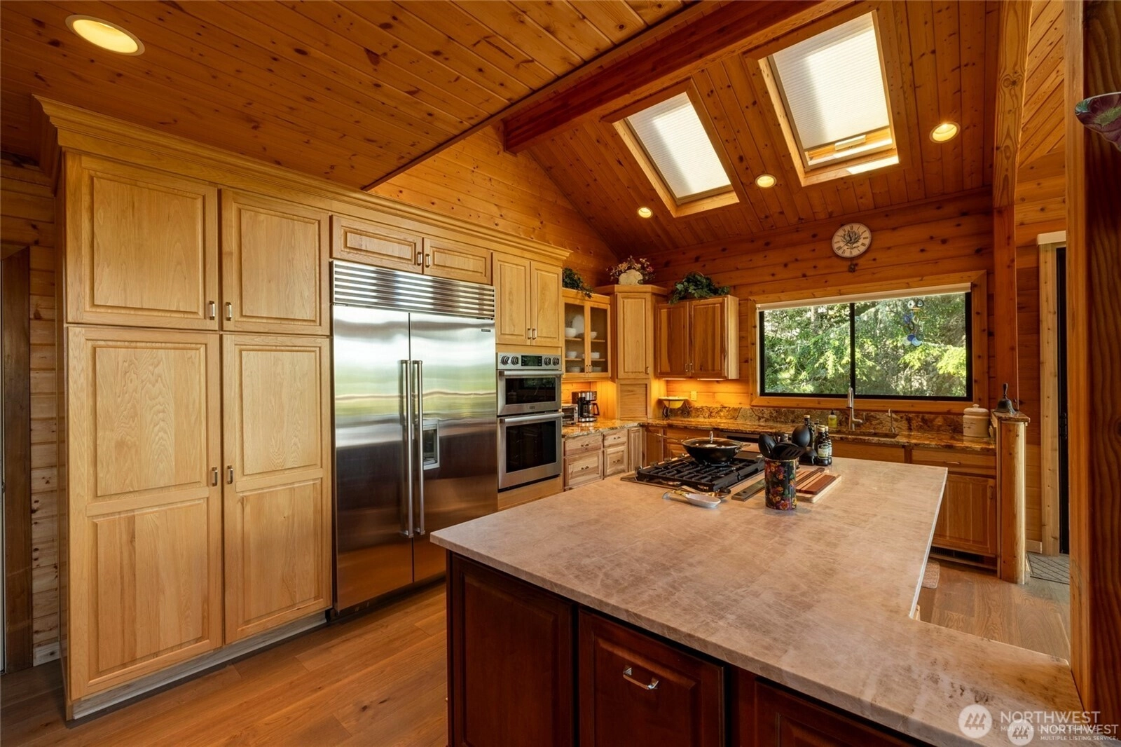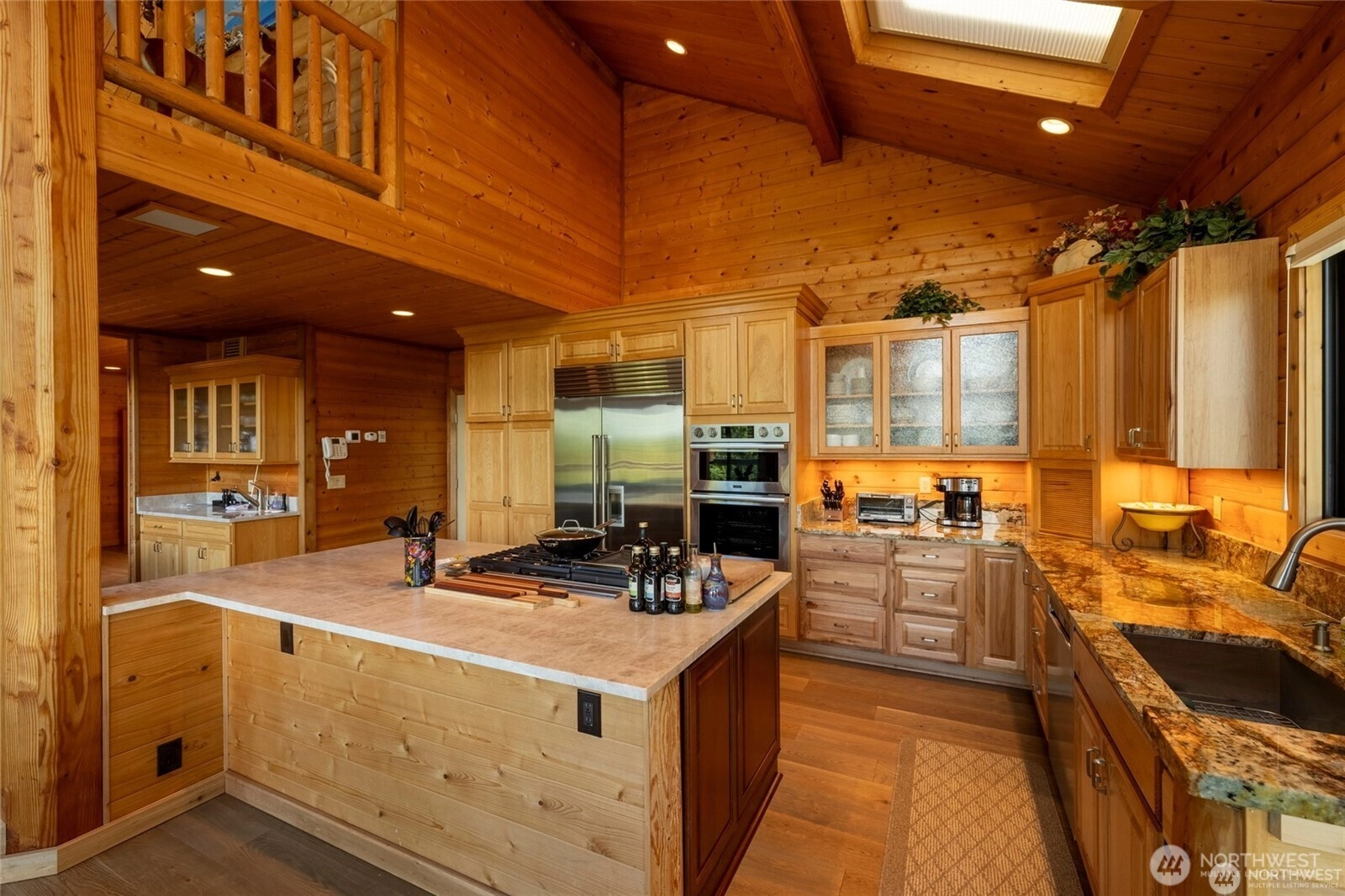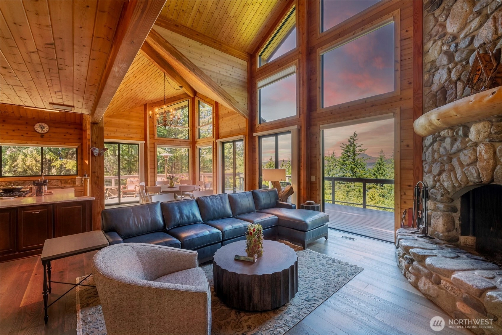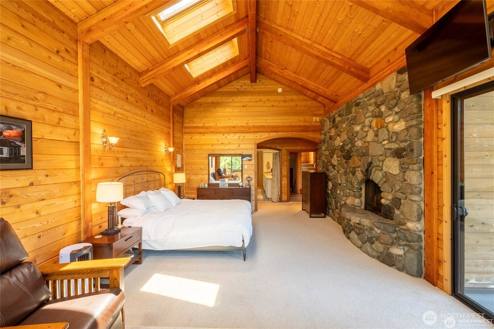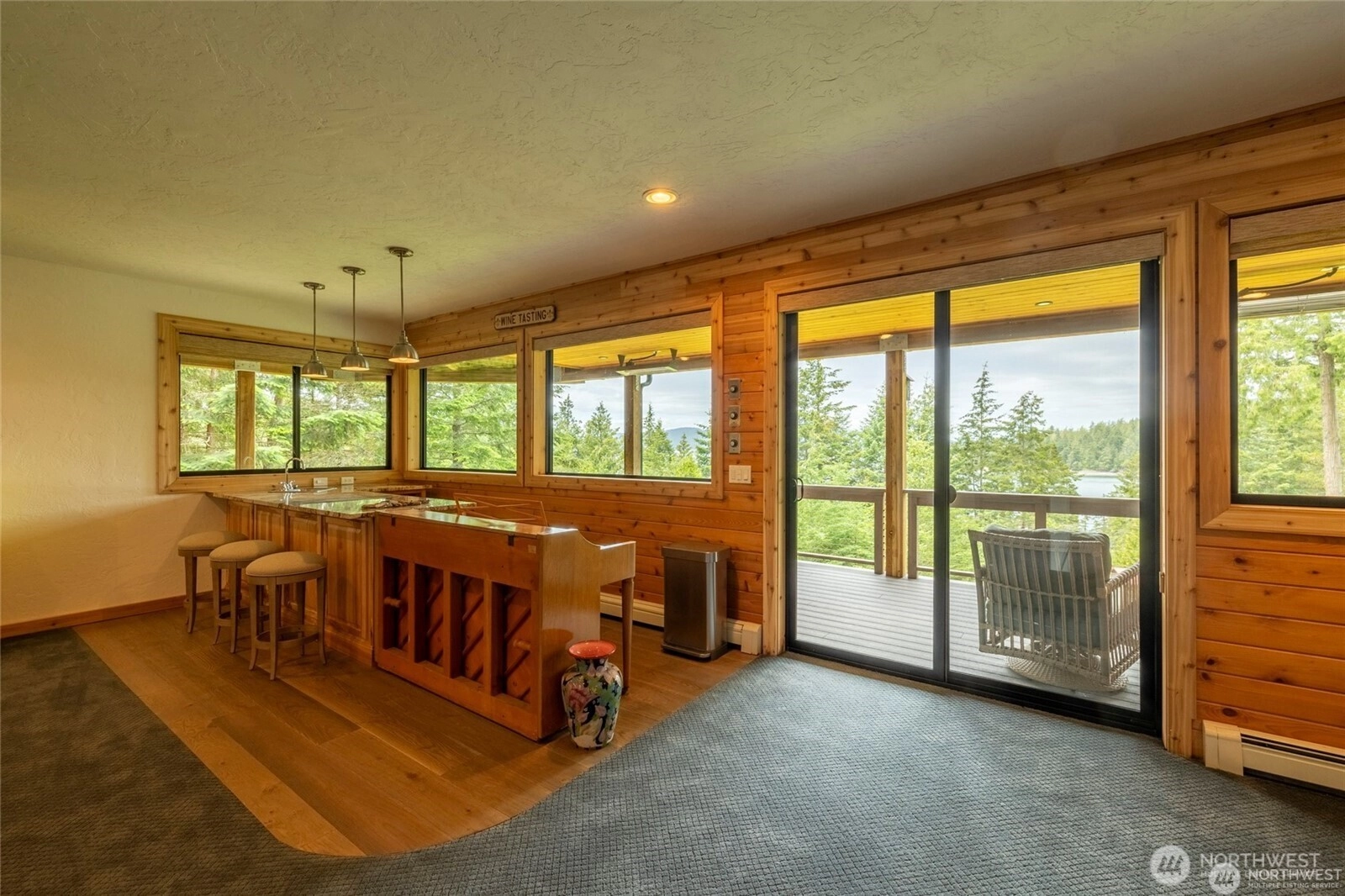 Unparalleled luxury and tranquility in this 4121 sqft turn-key Blakely island home. Step into refined comfort with an entry leading to an open floor plan perfect for entertaining. The main level primary suite features skylights a custom fireplace full bath and direct access to the wraparound deck for breathtaking sunsets and seamless indoor-outdoor living. The loft-style upper level includes two bedrooms a bathroom storage and a lounge area. Downstairs boasts an entertainer's dream with theater seating a full bar and a wine room while the office flows into a covered patio with heat lamps for year-round comfort. Enjoy San Juan living at its best with private beaches scenic trails a beautiful lake and access via the airfield or marina.