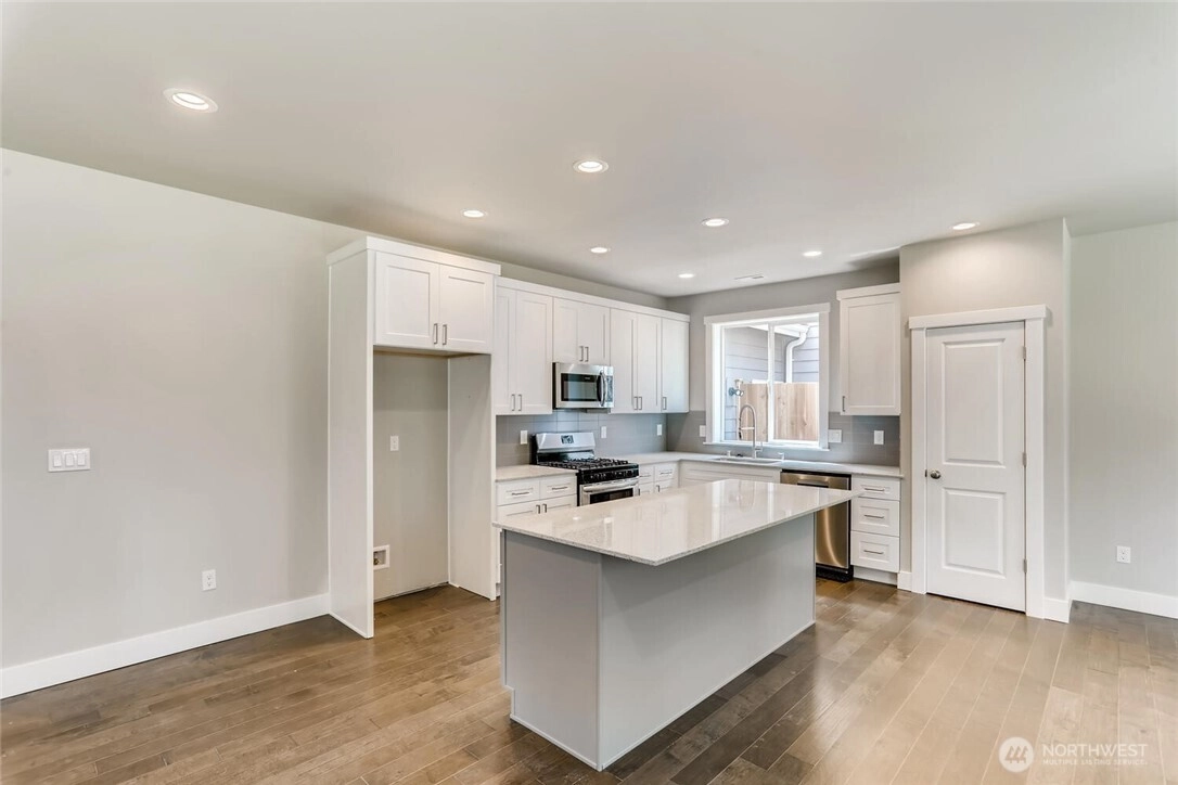Affordable new construction in a great close-in location close to schools, shopping, and freeway access. Extensive hardwood floors, quartz counters in kitchen and all bathrooms, pet friendly HUGE/LEVEL rear yard with over 7800+ sq. ft. lot. So rare to find in a new home. Primary suite offers double doors, dual vanity bath with tile shower and soaking tub plus walk-in closet. Very low HOA dues . NO living space attached. This is quality you don't find in this price range.