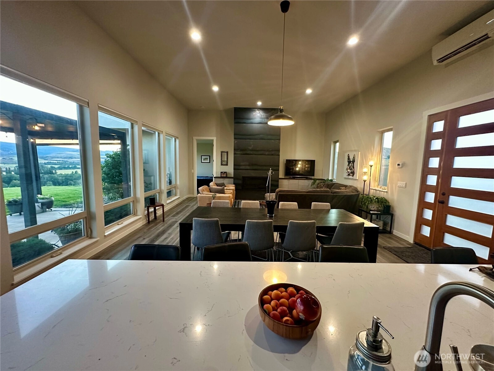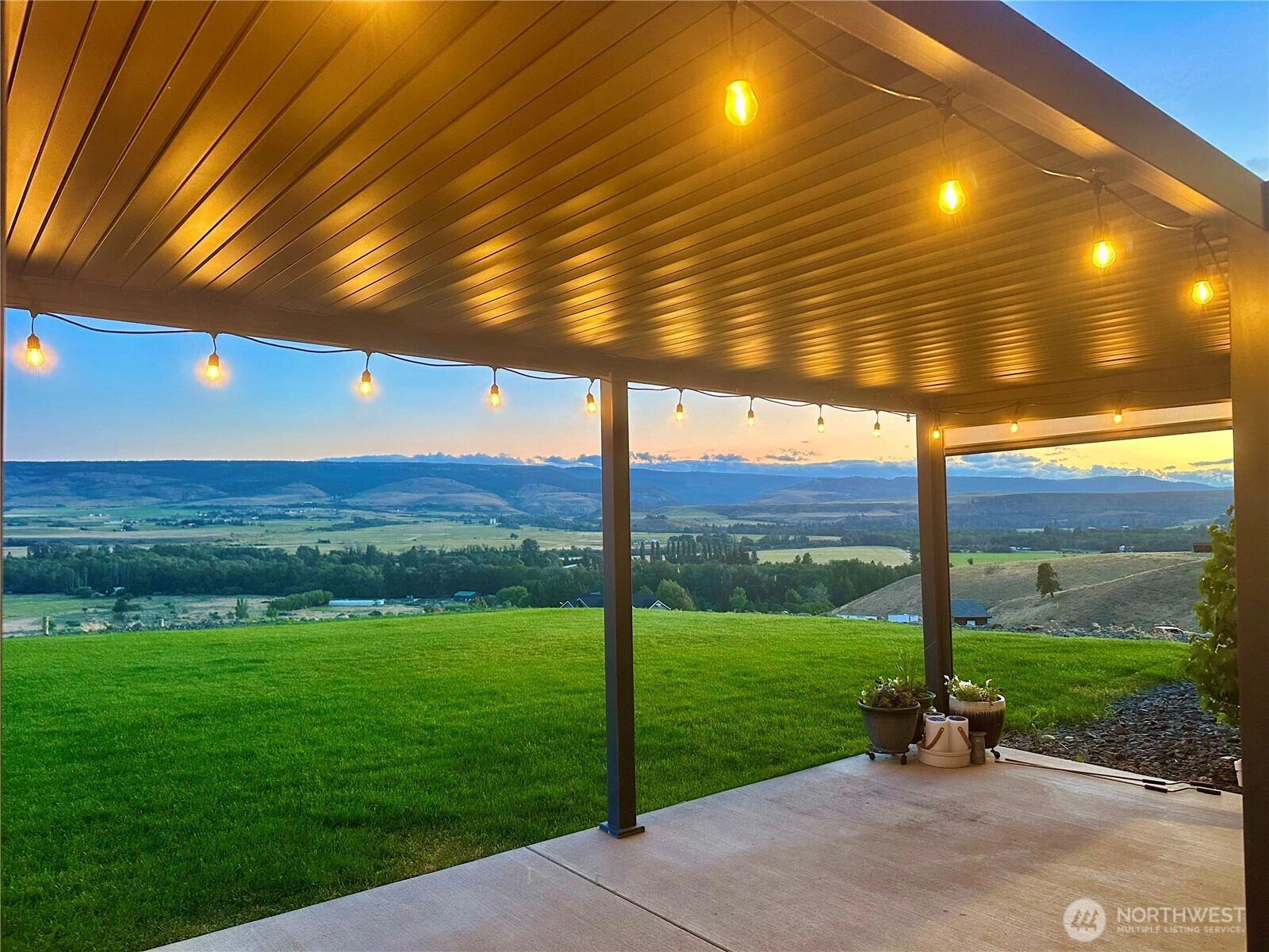 Stunning modern home over five acres in picturesque Ellensburg Ranches neighborhood off Hwy. 10 above the Yakima River. The courtyard entry welcomes you to the open great room concept floor plan with 12' ceilings, and a wall of windows w/breathtaking views. Efficient in-floor radiant heat and a mini-split/AC system. Gourmet kitchen w/huge island, SS appliances, and Bellmont Cabinetry. Master suite w/walk-in closet, walk-in shower, and double vanity. 20 tree orchard, Two 50'X25' green houses w/concrete foundation, 8 raised beds. Luxury chicken coop. 4 bay 25'X40' tractor shed. RV pad w/50 amp and water. Self watering lawn, garden, greenhouses raised beds and front entry. Roughly 3.5 acres of the 5.3 fully fenced. Seller is licensed Realtor.