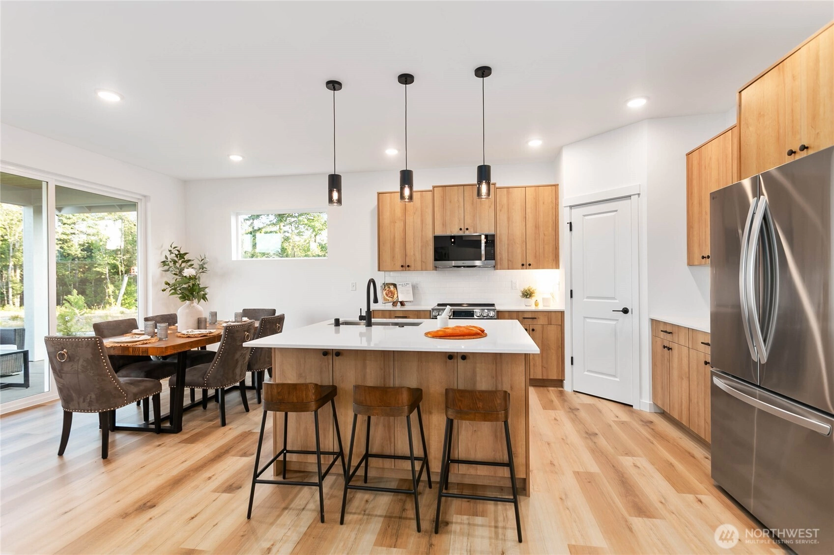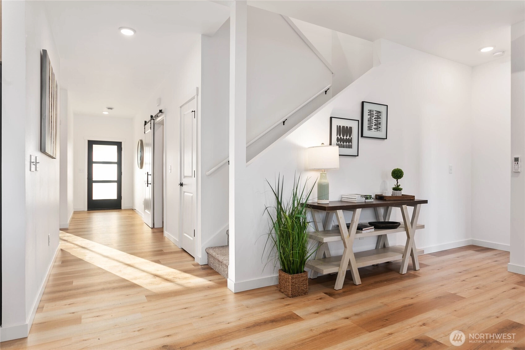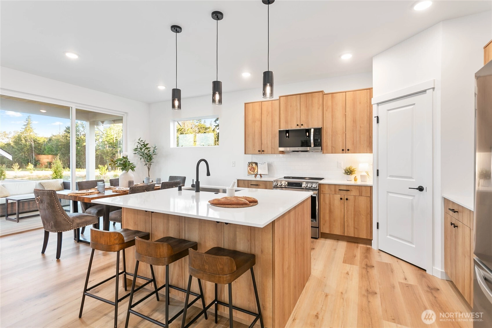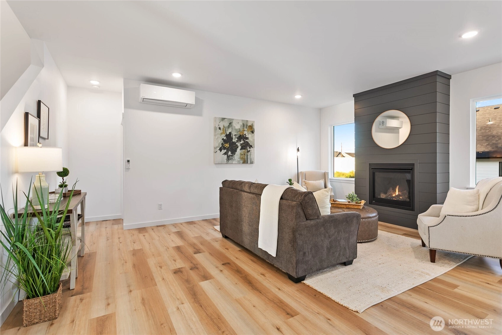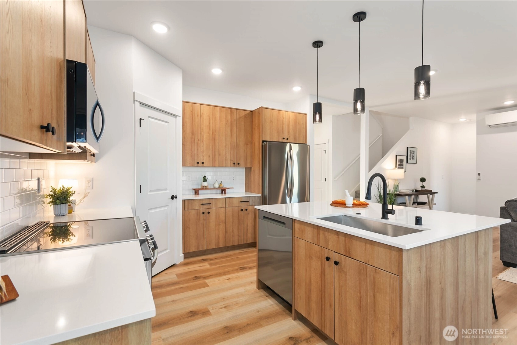 Experience modern living at its finest in the heart of Blaine's vibrant community! This beautifully crafted 4-bedroom, 3-bath home is designed with sleek finishes for ultimate comfort. Inside, you'll find LVP flooring, elegant quartz countertops, and soft-close cabinetry throughout. The kitchen boasts sleek brushed black fixtures, stainless steel appliances, and a spacious walk-in pantry. The serene primary bath features a floor-to-ceiling tile shower and a walk-in closet. Relax by the propane gas fireplace in the inviting living area. The primary bedroom and one additional bedroom, perfect as an office, are conveniently located on the main floor. *Enjoy savings with our Preferred Lender: .75% Lender Credit and $5,000 Seller Credit.