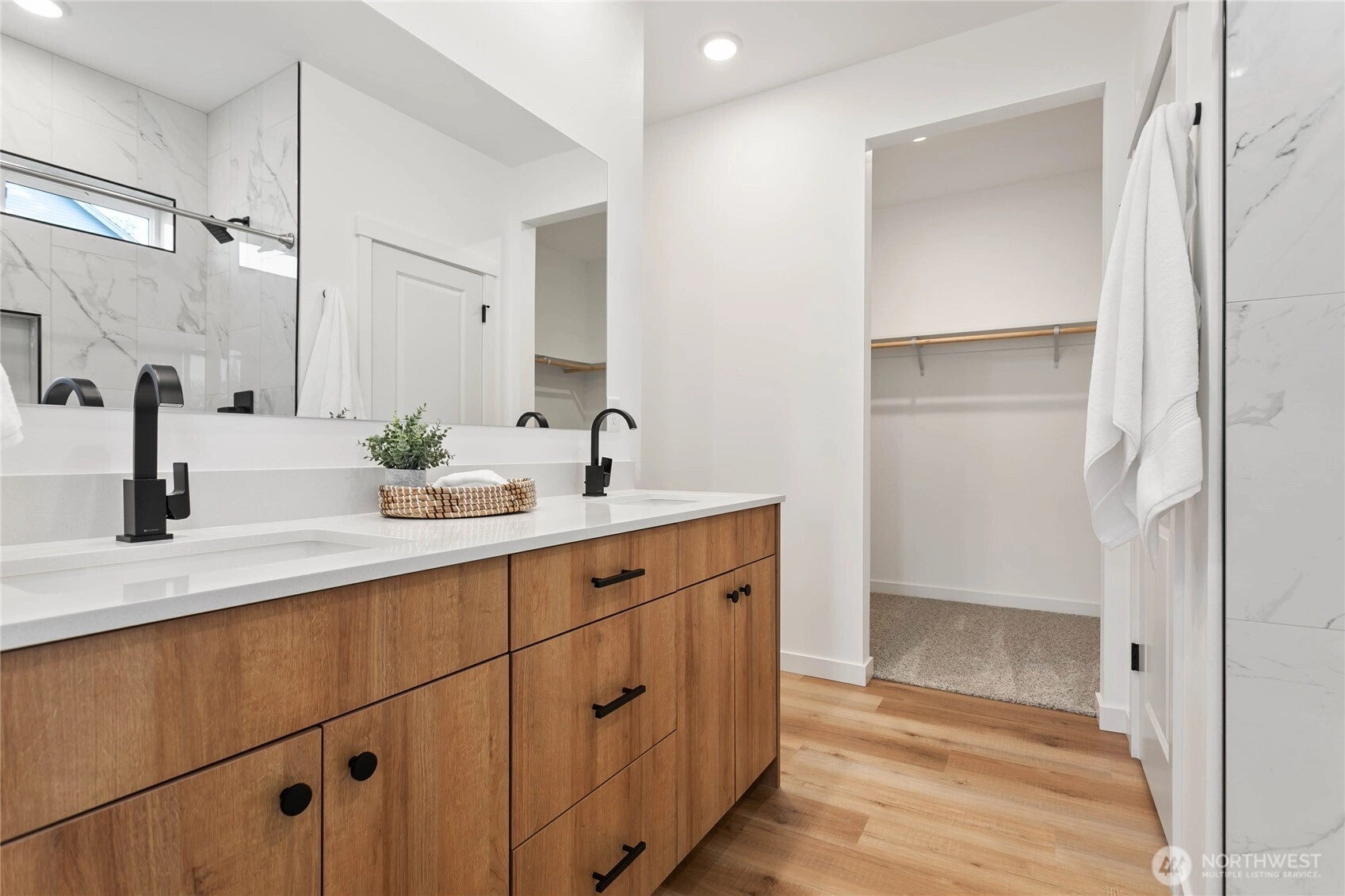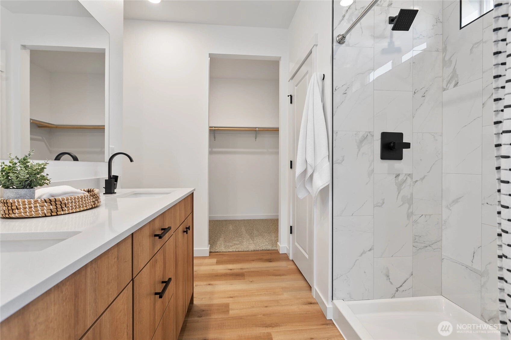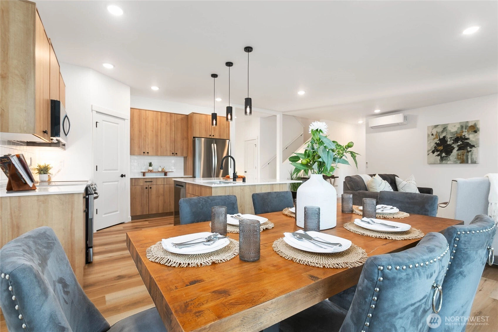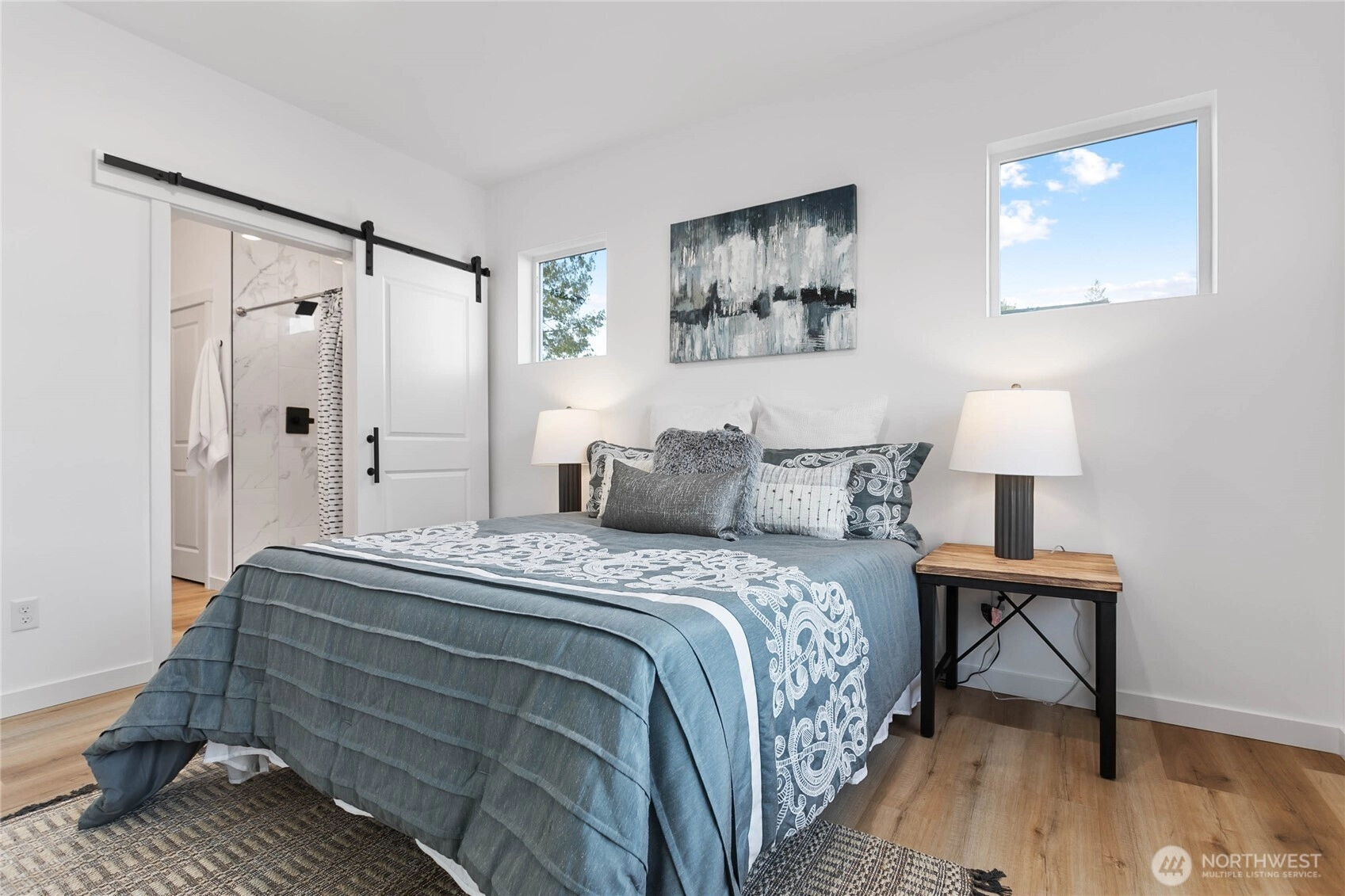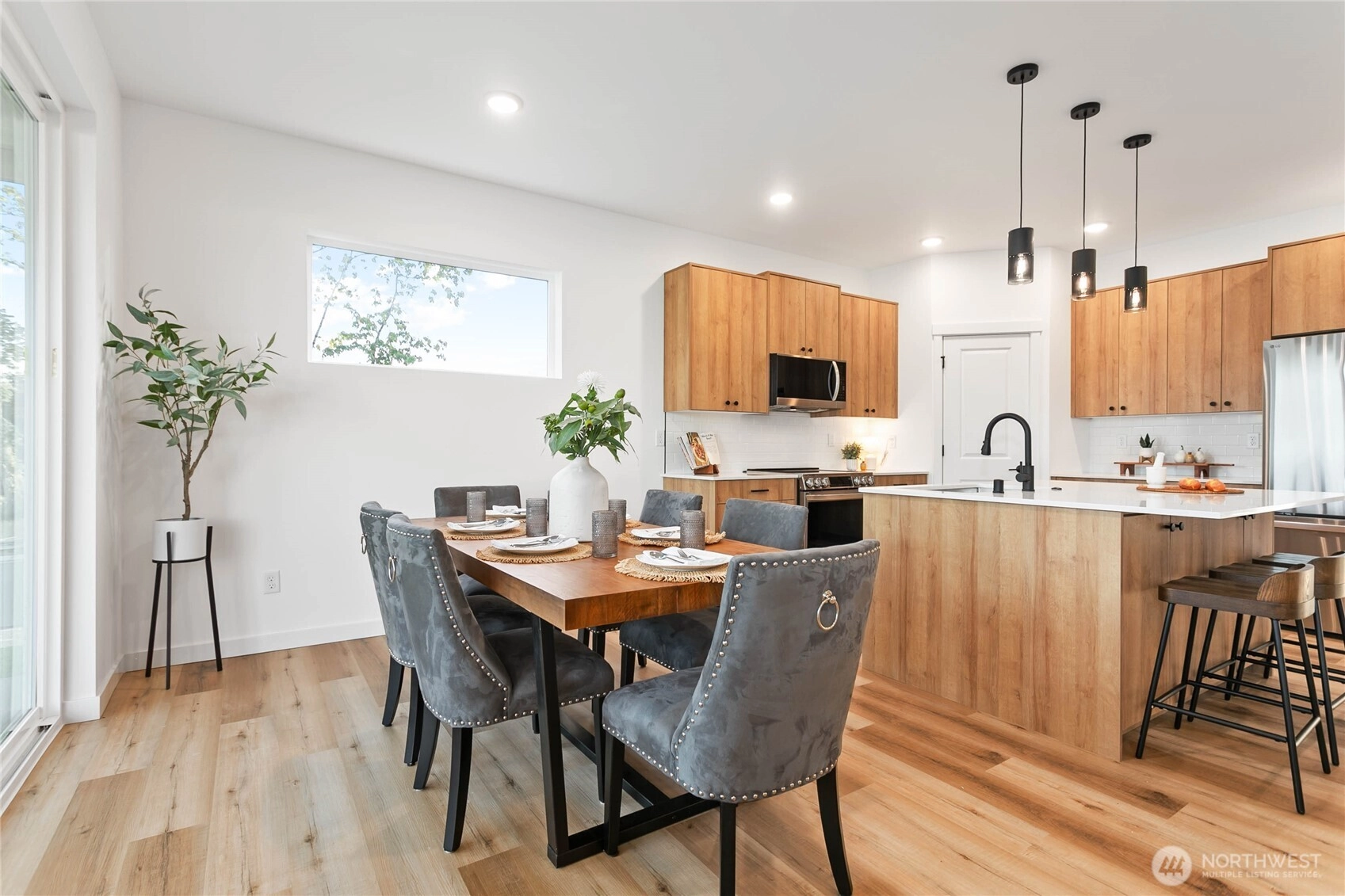 Experience modern living at its finest in the heart of Blaine's vibrant community! This beautifully crafted 4-bedroom, 3-bath home is designed with sleek finishes for ultimate comfort. Inside, you'll find LVP flooring, elegant quartz countertops, and soft-close cabinetry throughout. The kitchen boasts sleek brushed black fixtures, stainless steel appliances, and a spacious walk-in pantry. The serene primary bath features a floor-to-ceiling tile shower and a walk-in closet. Relax by the propane gas fireplace in the inviting living area. The primary bedroom and one additional bedroom, perfect as an office, are conveniently located on the main floor. *Enjoy savings with our Preferred Lender: .75% Lender Credit and $5,000 Seller Credit.