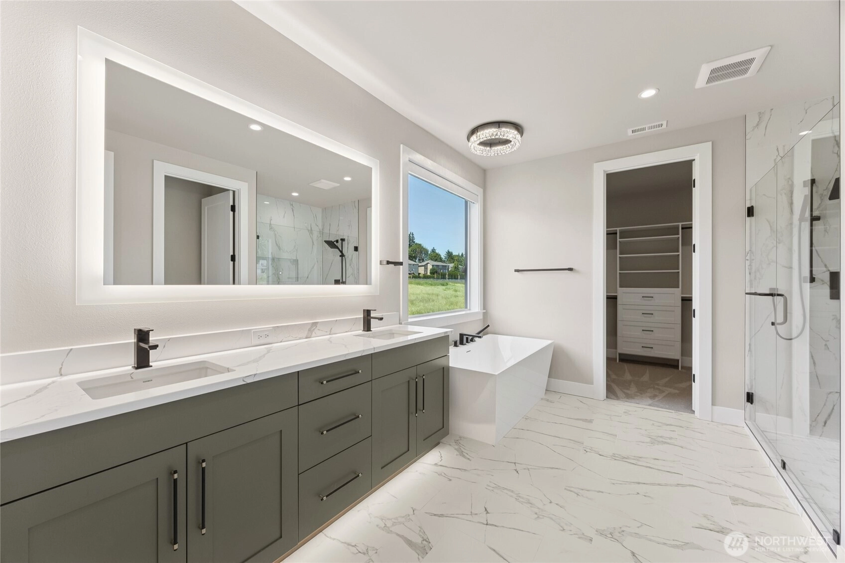 Legacy Farms Estates is a boutique community of 7 luxury homes, ideally located north of Kirkland in Woodinville Wine Country. This stunning corner-lot residence includes a 3-car garage, east-facing front door, and backs to environmentally protected greenbelt for privacy and views. The main floor offers a spacious great room, formal dining room, den, and a main floor bedroom. The gourmet kitchen is perfect for entertaining, with generous space and storage. Upstairs features five bedrooms, including a large primary suite with a spa-inspired bathroom. Enjoy the perfect blend of comfort, elegance, and location—just minutes from the Eastrail and Sammamish River Trail systems. Move-in ready!